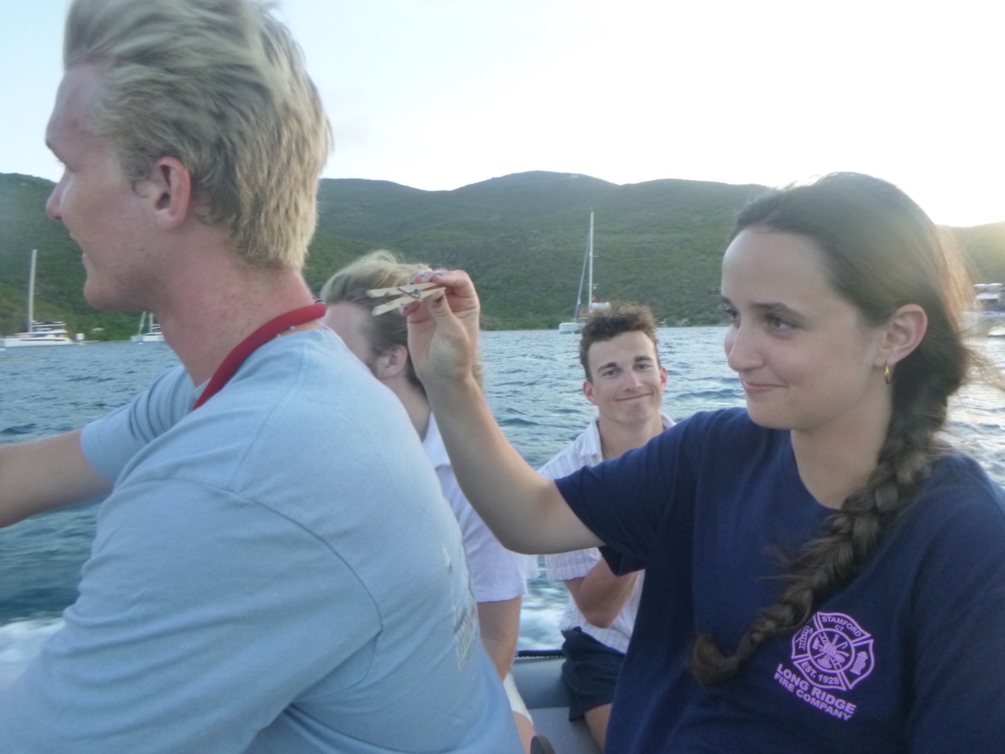 The insanely awesome day 7 began with Ayden waking up Nacho by singing to us; it was quite the performance. After having some yummy oatmeal prepared by Wylie and Alex, we began our day with the first rotation, the DMs doing some dive briefings while the Vegas went out to ski. Luckily the dive briefings with Mackenzie were awesome so we celebrated with a short snack break before starting our second rotation!! For the second rotation, the DMs got in the water to complete some surface skills, and the Vegas learned about coral reefs on another boat called Nomada! While improving our surface skills with Mackenzie, Jaden, Tyler, and Hayden found a wreck under the stern of Nachoooo! After finishing up the skills, we received some beautiful news…the DMs could go ZESTING!!!! We made it to the beach and met up with the Vegas, WOOHOO, and Alli told us she saw TWO eagle rays! The Nacho fam is back together for a bit. Avi and I hopped into one zest, Alex and Wylie in another, and Tyler and Jaden in the final zest. However, Avi and I got a little bit too cocky and may have capsized 1 minute into zesting and got a tiny bit close to Nacho while showing off to Ayden and Mackenzie, who were on board Nacho. I must admit, Tyler and Jaden did a superb job zesting. All of us zesters headed back to the beach to get dinghied back to Nacho for some delectable deli sandwiches for lunch.