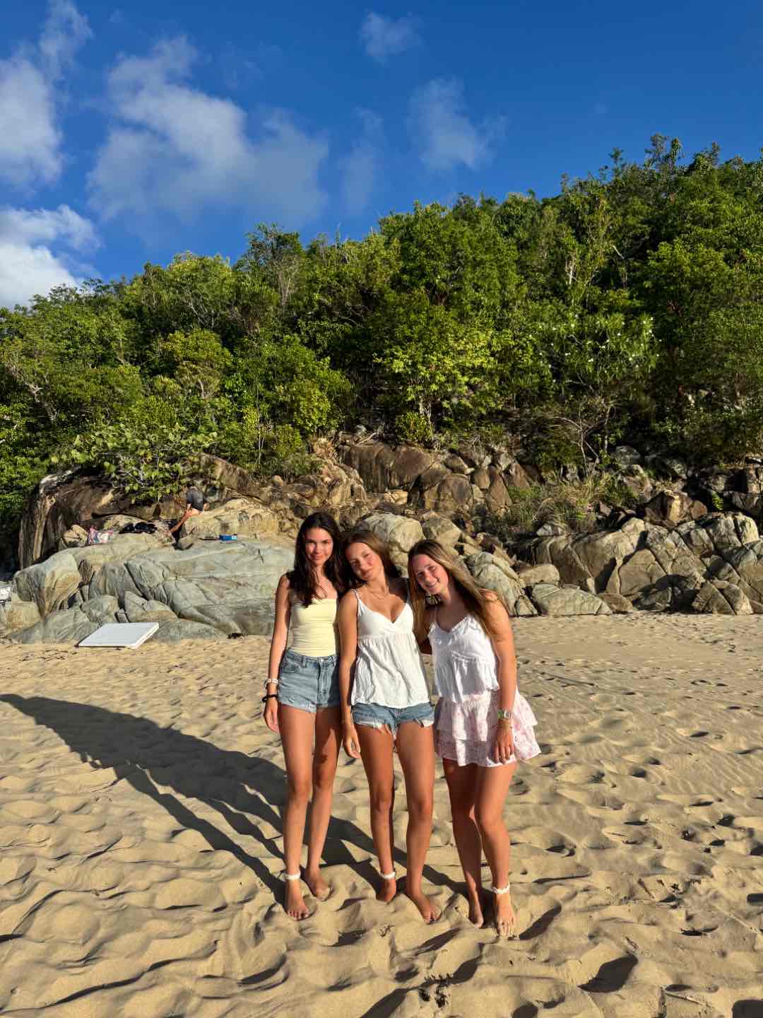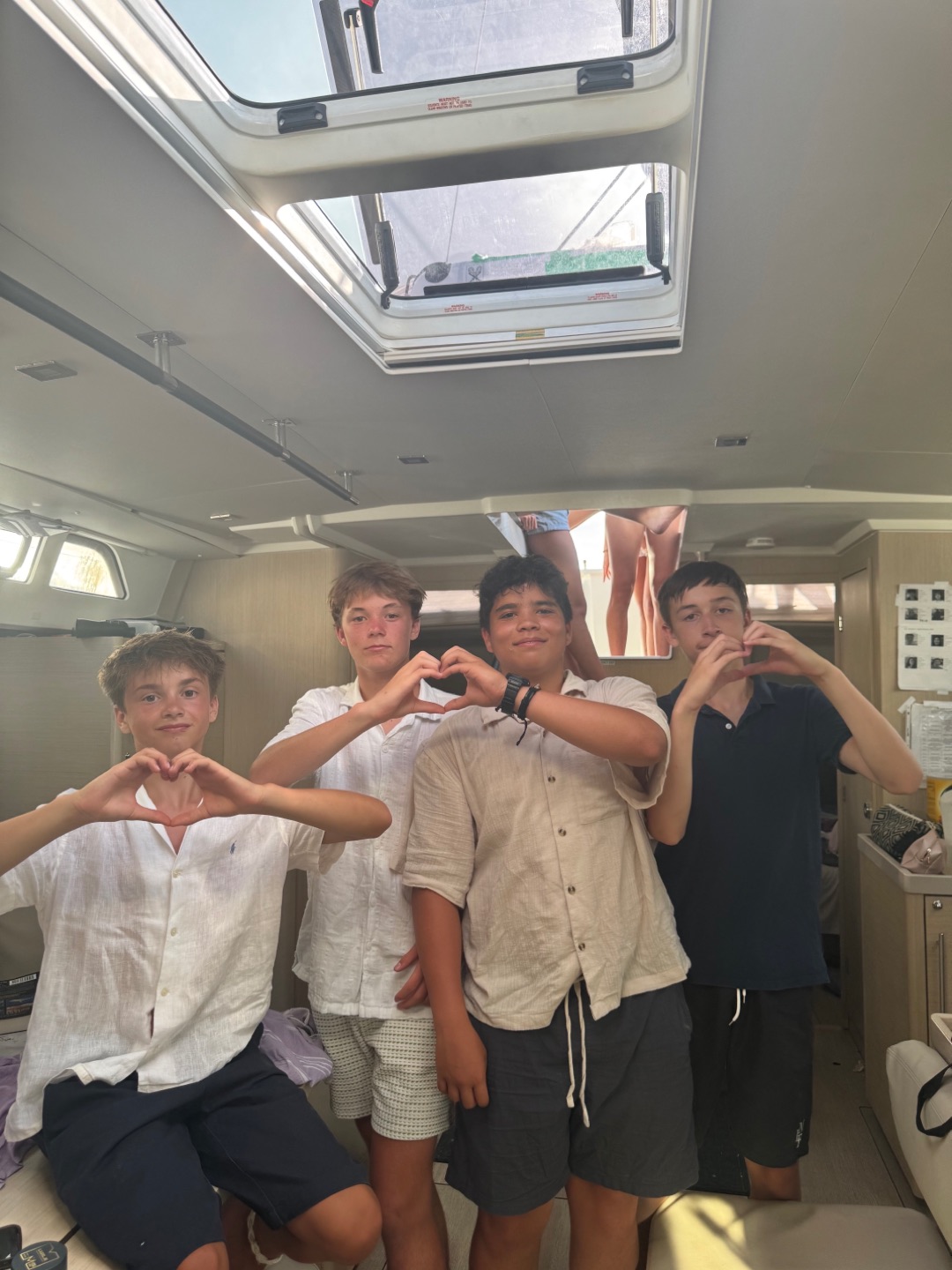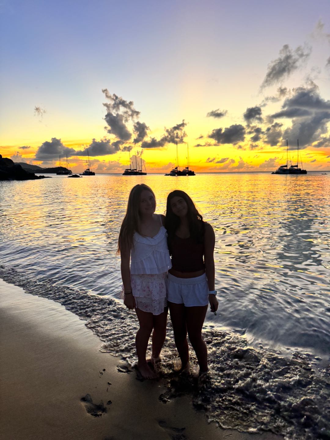 After the hike, we went back to our boat to use the boom swing and get some rest. We saw dolphins at the bay, and they were so cool. Aliya, Margo, Bea, and Lulu were tanning inside the dinghy beside the boat. After, we left the bay to go to the beach BBQ. We triple rafted with Second Wind and Vela Vita while getting ready. We went to the BBQ and it was so fun. While there, Max, Jorge, and Raiden were tackling our counselors into the water. We also saw dolphins again during the sunset. We got back and talked to the other boats until 10:30. Everyone was so tired and fell asleep fast on the bow of the boat. Bye guys!