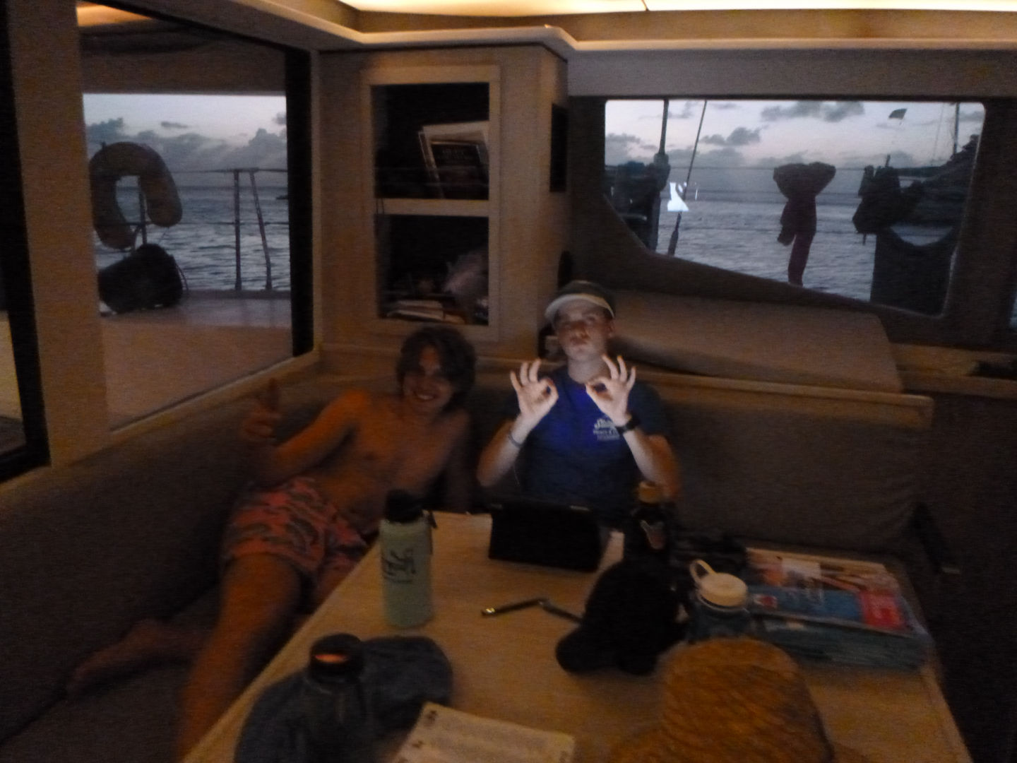 Day 6, what an exciting day. The day began with a 6:45 am wake-up. Our fantastic chefs (Lucas and Niko) began boiling water for some warm oatmeal. We were underway with a 45-minute sail from Mountain Point to the Dog Islands Cockroach Alley for our second underwater navigation dive. Matt led a brief in the cockpit explaining how our 5-point turn pattern was supposed to be executed and the instructions for returning to the boat without the assistance of the instructors. We got kitted up, took our giant strides minutes later, properly swam the 5-point turn pattern, took our 3-minute safety stop at 15 feet, and returned to the boat. We took a short break after the first dive, and before we knew it, we were already underway at our next dive site.