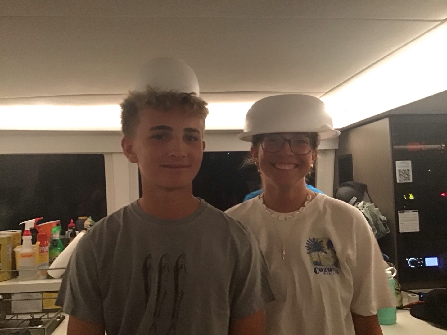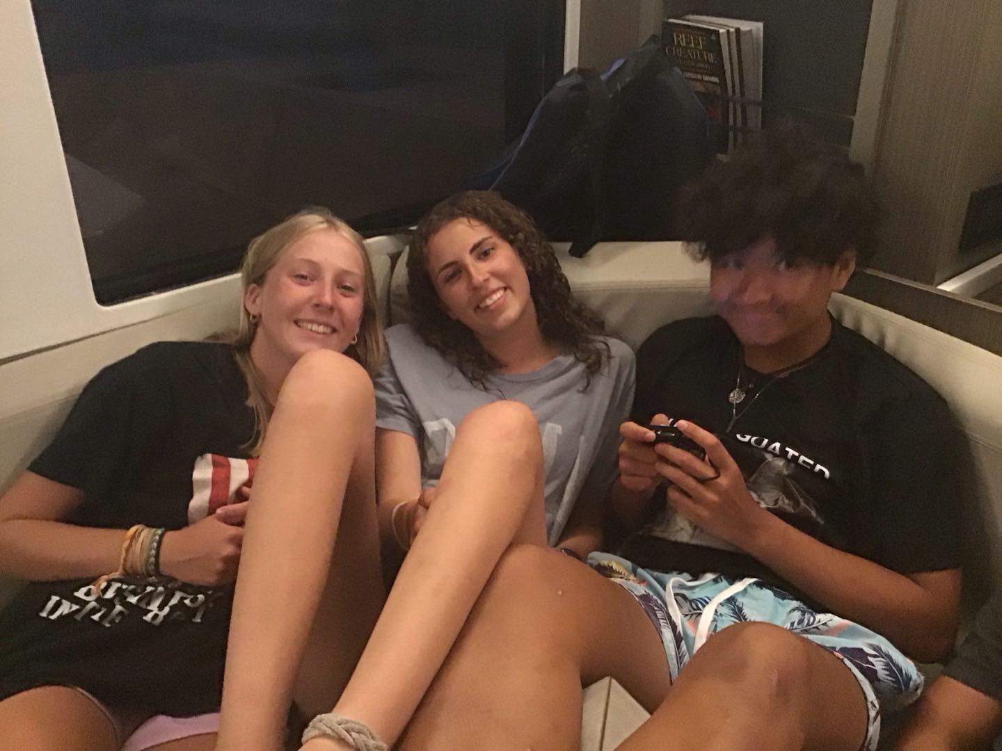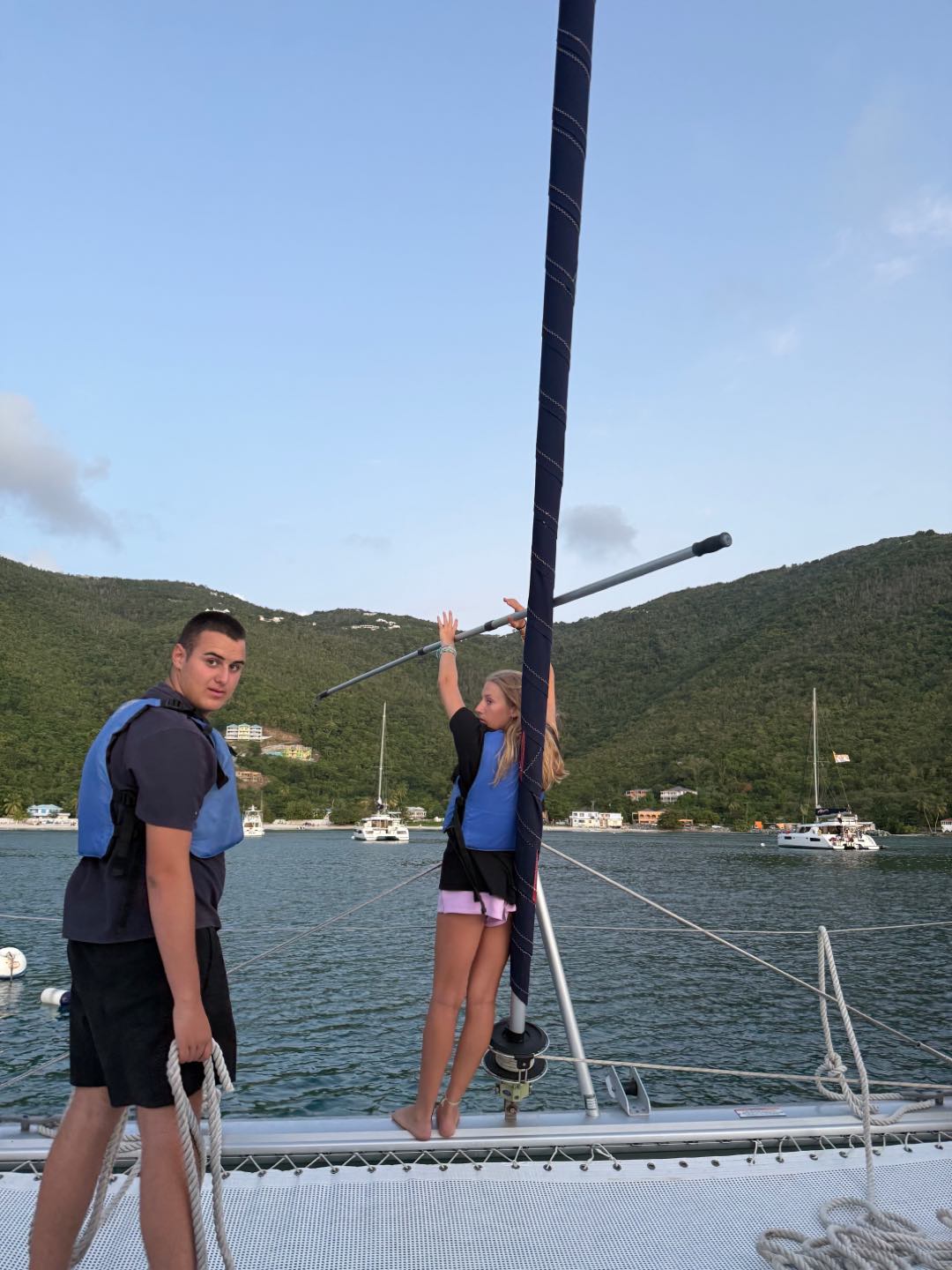 Hey, Why Knot parents, today we started our day with Hakuna Matata. For breakfast this morning, we had some oatmeal and fresh cantaloupe cut by our two amazing chefs, Lucy and Evan. After breakfast, we sailed to a dive site called Pinnacles. During the dive, I spotted two lobsters and hundreds of jellyfish. Redden spotted lots of trash and a trumpet fish. We got out of the water, filled up our tanks, and moved to our next dive site. On our way to the dive site, Evan and Lucy cooked up some amazing quesadillas, and our amazing dish pit, which was Matthew, Declan, and Redman, cleaned it up. At the dive site, we completed our last navigation dive! Maddie and I got lost for a little bit but were able to find our way back. Dawson found some candy during the dive. Rachel, Declan, and Player played chopsticks underwater (Declan needs a refresher). After our final dive of the day, we moved to Cane Garden Bay. When we were underway, everyone could hear Scarlett singing Kesha. When we arrive,d the chefs started dinner, while everyone showered. We were taken aback when we saw some particles floating in the water; it turned out Humphrey was in the bathroom. After our “shower,” we sat down and ate dinner. Now we are getting ready for our first movie night and mentally preparing ourselves for the hike tomorrow.