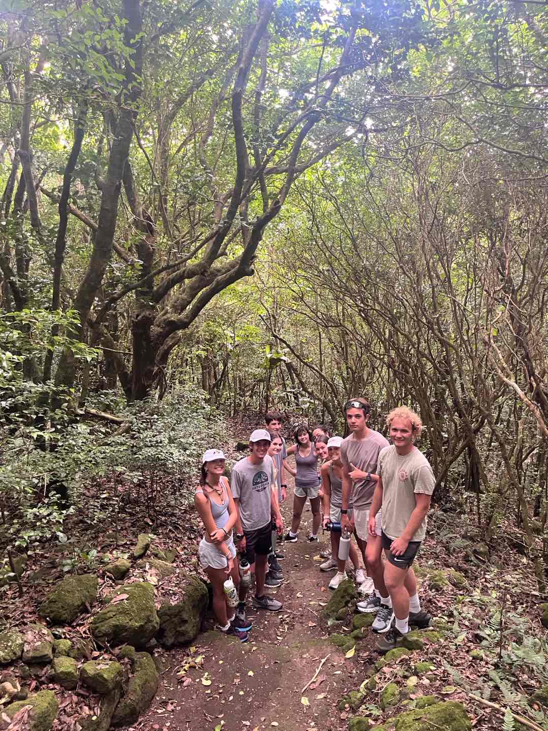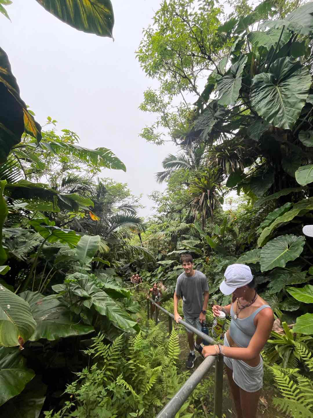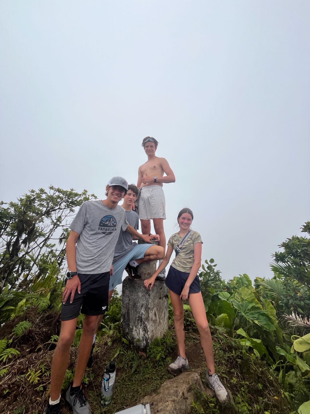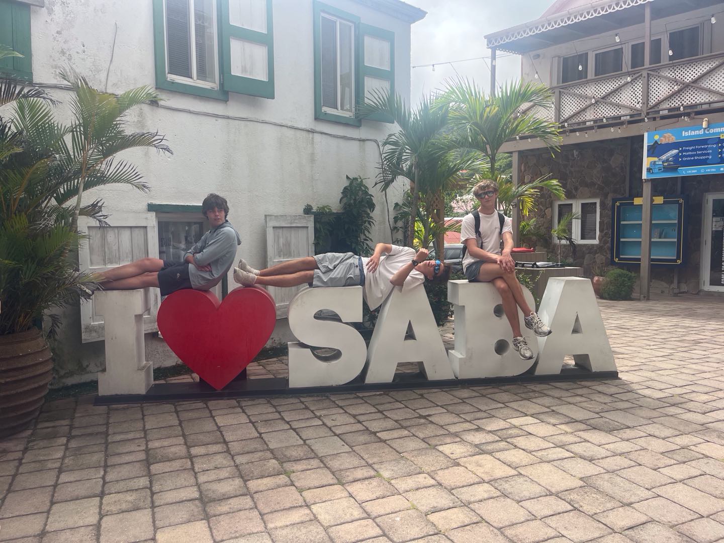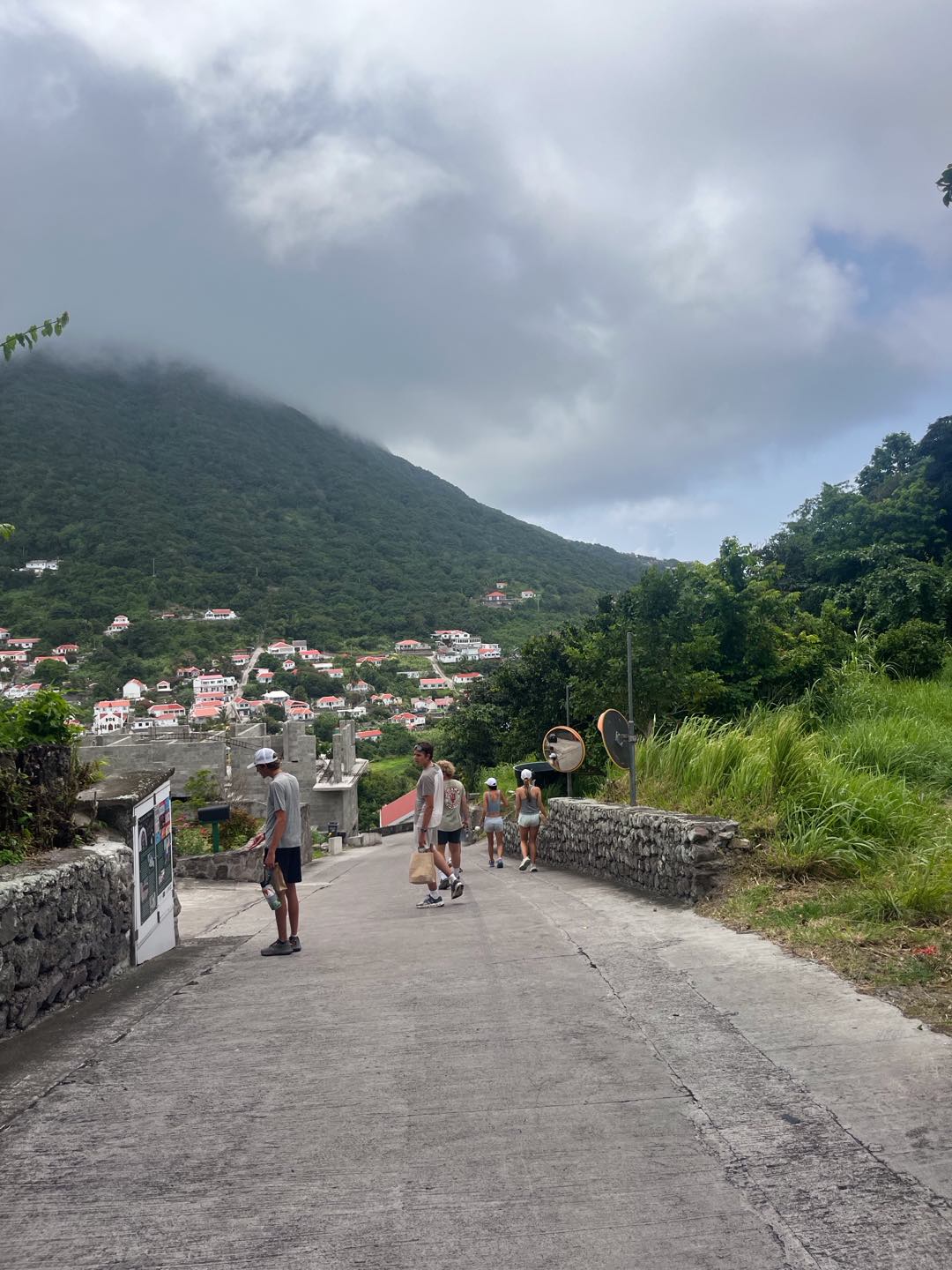 After a much-needed rest after passage to Saba, Hagentime started at 7:00 today with calm waters and a big bowl of cereal. At around 8.15, we all hopped on the dinghy to one of Sabas’ roads. Hagen Time and Harbor House joined up to take two taxis up the increasingly steep and narrow roads of Saba. When we finally reached the town of Saba, we went for a quick shop at the supermarket and a snack at the local bakery. We then divided into two groups: The Hikers (group 1) and the Lazy ones (group 2)(The Hikers’ path was much harder, basically) to go hiking in the jungles of Saba. Christina (not really, she quit after 2 minutes), Lauryl, Zoe, and I were the only ones who went on the Hikers path along with Evan, JJ, Jackson, Ellery & Tati from Harbor House. The long hike consisted of many slippery stairs, mud and vines, it wasn’t very enjoyable, until we reached the scenic view. We all got to enjoy a lovely view in the clouds, overlooking the town, after an hour and a half of torture; it was worth it. After our hikes we all went to lunch, group 1 went to a mexican restaurant where we had quesadillas and steak, Stella apparently was full with her lasagna and then decided to eat brownies. Both groups then crossed each other and talked about their hikes. Giles wouldn’t stop talking about how easy the hike was, but honestly, the view and the accomplishment were worth the hard hike. While group 1 was walking, group 2 got to go glass blowing with a local legend called Jobean, who runs a little shop where she makes all sorts of accessories out of blown glass, and if you bought something worth $25, you got to blow your own necklace and get taught by her. After that, we all left for the town to go to the dock, Henry, Nate, Lawson, and Hayes met with Jordan and Jaleeyel (two local kids).