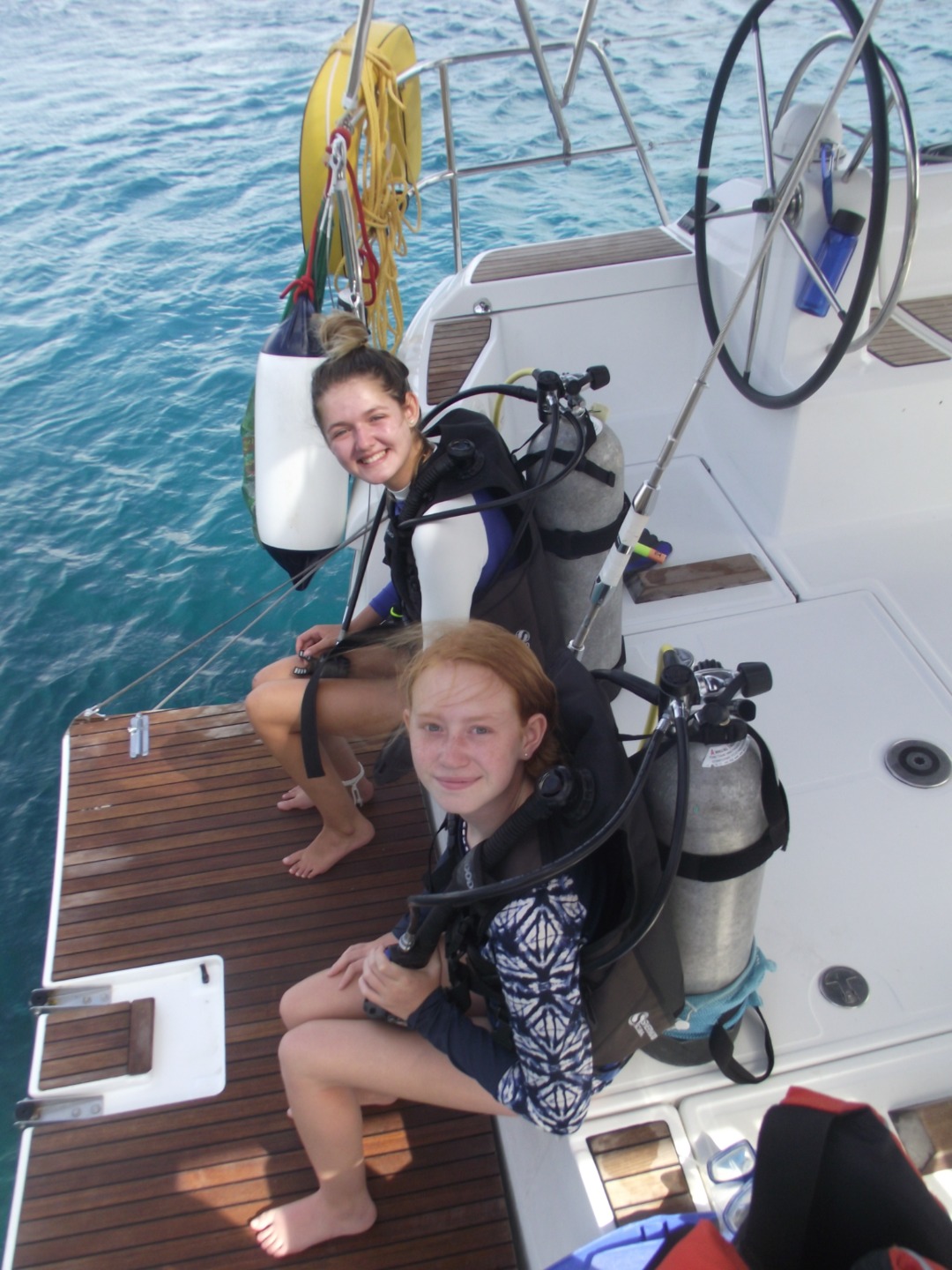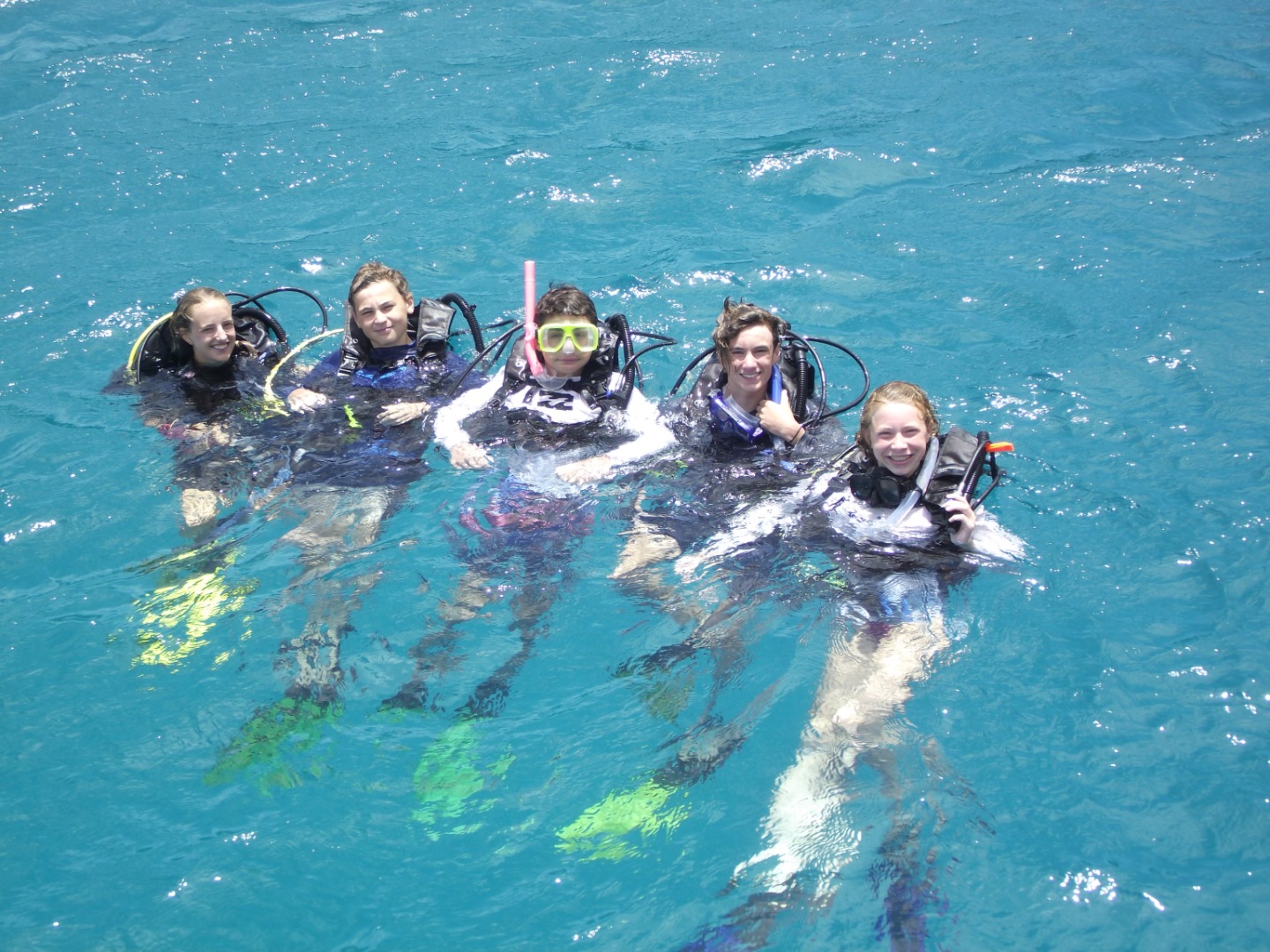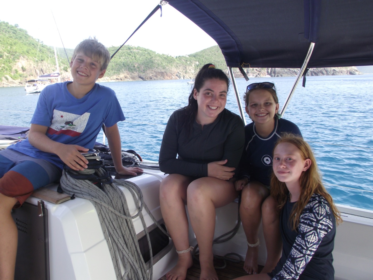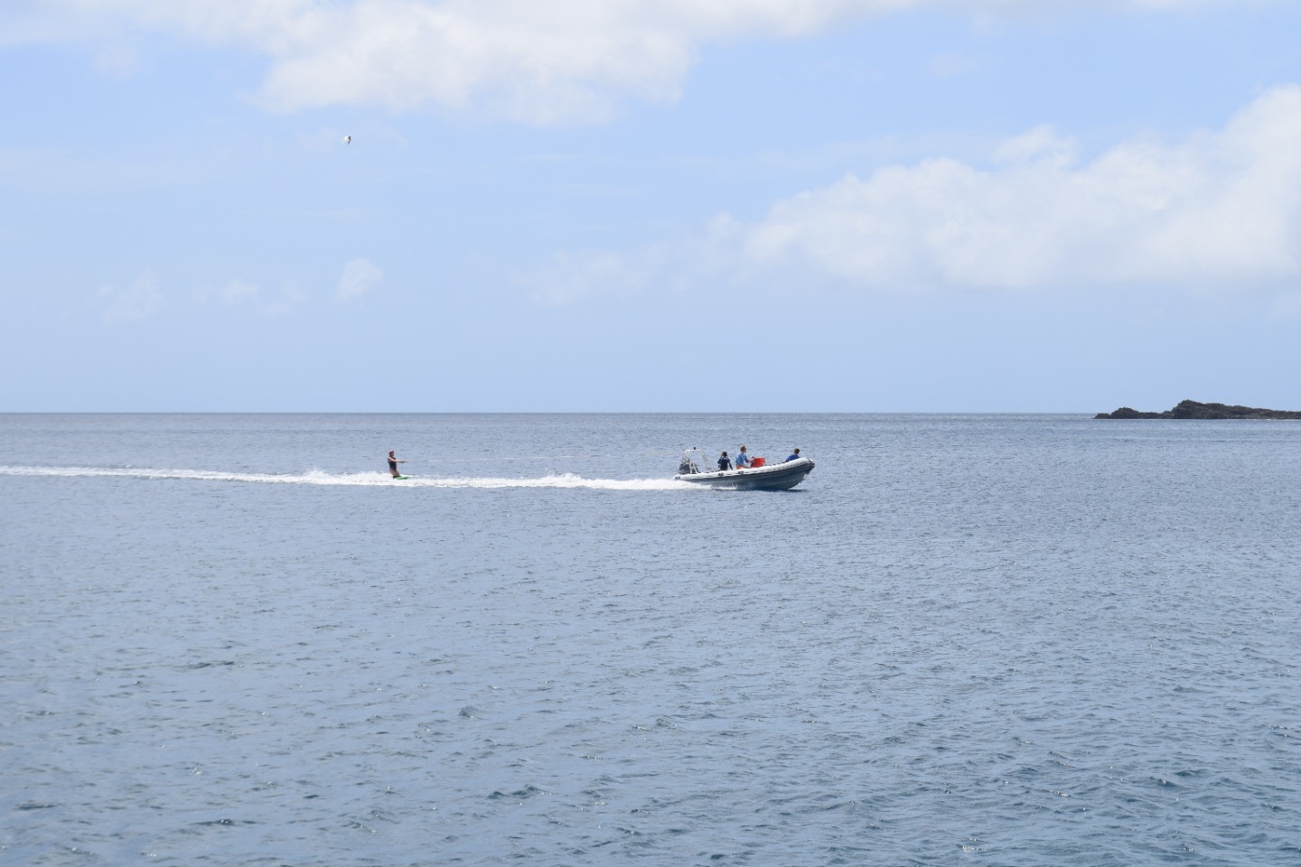 The day started with an unusually early wake up because we had to prepare to be the dive boat for the day. After some oatmeal for breakfast, we commenced our first dive out of two. The dive was not as focused on skills, rather enjoyment. We were lucky enough to see a stingray, a baby octopus, a barracuda, and arrow crab, and a massive hermit crab. On our second dive, our instructor gave far less input and watched us function in our buddy teams without his assistance. As we ascended, we all smiled at each other with our regulators in our mouths, knowing that when we reached the surface, we would be certified PADI open water divers. After celebrating, we rotated to Zesting, sailing small boats around a specified course. We had a competitive race to see which buddy pair could collect the most “treasure” floating about. We had a quick lunch of tortilla soup and learned about boat systems and how the boat’s mechanics work. Then we enjoyed watersports, where we waterskied, wakeboarded, and kneeboarded. After showers, we motored over to Sommer’s Beach where we had a delicious BBQ. We returned to the boat and are going to sleep to prepare for the day tomorrow.