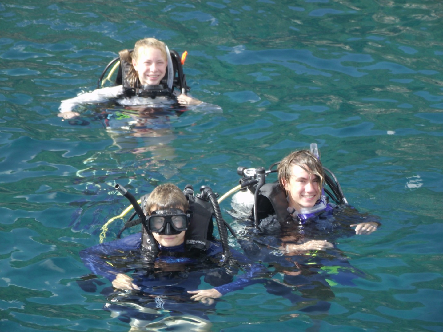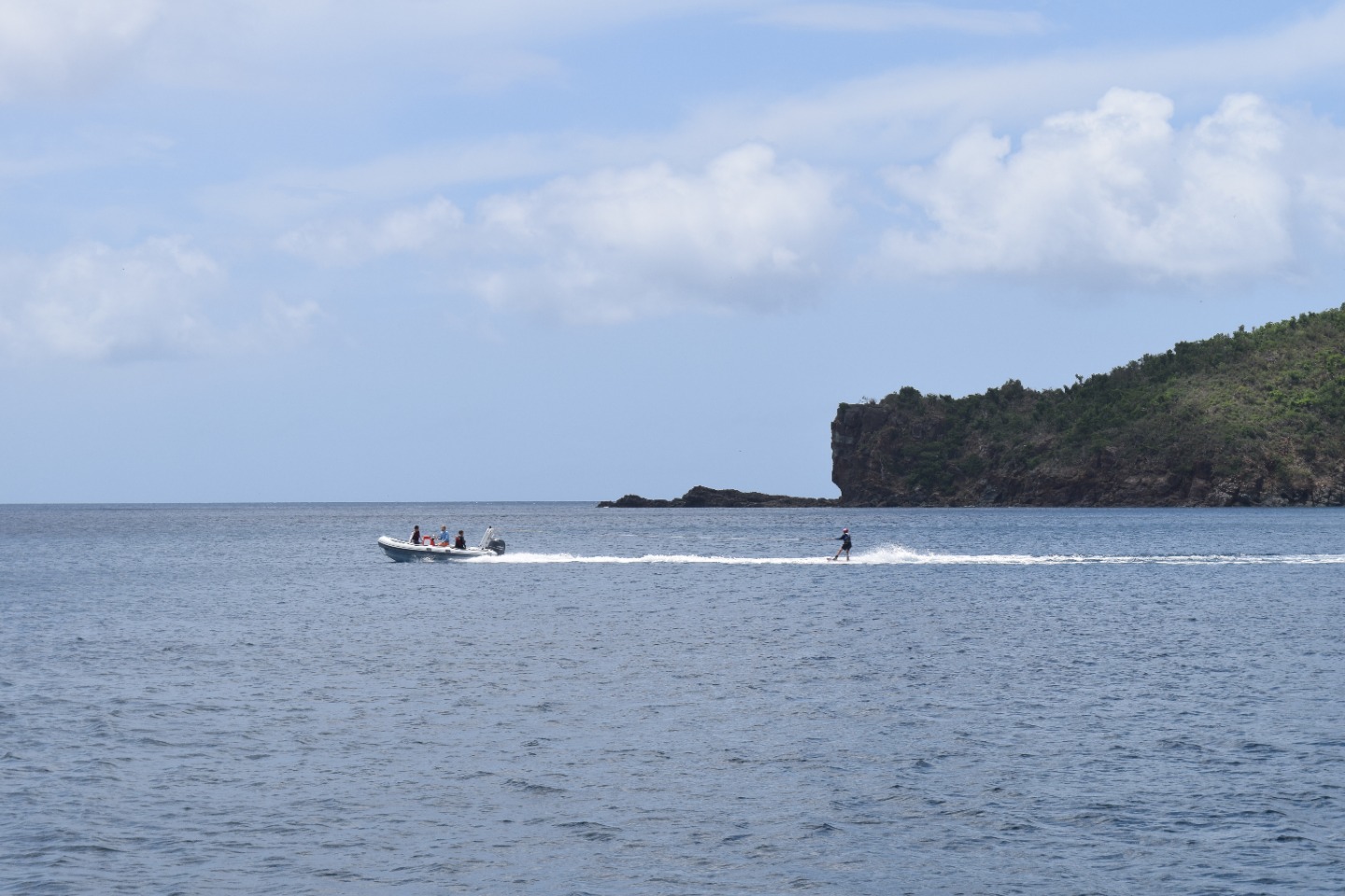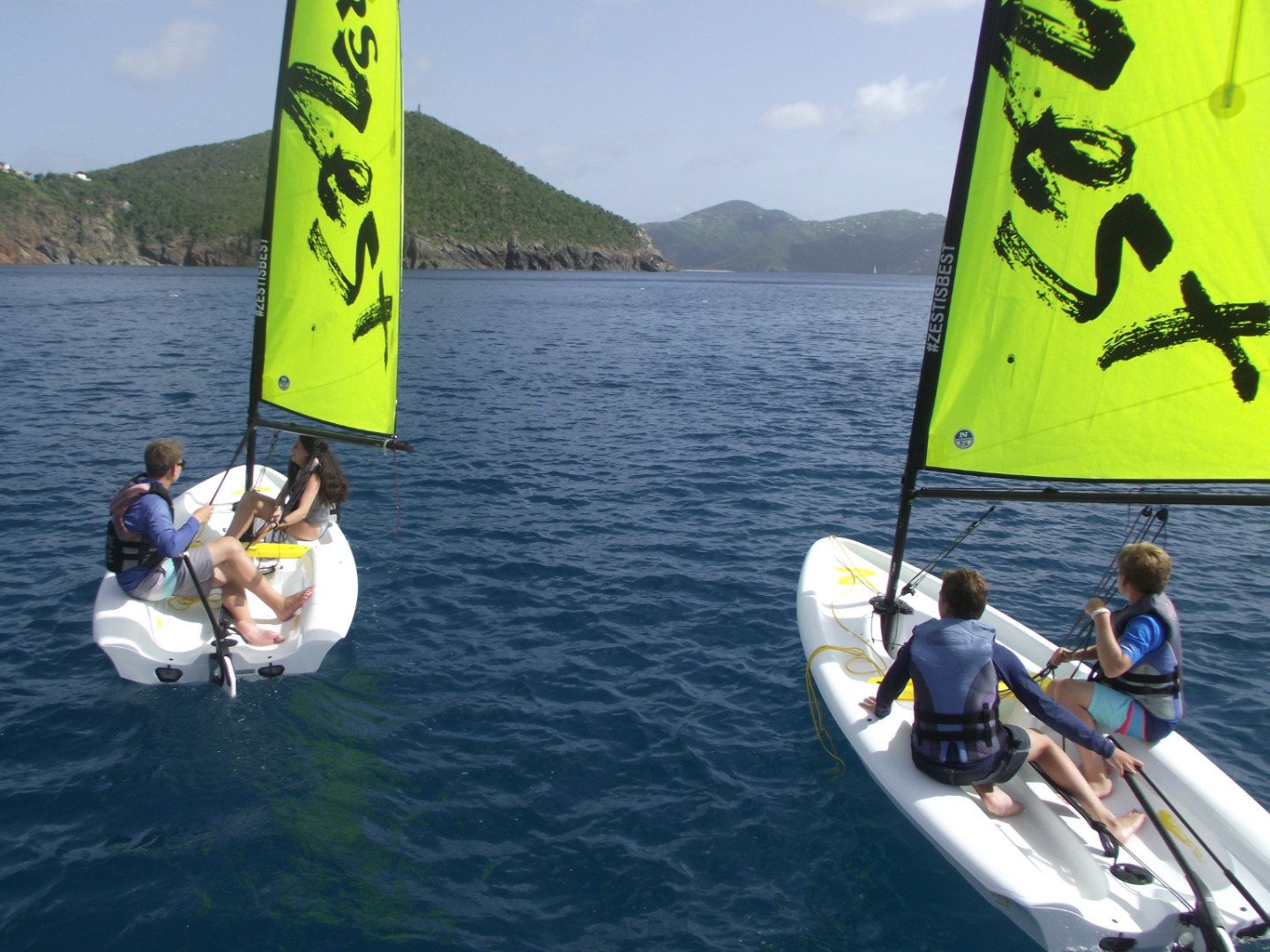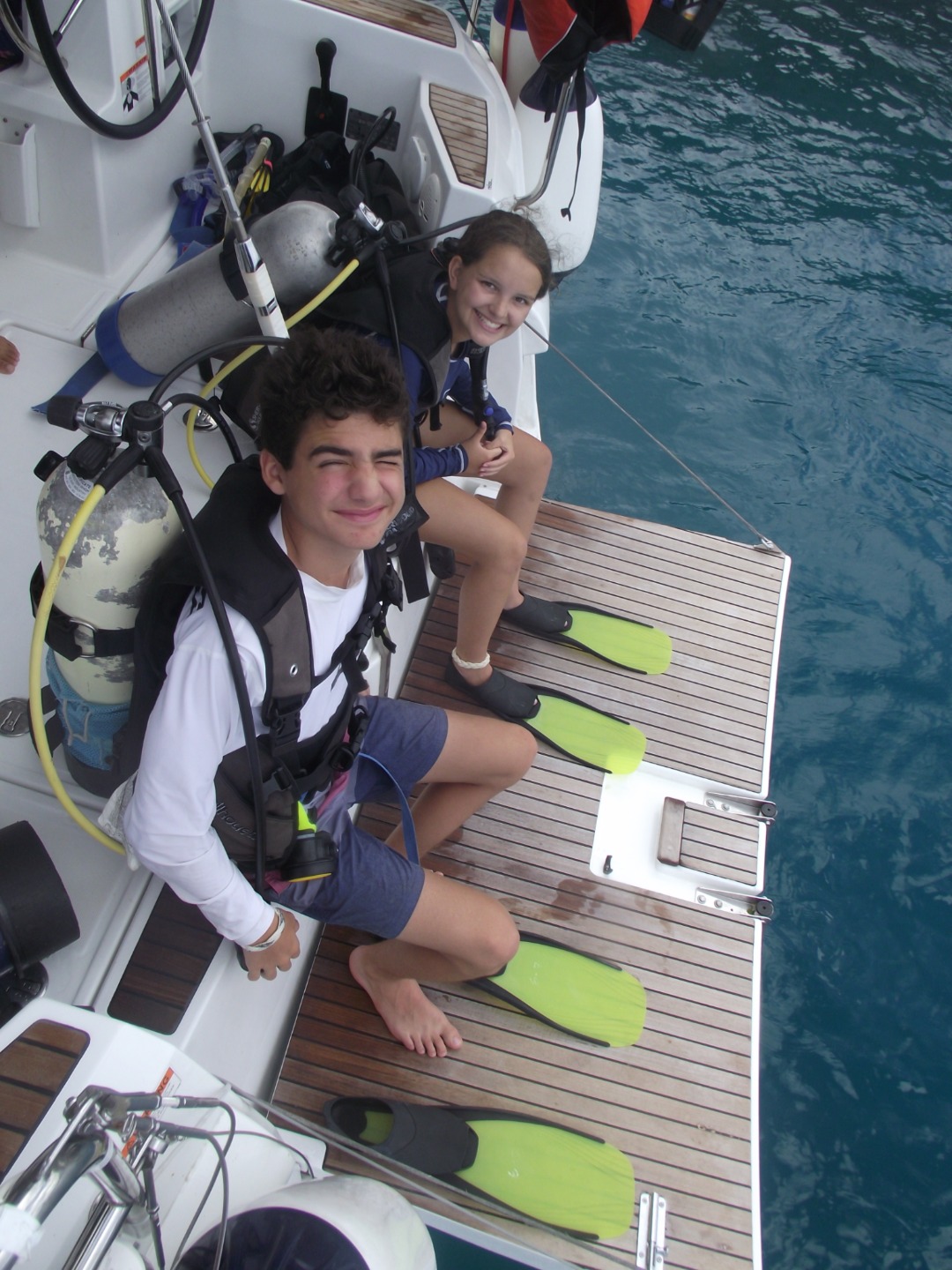 The day started with an unusually early wake up because we had to prepare to be the dive boat for the day. After some oatmeal for breakfast, we commenced our first dive out of two. The dive was not as focused on skills, rather enjoyment. We were lucky enough to see a stingray, a baby octopus, a barracuda, and arrow crab, and a massive hermit crab. On our second dive, our instructor gave far less input and watched us function in our buddy teams without his assistance. As we ascended, we all smiled at each other with our regulators in our mouths, knowing that when we reached the surface, we would be certified PADI open water divers. After celebrating, we rotated to Zesting, sailing small boats around a specified course. We had a competitive race to see which buddy pair could collect the most “treasure” floating about. We had a quick lunch of tortilla soup and learned about boat systems and how the boat’s mechanics work. Then we enjoyed watersports, where we waterskied, wakeboarded, and kneeboarded. After showers, we motored over to Sommer’s Beach where we had a delicious BBQ. We returned to the boat and are going to sleep to prepare for the day tomorrow.