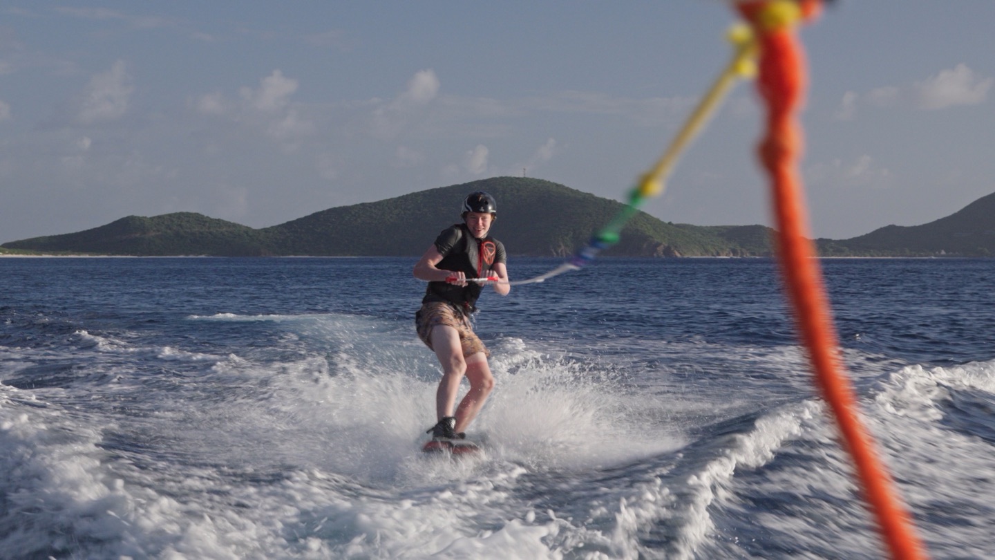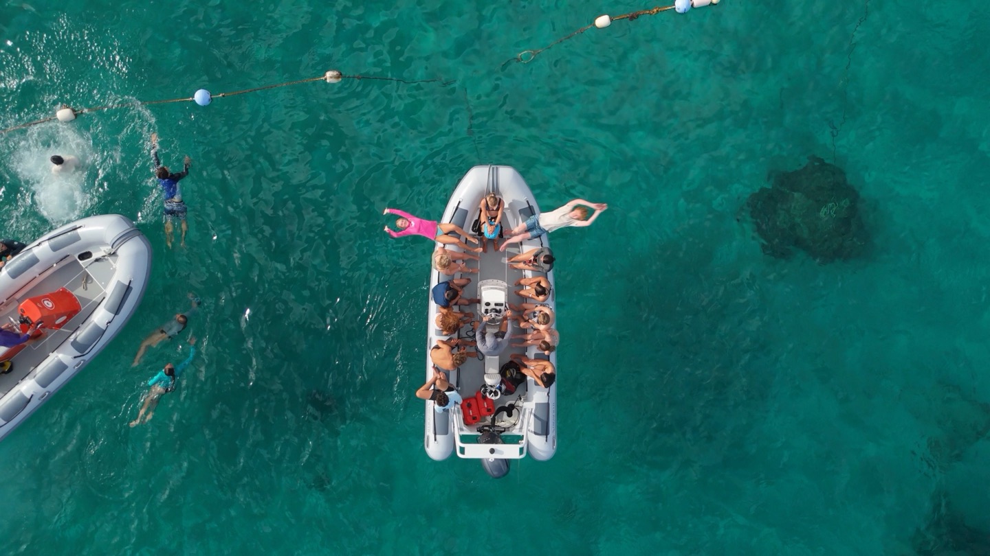 At 2 pm, we were back on track to our next location. Once we arrived, we journaled and learned a bit about the reef we were about to explore. We then jumped straight in the water to snorkel, everyone’s breath holding was insane I don’t think Emma Y was aware she was holding her breath for as long as she did following the squids and large amount of species we came across. I would say everyone’s highlight so far from snorkeling was swimming under the cave into a large school of fish that tracked each of your moves. Maddie got a little spooked by a tarpon, thinking it was a shark. You should have seen the look on her face and her laugh of embarrassment. After the sweet snorkel sesh a group of us went to wake board ski and knee board it was dope. Yours truly shredded along with the squad, and I would say everyone was solid. Ruby popped up on the first try and was able to fix the kneeboard while going full speed to shred. Both Maddie and Kiran did a 360 on the first try, and Teddy mastered his pop-up on the wakeboard. As well as Emma getting close to the advanced slalom move on a ski. Finally, to end the night off, we went for our first night dive for the trip, and most people’s first-ever time doing so. I think we all had a great time seeing all the bioluminescence and different species at night. We are now preparing to eat cookies and go to bed. I will update you all tomorrow.
