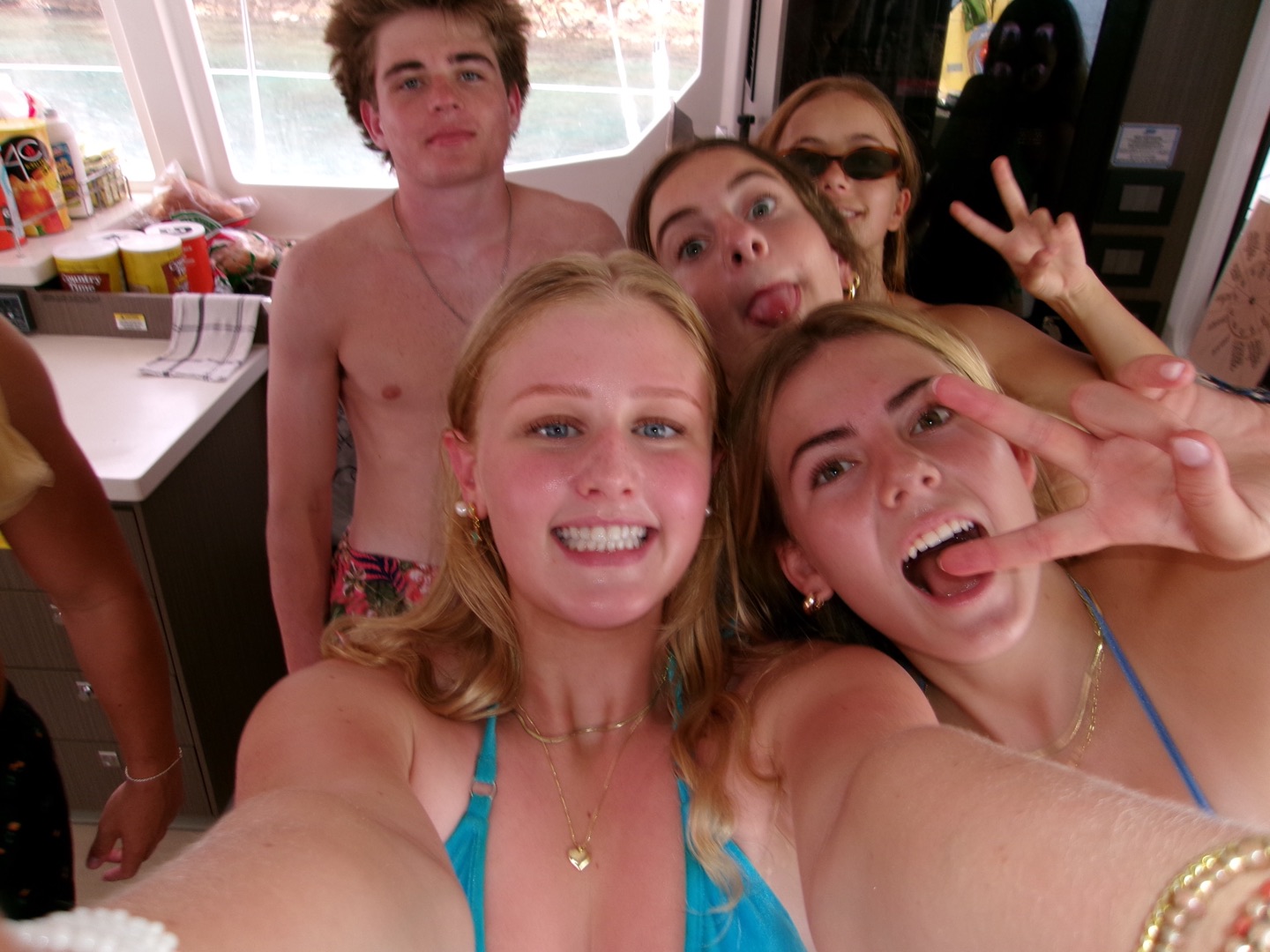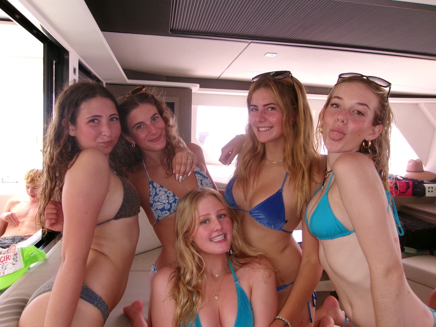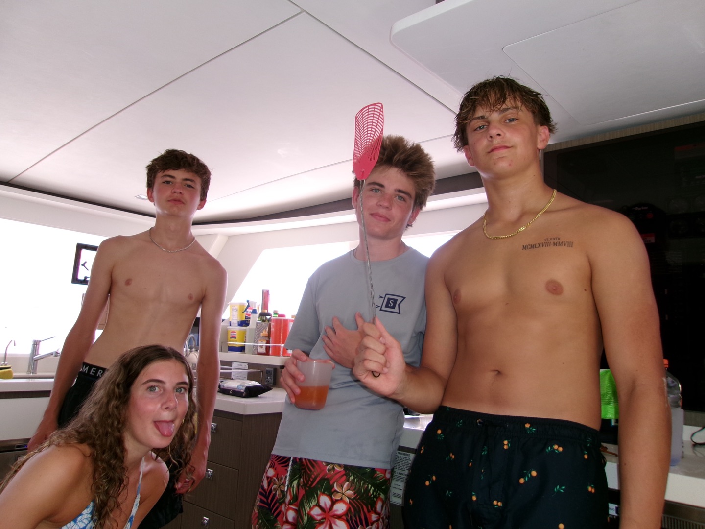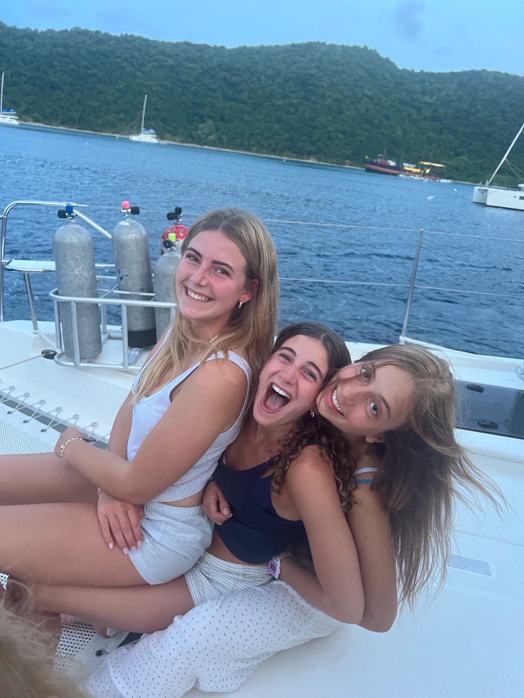 This morning, we woke up at 7 am, got ready for a busy and fun day, ate cereal for breakfast, and met up with director Mike for our briefing. After learning about safety and the rules to keep us safe, we set sail. Chase, Greyson, and Jack M raised our main sheet, and Lyla used the winch to pull our sail the rest of the way up. Around 2, We arrived at Norman Island. We anchored and then enjoyed the sun. Andrew B, Andrew D, Caroline, Lyla, Emilia, and I practiced our flips off the dinghy while Sofia and Sloane practiced their free diving. Then we went snorkeling, and LJ (Jack H) brought his GoPro, so we got lots of great videos of us diving and a group photo. We snorkeled a couple of really cool caves and saw a bunch of unique fish. Lyla and Sloane made sloppy joes for dinner. Andrew D says hi to Uncle Tom and Uncle Scott. Overall, we had a great first full today and are exited for many more to come.