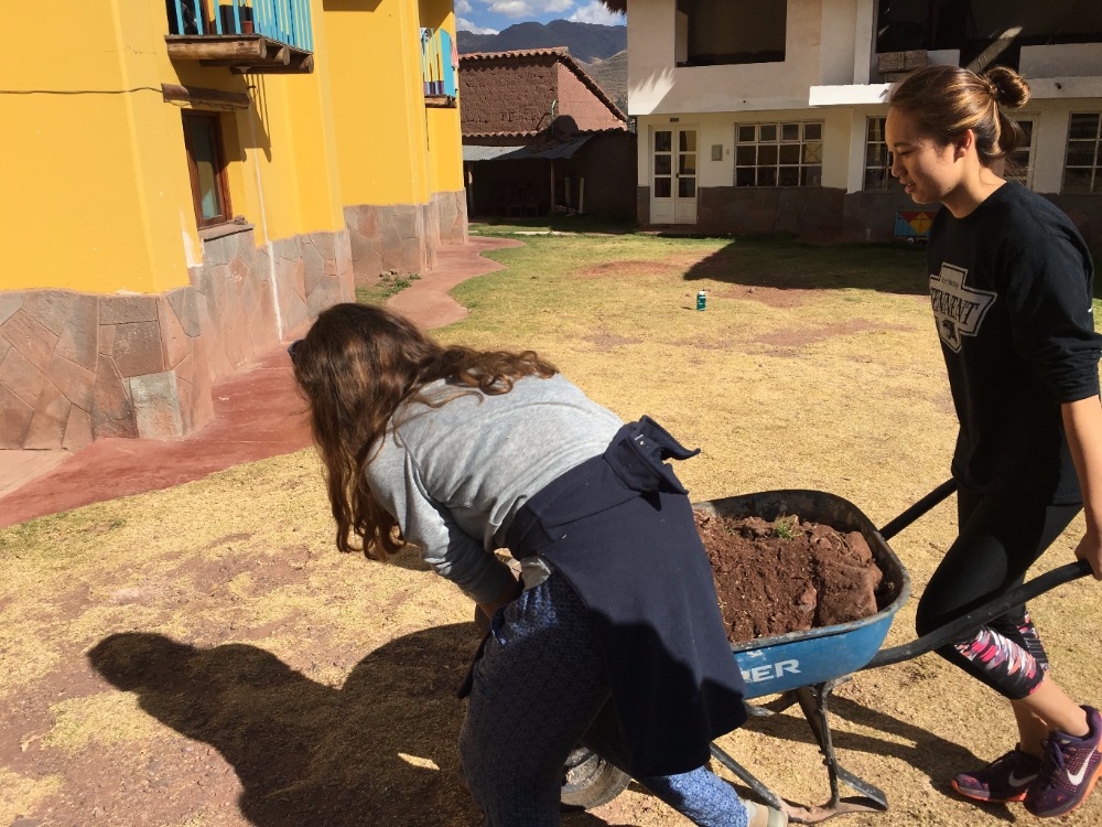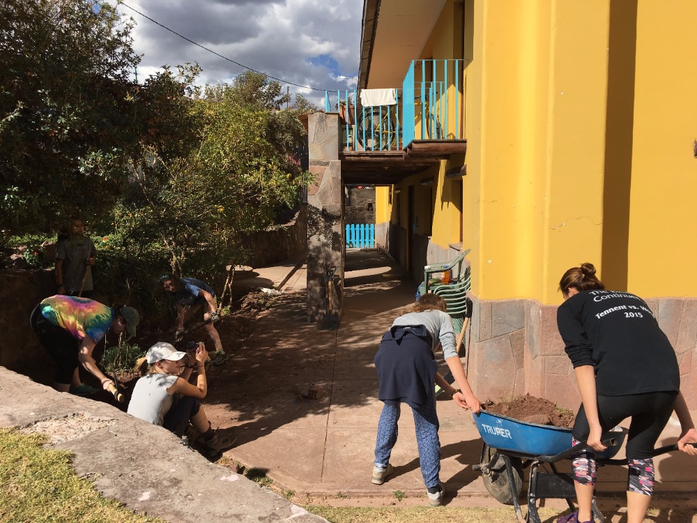 After exploring Cusco, all twenty of us began our first day of volunteering at Casa Montay, a home for teenage mothers. Once we got there, Carmen and Gisela, two of the directors, explained how the non-profit gives housing, food and general support to teenage mothers in need. They even have support systems (e.g daycare) in place for the mothers that have already left the house. Two of the mothers gave us a tour of the house. As they explained how the house works, I really got of the community they have created for themselves. All the mothers and volunteers rotated through a set of chores and helped each other with the children. After playing an icebreaker game with the mothers, Carmen and Gisela divided us into four volunteering groups. Most of us helped dig a new garden by the playground. Others helped in the daycare and kitchen, and a final group cleaned around the house. As I walked from group to group, it was great watching our students work alongside the mothers. I’m proud of their hard work, and I’m excited to see what the next days bring.