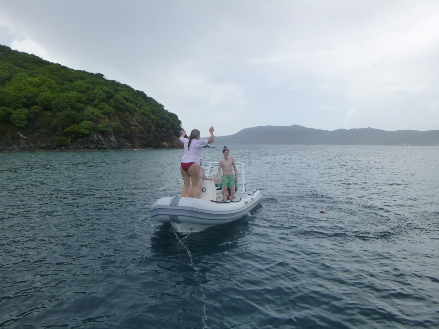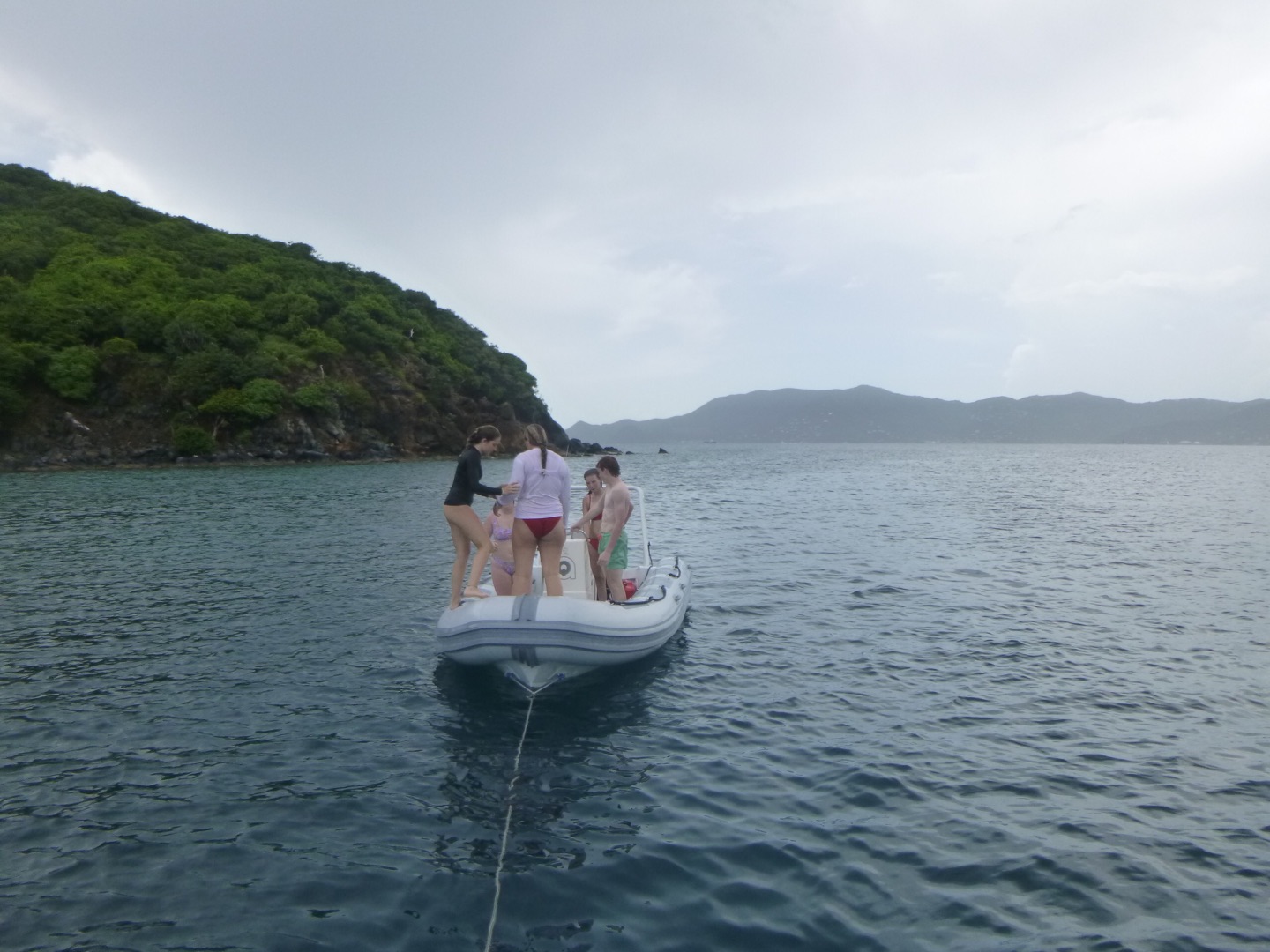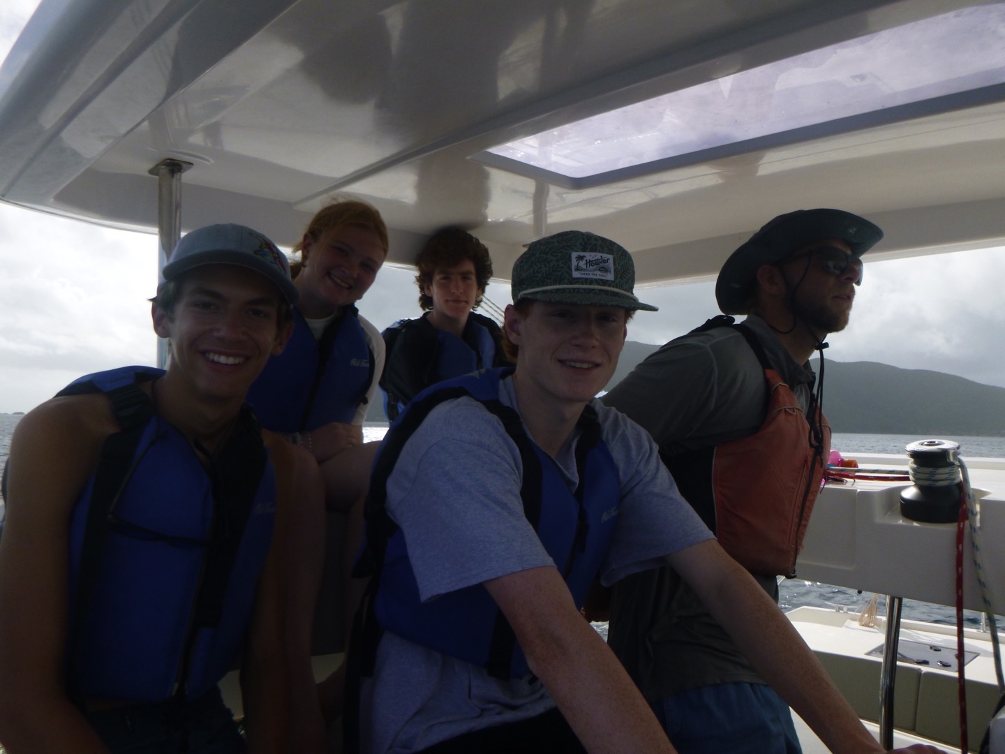 Today was yet another day of sailing and diving but to new extremes. We woke up at about 7 am after the party in Leverick Bay last night. We had over a 3-hour sail this morning to Great Harbor Point, so we had no time to waste. We decided to eat breakfast while underway to save time. Today, for breakfast, we had bagels and yogurt. I personally took advantage of the long sail to catch up on some sleep, as did the others. When we got to GHP, we ate lunch, which were deli sandwiches today. After that, we set up our gear for diving, and students from other boats came over so we could dive with them. As we got ready to go, a huge thunderstorm came through, so we had to wait a little bit for the rain to pass. What made today’s dive so special was that it was our first deep dive of the session. Today, we reached a maximum depth of 81 feet! We later had some post-dive fun when Jake set up a boom swing for us to jump off of the side of the boat. It also started pouring rain again during this time, which was nice after being in the saltwater all day. Everyone just hung around and did various things, and eventually, the rotation of water sports began. Some people went to go water skiing, knee boarding, and wakeboarding. At the same time, others stayed on the boat and lounged around for a little longer. Once the water sports people came back to the boat, we ate some dinner, took some showers, and wrapped up the night. We are about to see Pirates of the Caribbean because, surprisingly, many people have not seen it before.