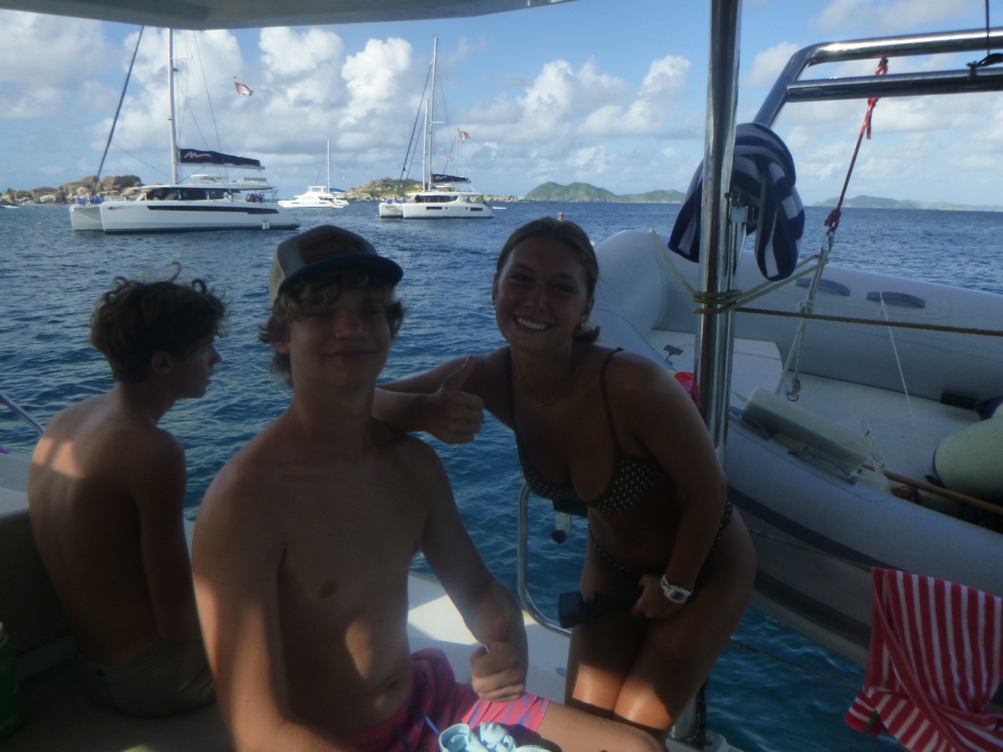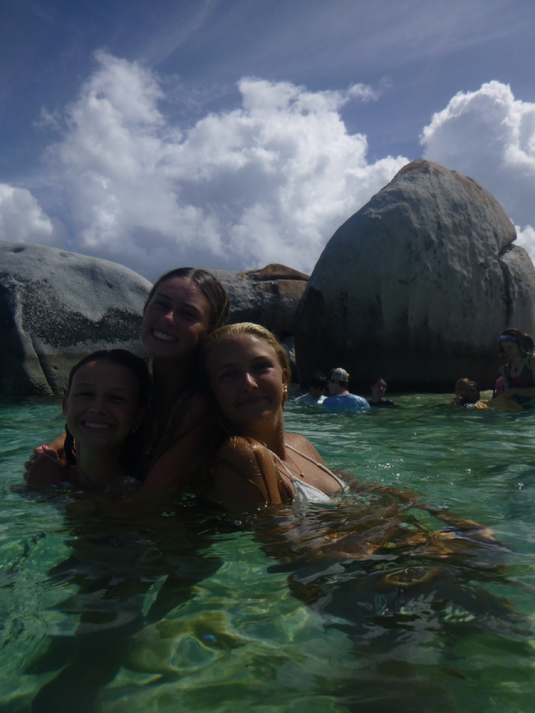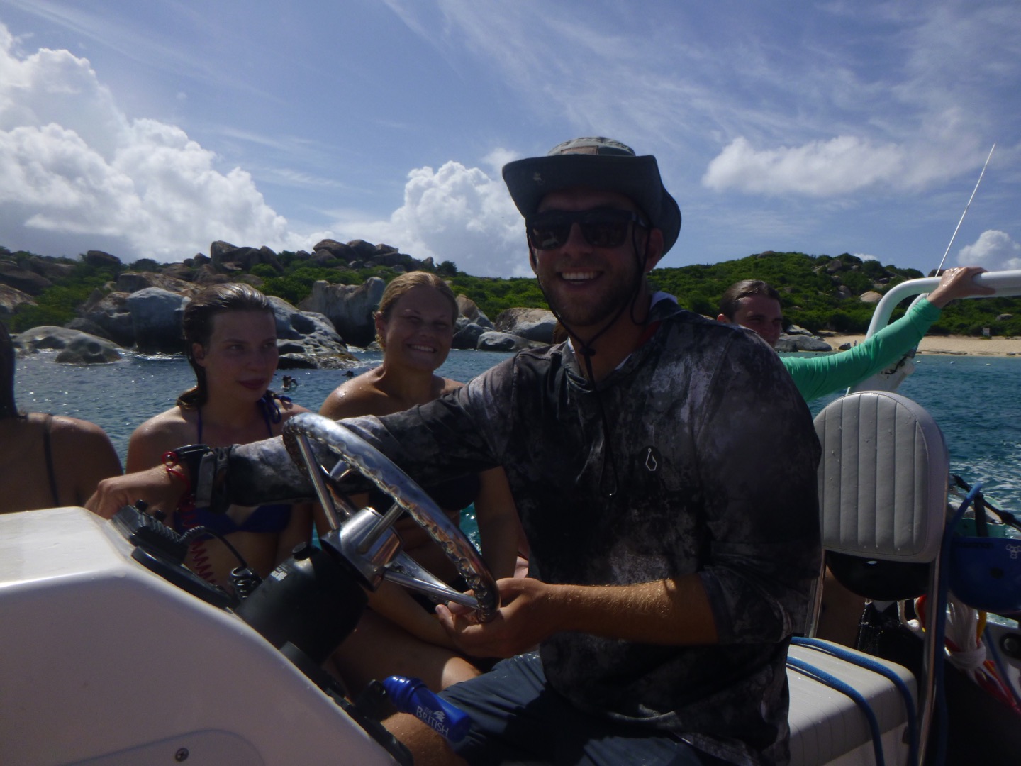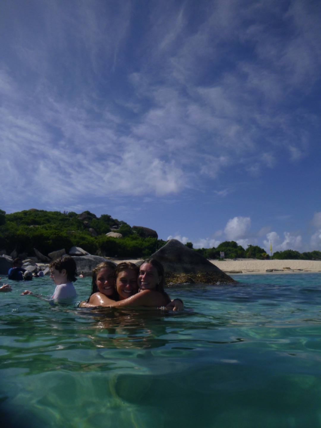 To start off our day, we set sail very early; some people slept in (luckily, that included me). We sailed to the baths, which are very large rocks that we had to climb through and jump off of! They also have a very interesting history involving the slave trade; you can look more into that on your own. Once we finished up with the baths, we took some fresh water showers down below, which was a great break from all the salty water we had been showering in for the past five days. After we all looked presentable and felt clean, we headed into Spanish town. We had a great lunch at Bath and Turtle, followed by a grocery run and some shopping. Overall a great first land day. After getting back on the boat we sailed to Mountain Point and did a really cool snorkel where we had to swim through a tunnel to get to the other side, a cuttlefish was spotted. Dinner followed, and then we got ready for our first night of scuba diving!!! Once we were all set up, we saw a beautiful sunset and went down. The dive was crazy and an octopus, lobster, shark, and huge sea urchin were found by various divers. Overall, it was super dark, and it really irked me. Lastly, we finished our night with showers, and Tarpon joined us (like a school of 30), and we all had a blast taking videos on our Go Pros and scaring each other. We got ready for bed, ate brookies (brownie cookies), and now we are just chilling and listening to music. Overall a busy but great day that everyone enjoyed.