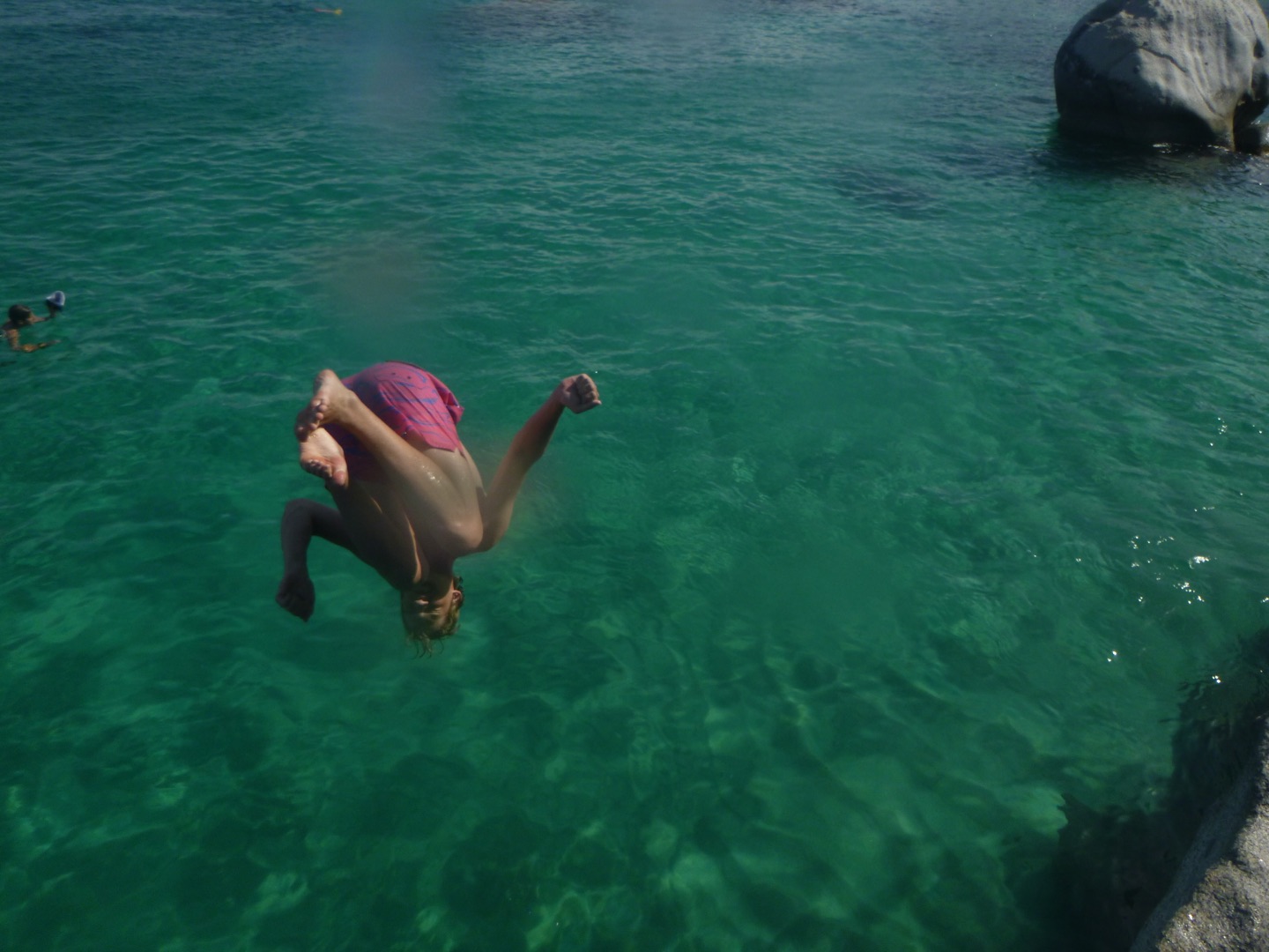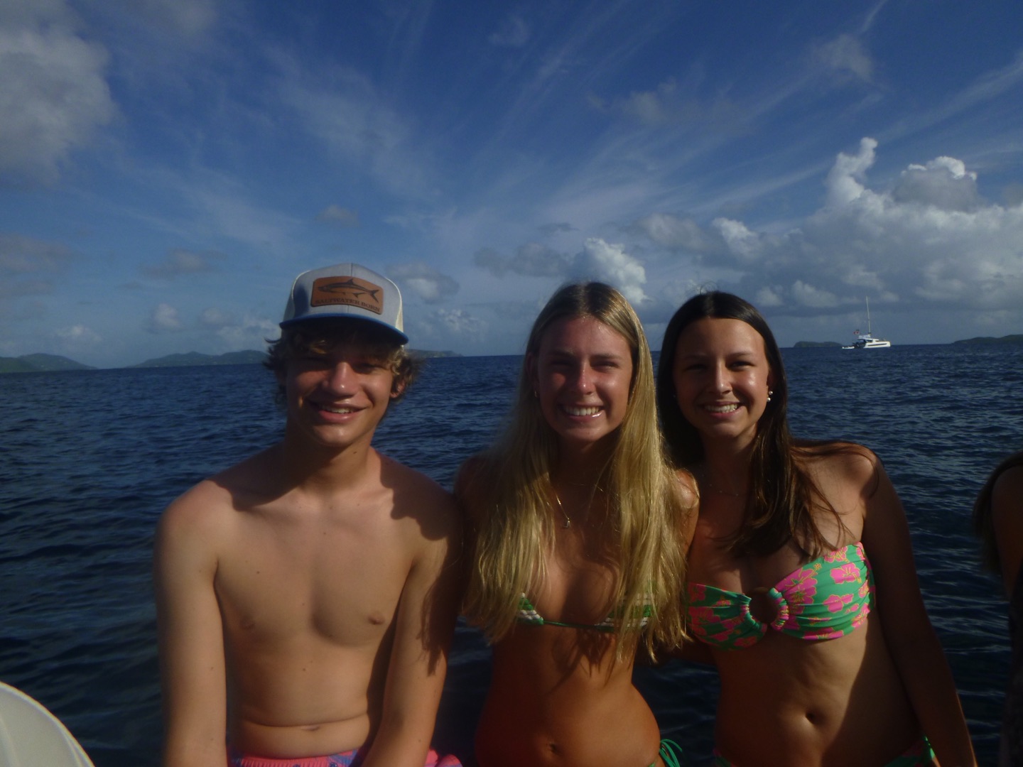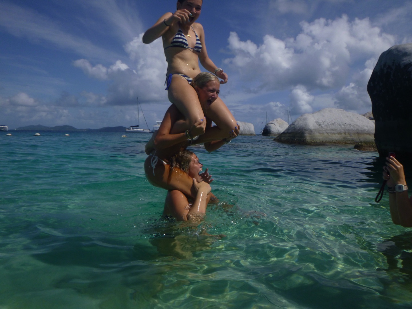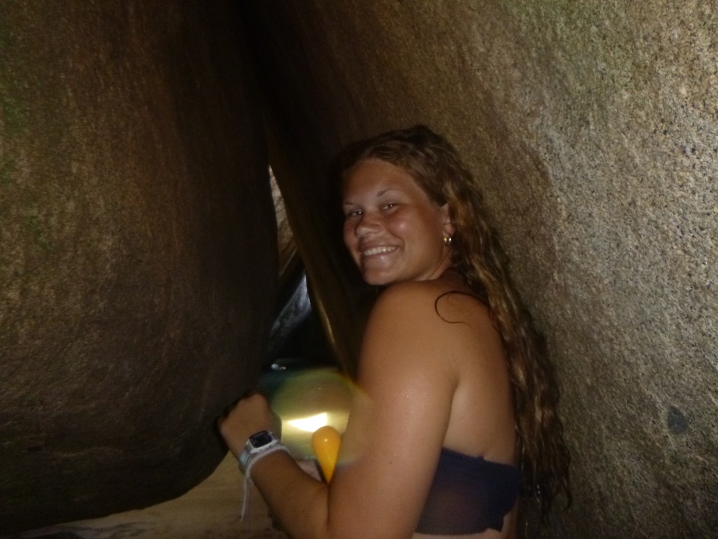 To start off our day, we set sail very early; some people slept in (luckily, that included me). We sailed to the baths, which are very large rocks that we had to climb through and jump off of! They also have a very interesting history involving the slave trade; you can look more into that on your own. Once we finished up with the baths, we took some fresh water showers down below, which was a great break from all the salty water we had been showering in for the past five days. After we all looked presentable and felt clean, we headed into Spanish town. We had a great lunch at Bath and Turtle, followed by a grocery run and some shopping. Overall a great first land day. After getting back on the boat we sailed to Mountain Point and did a really cool snorkel where we had to swim through a tunnel to get to the other side, a cuttlefish was spotted. Dinner followed, and then we got ready for our first night of scuba diving!!! Once we were all set up, we saw a beautiful sunset and went down. The dive was crazy and an octopus, lobster, shark, and huge sea urchin were found by various divers. Overall, it was super dark, and it really irked me. Lastly, we finished our night with showers, and Tarpon joined us (like a school of 30), and we all had a blast taking videos on our Go Pros and scaring each other. We got ready for bed, ate brookies (brownie cookies), and now we are just chilling and listening to music. Overall a busy but great day that everyone enjoyed.