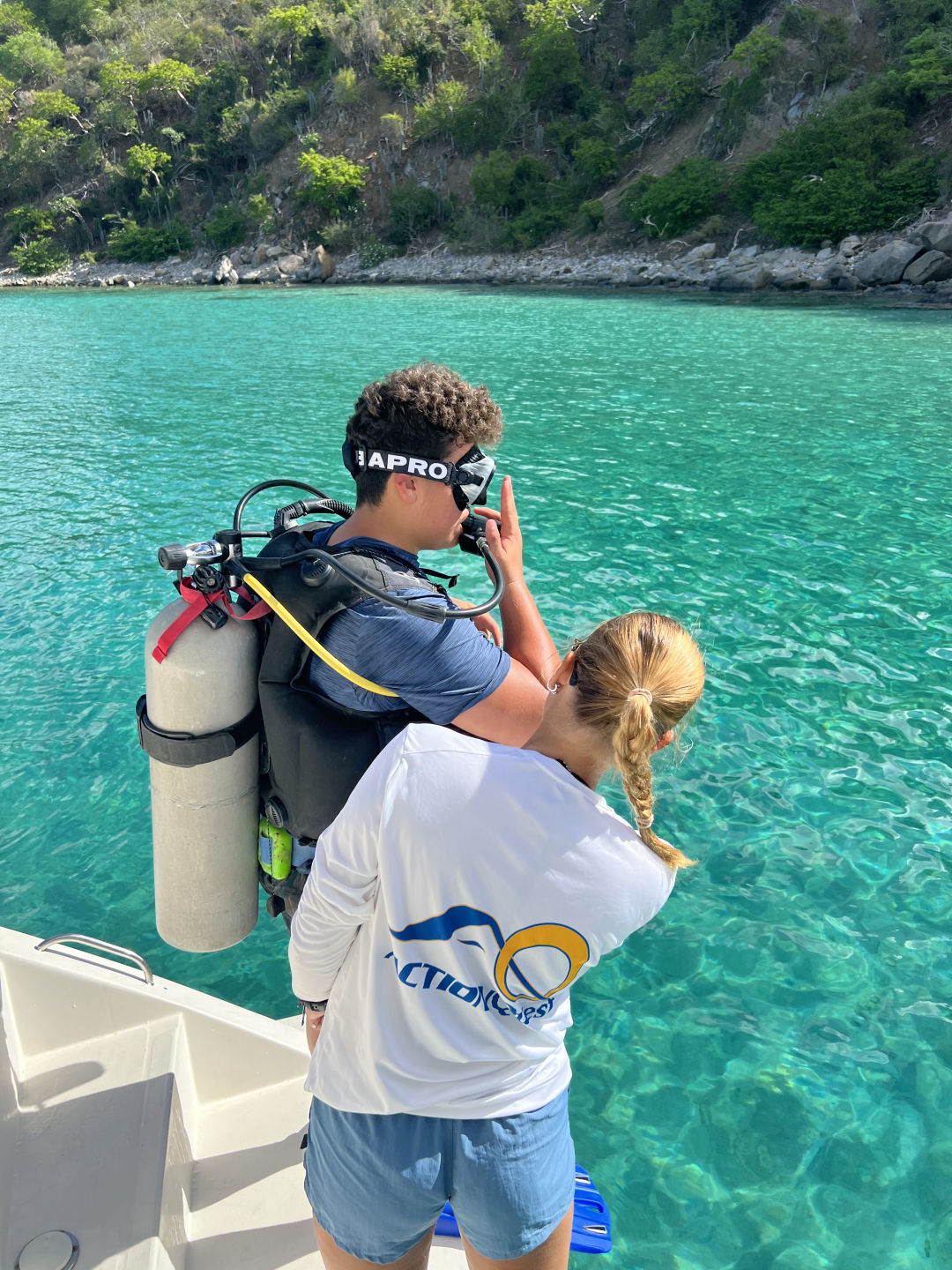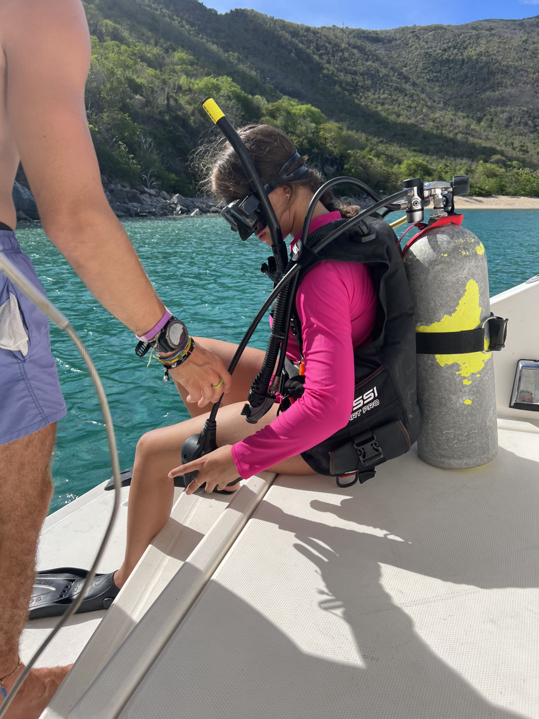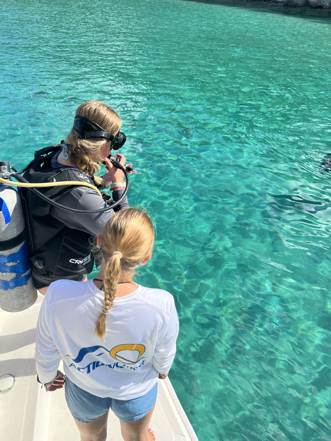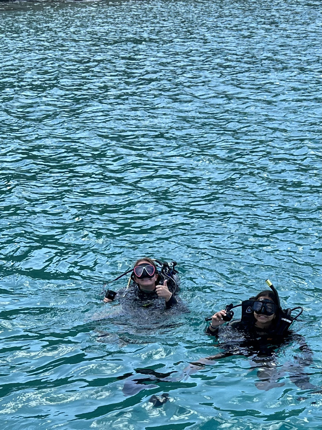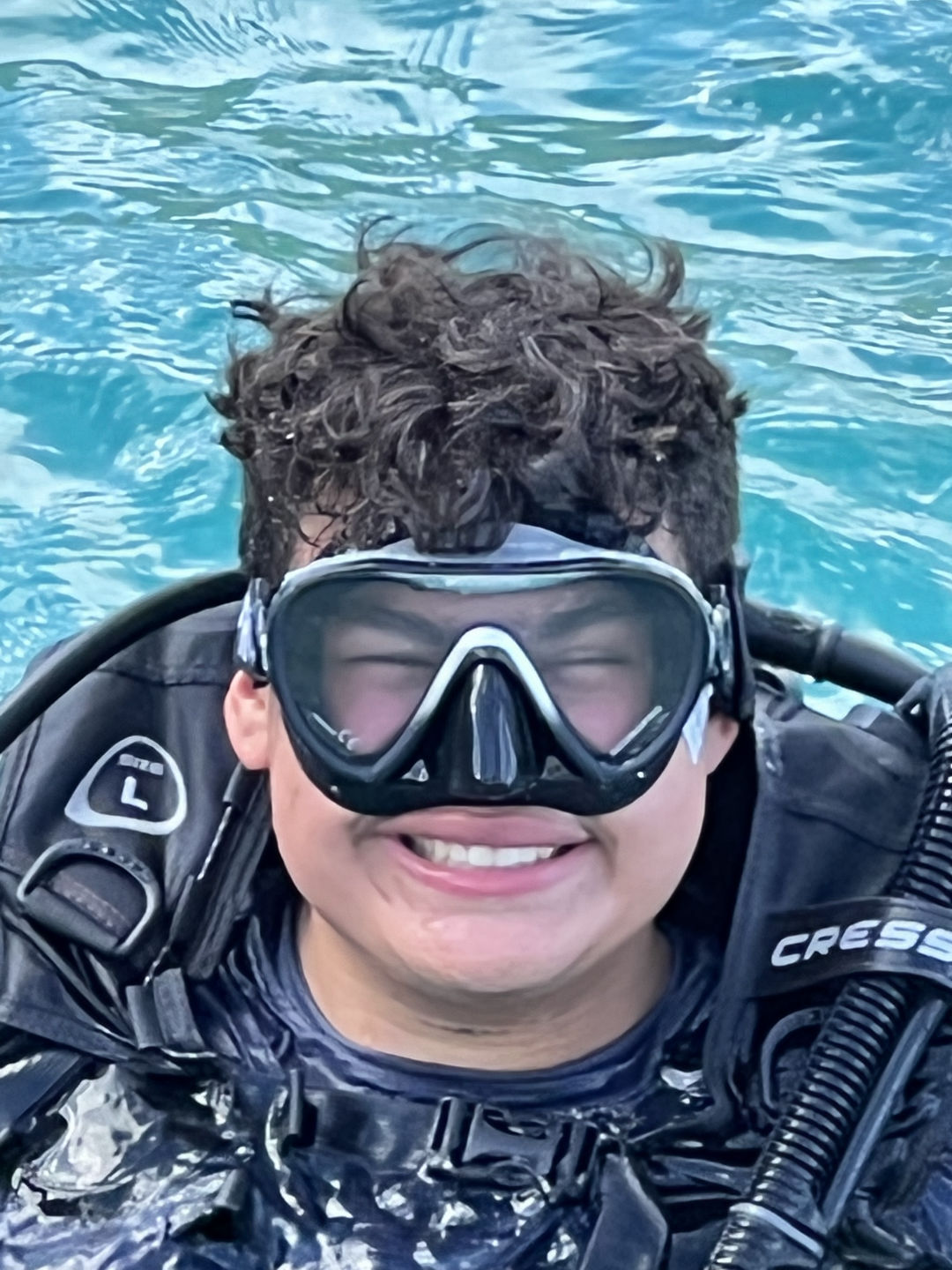 On day five, we all had to wake up really early, around six, because we had a longgggggg day ahead of us. The chefs for the day (Sophie and Lilly/south side) cooked us oatmeal which was okay. After that, we got ready to go for our first scuba dive. We dove for around 30 minutes at Mountain Point. Carlo’s mask got really fogged up, and he couldn’t see anything at all, but Myles, as his scuba buddy, was able to lead him along the way. At the same time, Riley, Sophie, Asa, Julian, Ana, Shane, Zoe, and Maya all saw a really cool-looking turtle and a bunch of shells. After that, we did water sports, including kneeboard, waterskiing, and wakeboarding. The group was mostly divided into boys and girls, and in the boys’ fleet, everyone got up, and Ace even did a flip.