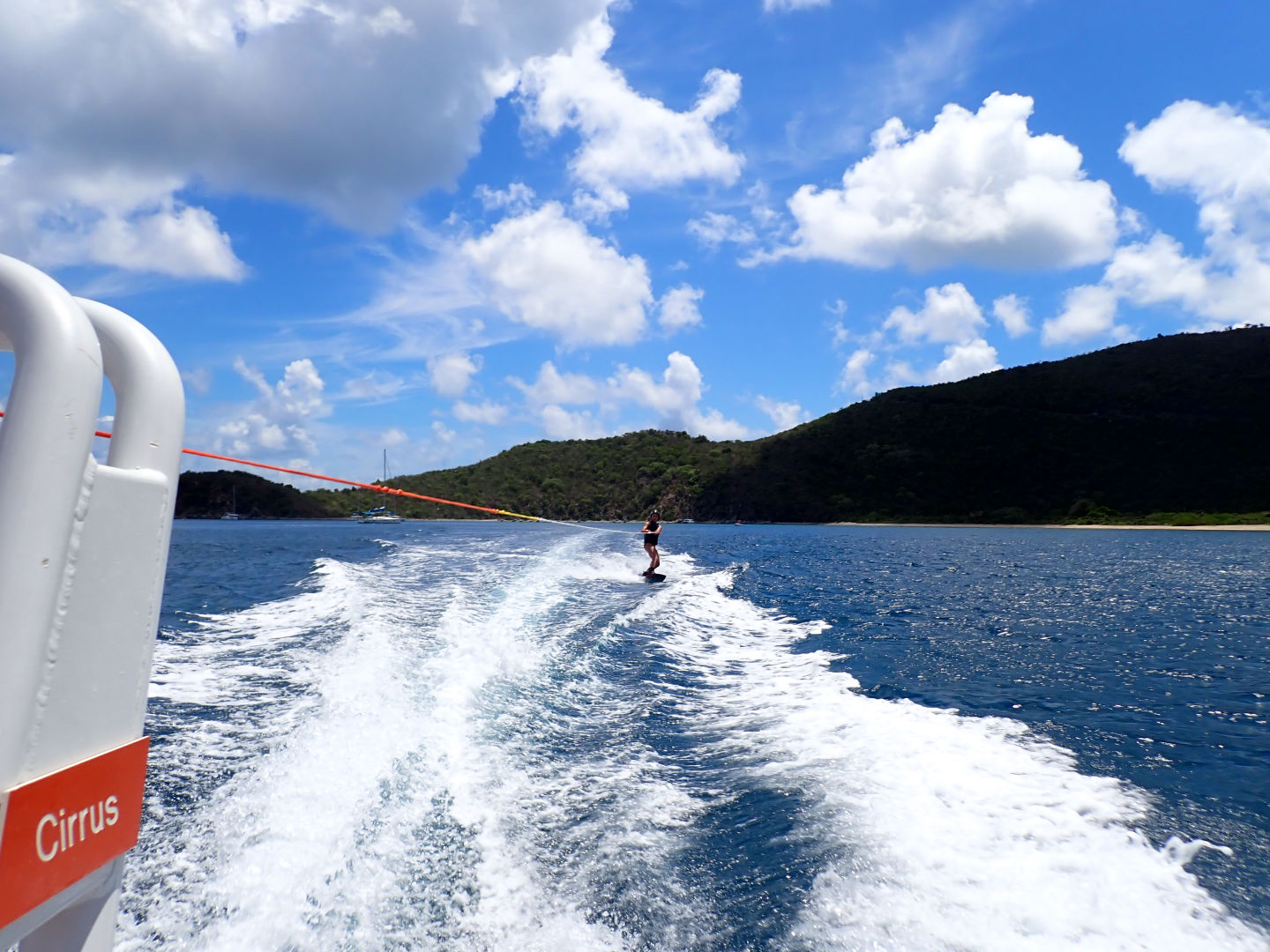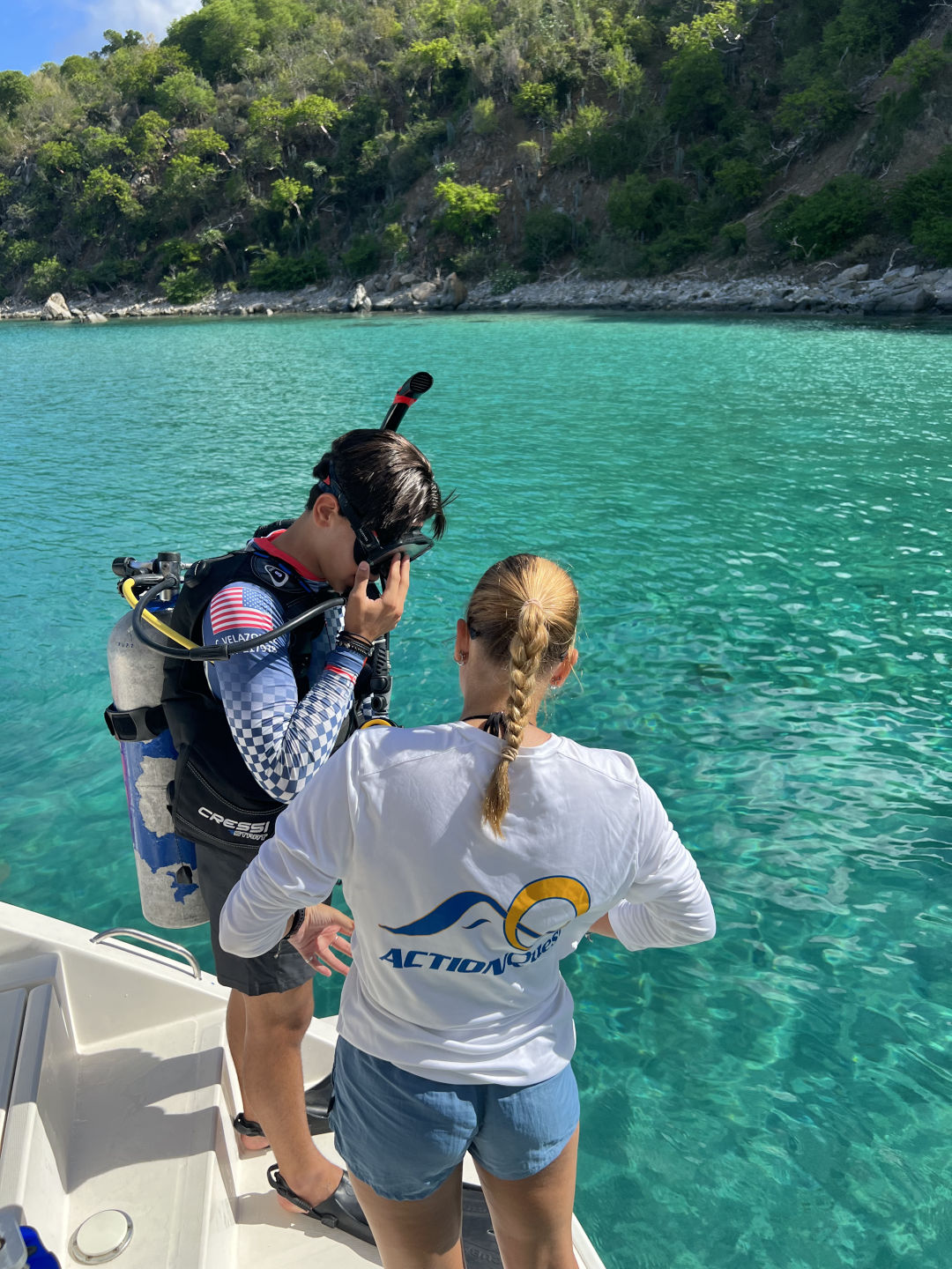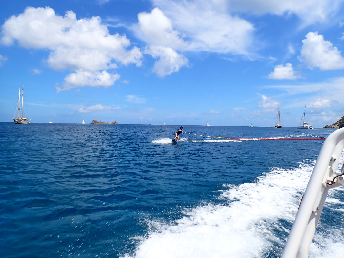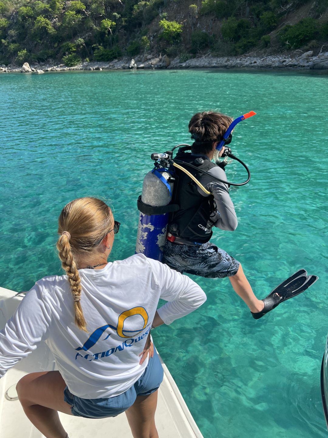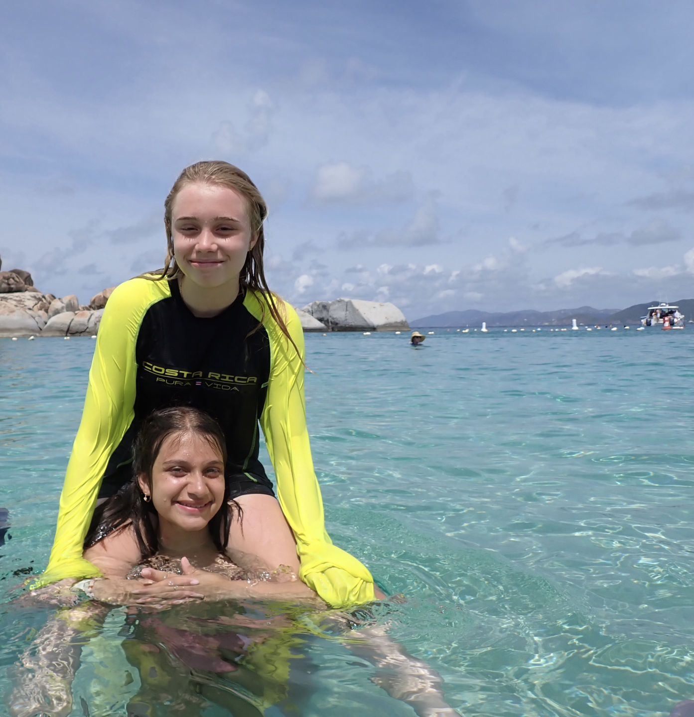 On day five, we all had to wake up really early, around six, because we had a longgggggg day ahead of us. The chefs for the day (Sophie and Lilly/south side) cooked us oatmeal which was okay. After that, we got ready to go for our first scuba dive. We dove for around 30 minutes at Mountain Point. Carlo’s mask got really fogged up, and he couldn’t see anything at all, but Myles, as his scuba buddy, was able to lead him along the way. At the same time, Riley, Sophie, Asa, Julian, Ana, Shane, Zoe, and Maya all saw a really cool-looking turtle and a bunch of shells. After that, we did water sports, including kneeboard, waterskiing, and wakeboarding. The group was mostly divided into boys and girls, and in the boys’ fleet, everyone got up, and Ace even did a flip.