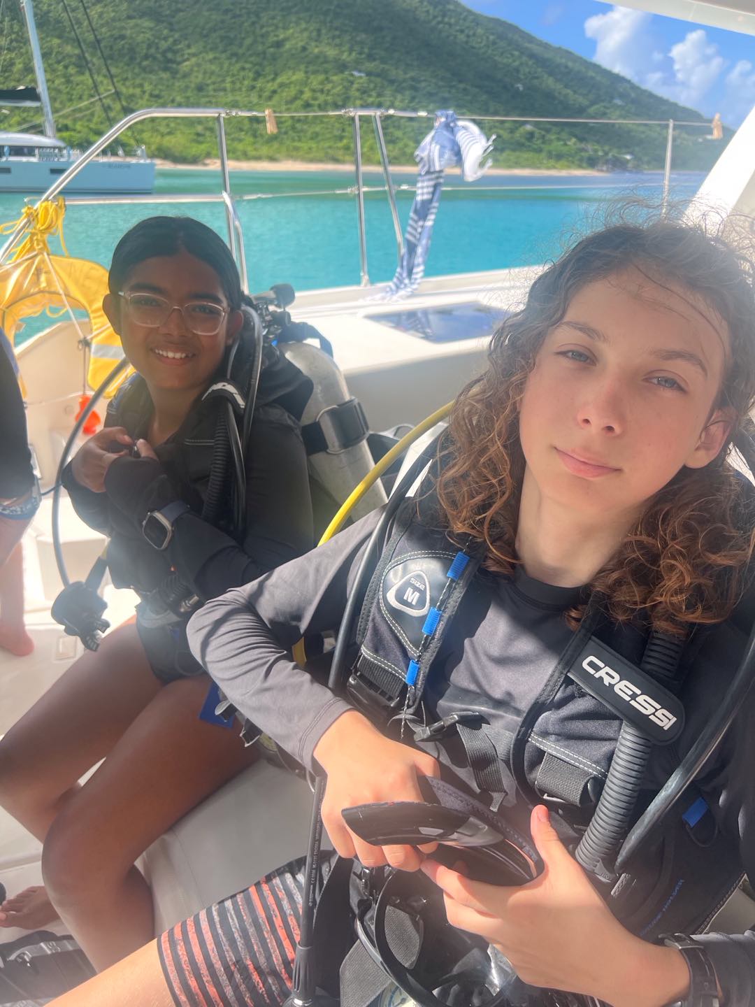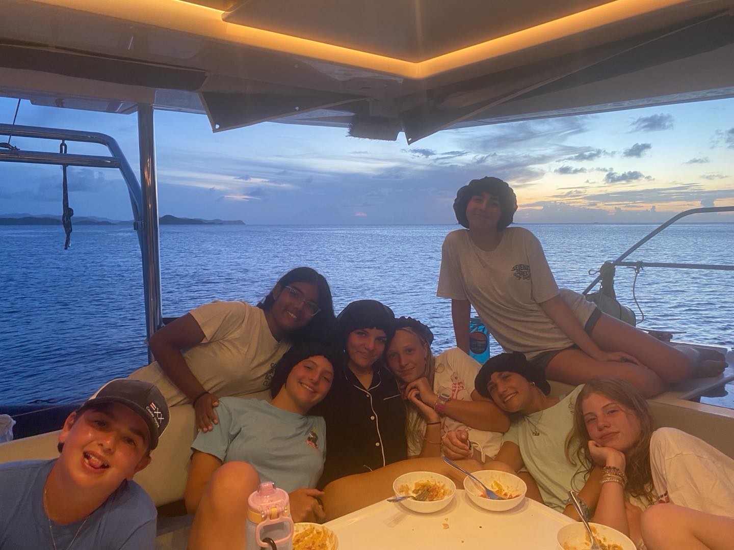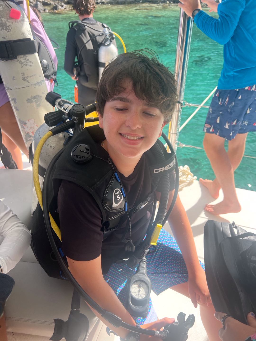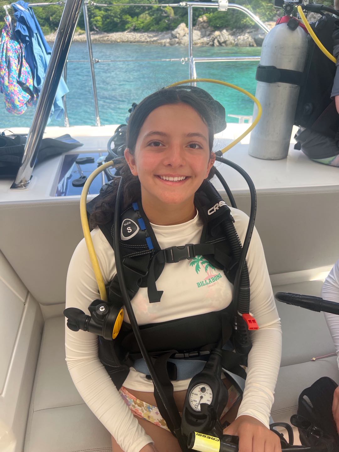 Today, we started the day diving on rotation day, which was very fun. We then moved on to water sports, and Asha got up onto the water skis for 12 minutes straight! Meanwhile, Enya, Ainsley, Lily, Sophie, and Cora chilled and did water sports. Lily ended up very burnt⦠š„µ. After that we all got ready for zesting. Ainsley and Lily’s turtle shells capsized while many others did, too. Max and Marlowe had a wild time but ended up floating too far in their zests and had to be towed back to shore. Quin, Kiara, Enya, and Ainsley all had fun diving off the boat while everyone else zested. Then we headed back to the boat for a good shower, which Lucas and Declan took a long time to finish! There was a delicious dinner of beef mushroom stroganoff, which everyone enjoyed. All the girls on the boat got matching caps and wore them around, which was very funny. Everyone worked together to clean up and get ready for the night of diving, studying, and talking! Today was a great day filled with diving and fun.