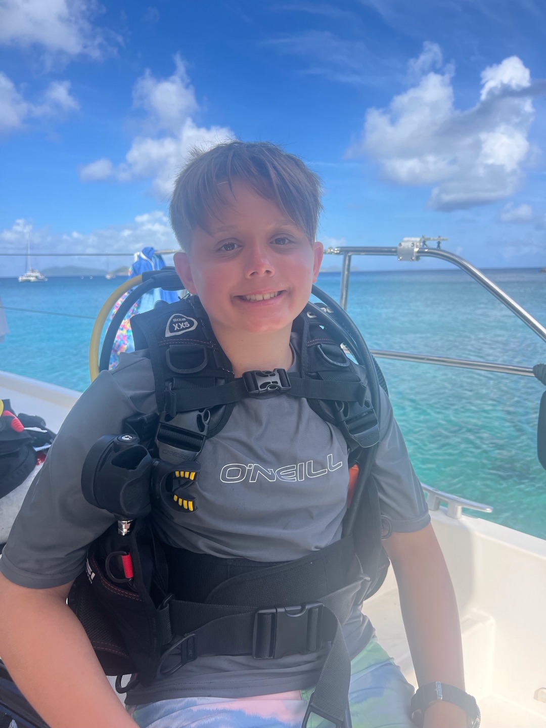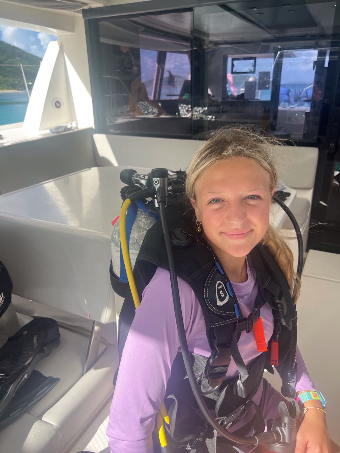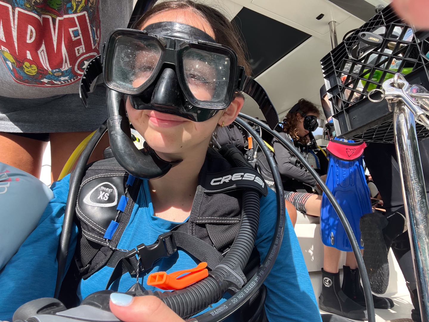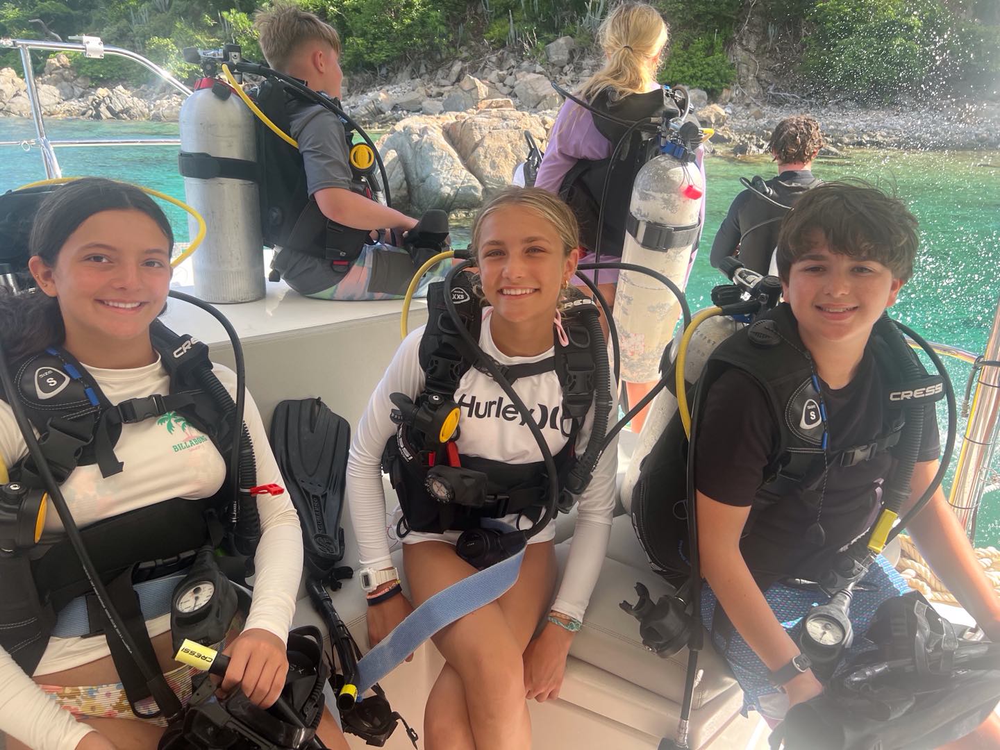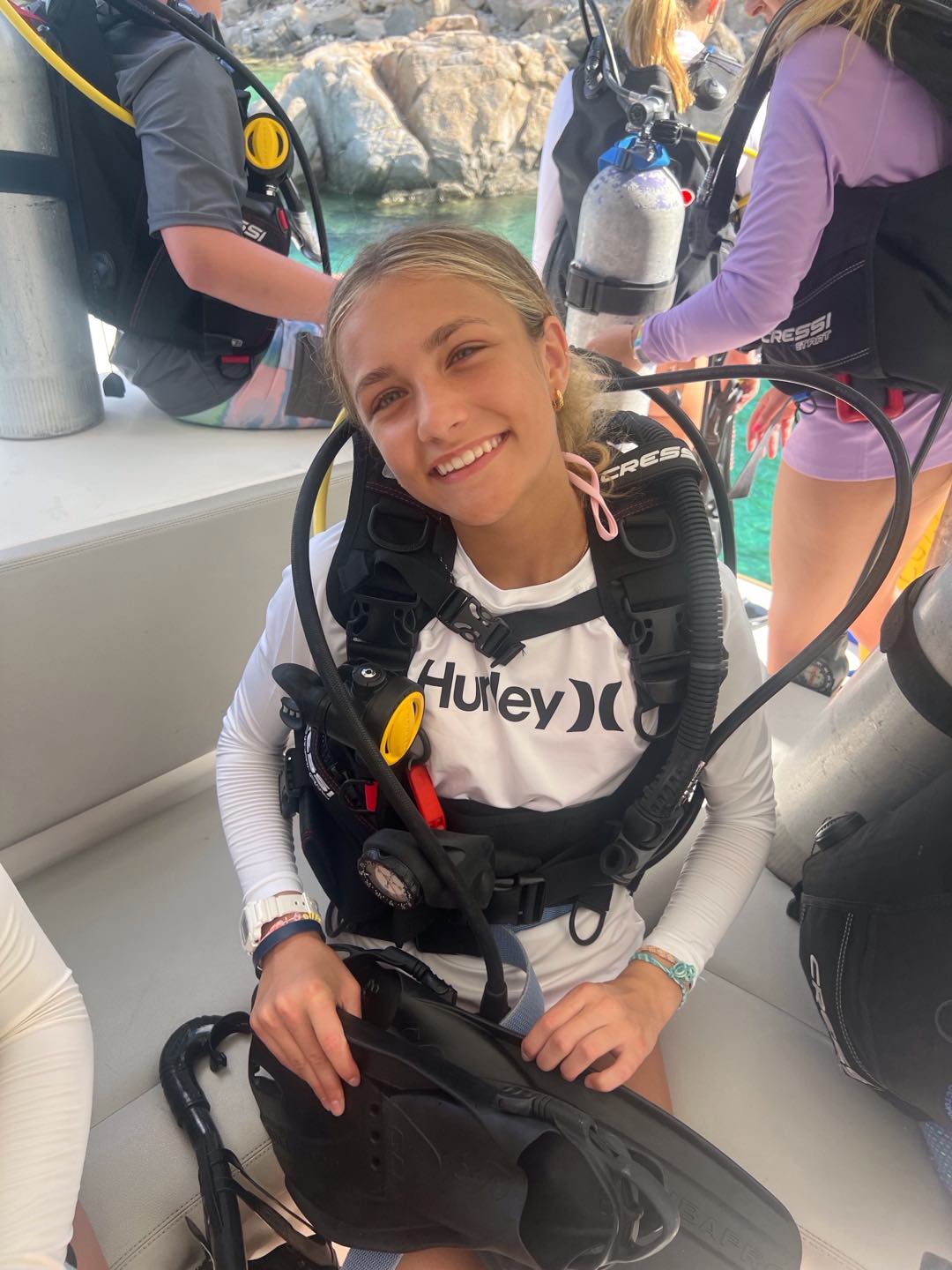 Today, we started the day diving on rotation day, which was very fun. We then moved on to water sports, and Asha got up onto the water skis for 12 minutes straight! Meanwhile, Enya, Ainsley, Lily, Sophie, and Cora chilled and did water sports. Lily ended up very burnt⦠š„µ. After that we all got ready for zesting. Ainsley and Lily’s turtle shells capsized while many others did, too. Max and Marlowe had a wild time but ended up floating too far in their zests and had to be towed back to shore. Quin, Kiara, Enya, and Ainsley all had fun diving off the boat while everyone else zested. Then we headed back to the boat for a good shower, which Lucas and Declan took a long time to finish! There was a delicious dinner of beef mushroom stroganoff, which everyone enjoyed. All the girls on the boat got matching caps and wore them around, which was very funny. Everyone worked together to clean up and get ready for the night of diving, studying, and talking! Today was a great day filled with diving and fun.
