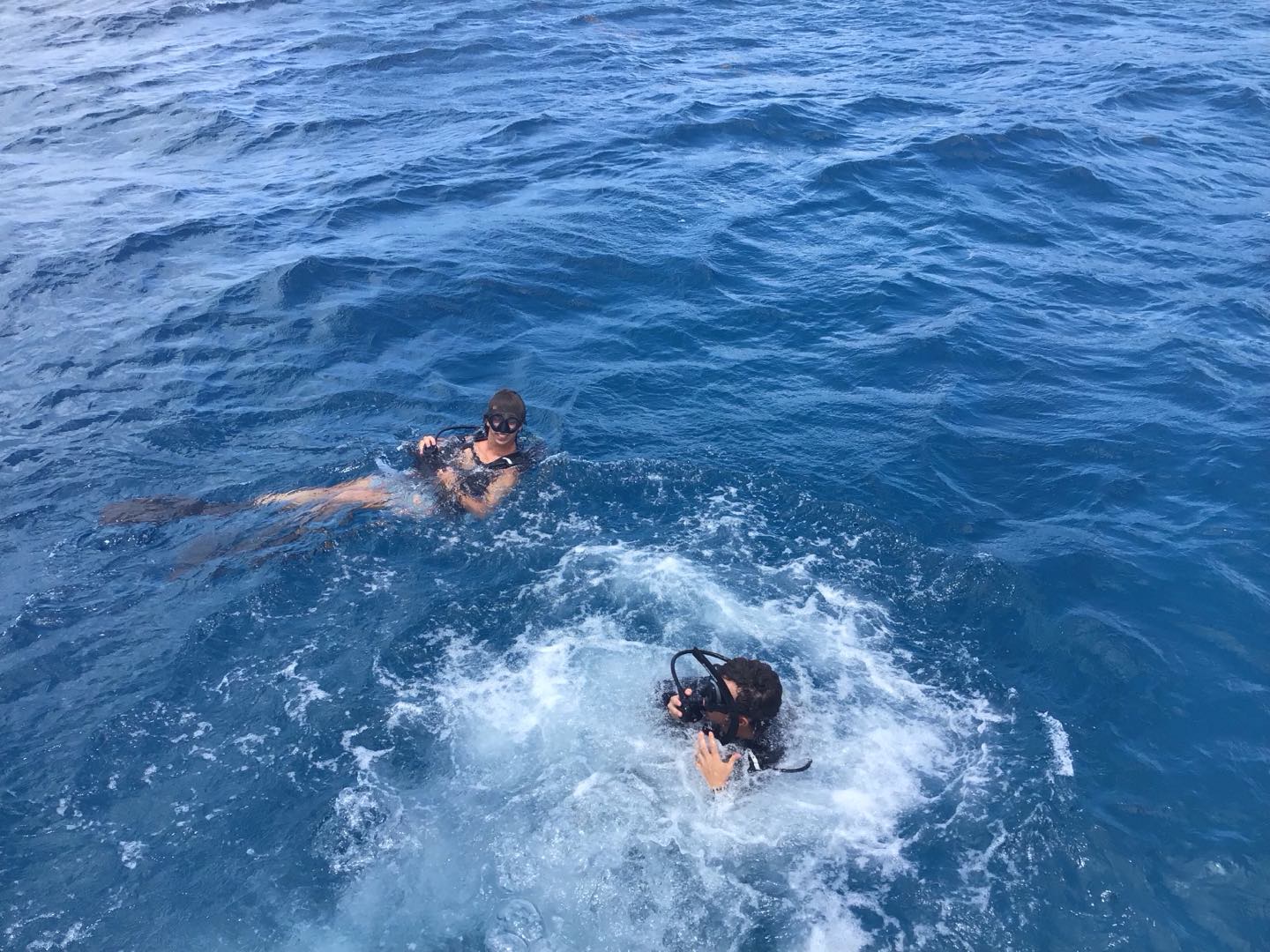 Hey, everyone! Today was an awesome day that was very much packed until I’ve been sitting here writing with music and dishy pit going on in the background. We were treated with a (slightly) earlier wakeup at 7:00 AM to get underway to our first dive site and have an energizing breakfast of scrambled eggs accompanied by toast. Later, around 8:30 AM, we arrived at a dive site called The Chimneys. This was the first fun dive of our trip, so everyone was super excited and brought their underwater cameras. On the dive, we swam through some beautiful rock formations and coral. We also swam through some really tight rocky passages, which are actually what give The Chimneys its name. Outside of some cool squirrelfish, I didn’t see any super crazy aquatic life.
