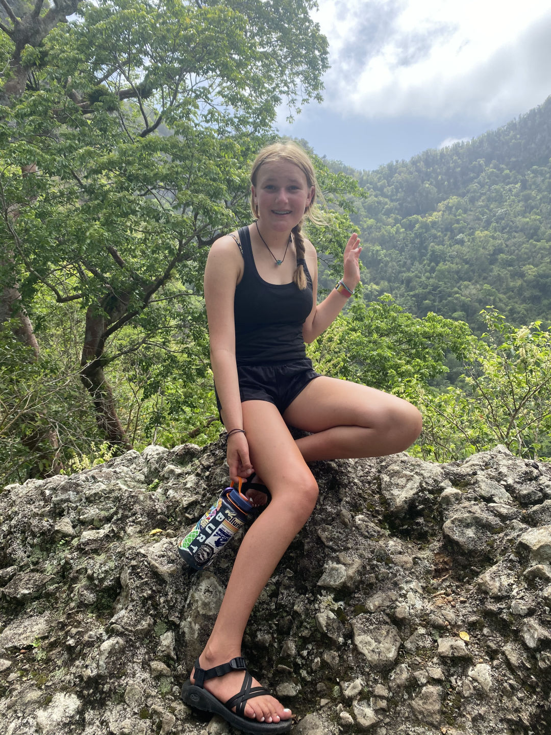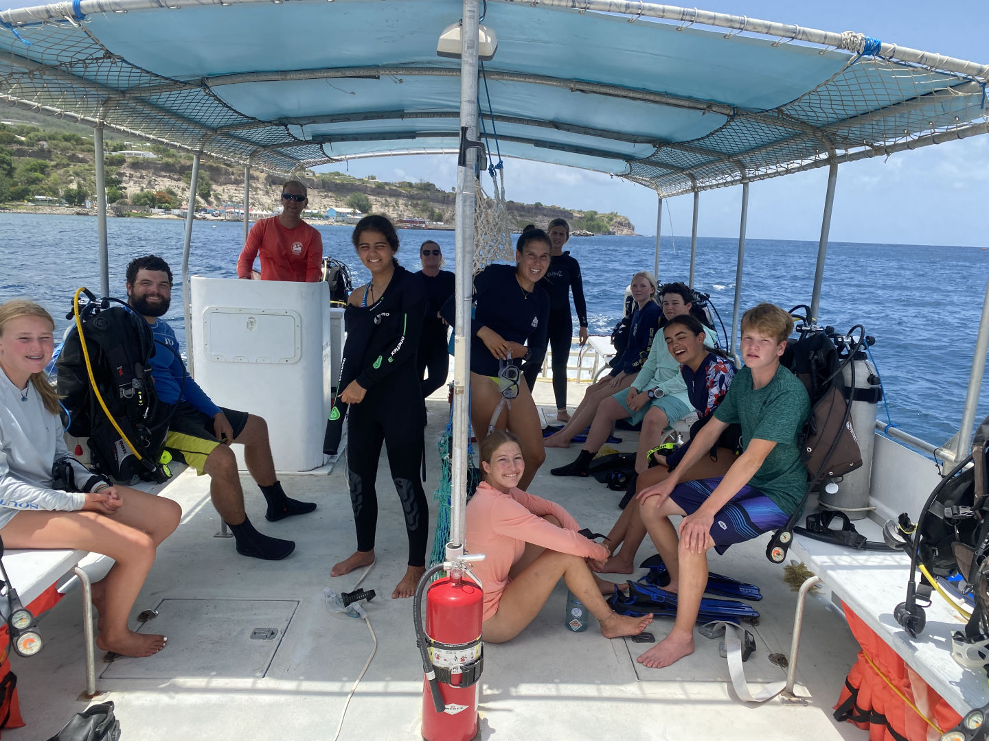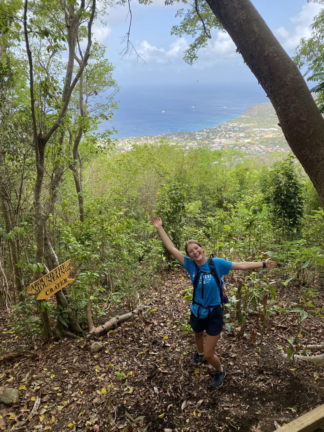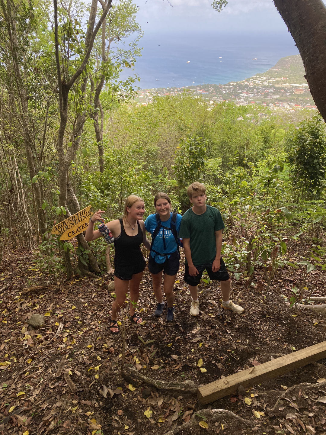Our day started with the fun news that our freshwater pump broke, and we wouldn’t have access for the time being. We had a few full pitchers of water, so we were alright. We enjoyed breakfast burritos and then headed to Statia for shore time. MRB (Miranda), Audrey, and I hiked to the top of Statia, which had a forested creator at the top, plus views of the island. Sophie, Alex, Noah, and Violet went to a coffee shop in town and visited a fort located on the island. In the afternoon, there was also an amazing dive where we saw nursing sharks, sting rays, turtles, coral reefs, and shipwrecks. Those who stayed on shore also saw a nursing shark on the beach! On a more tedious note, all of us had to test for covid, but no one tested positive! We then headed back to Wombat to find that our skipper Nick had found a new pump! We then had some grilled cheese made by Sophie and Audrey. Now, all that’s left is to get cleared by customs. Then we’ll be at Nevis after a night of sailing!