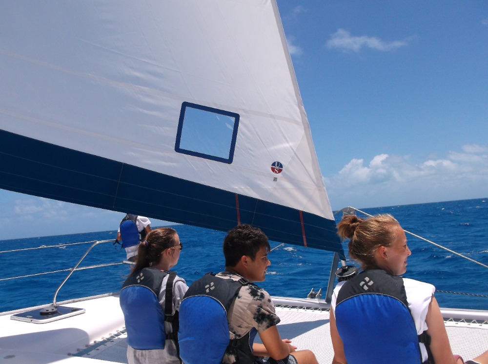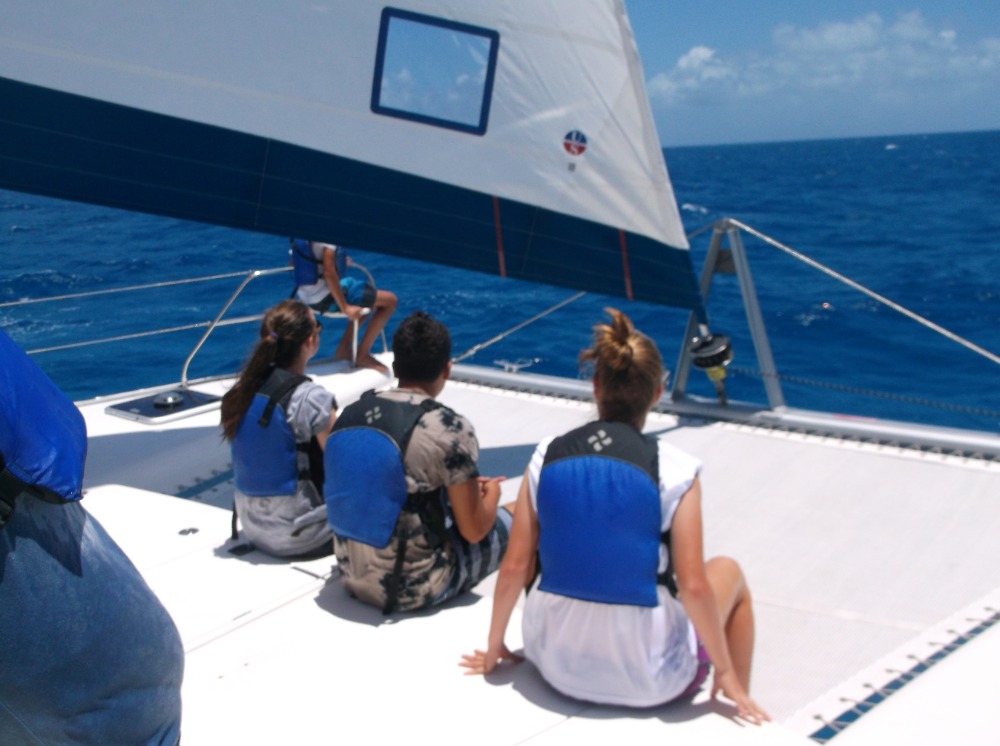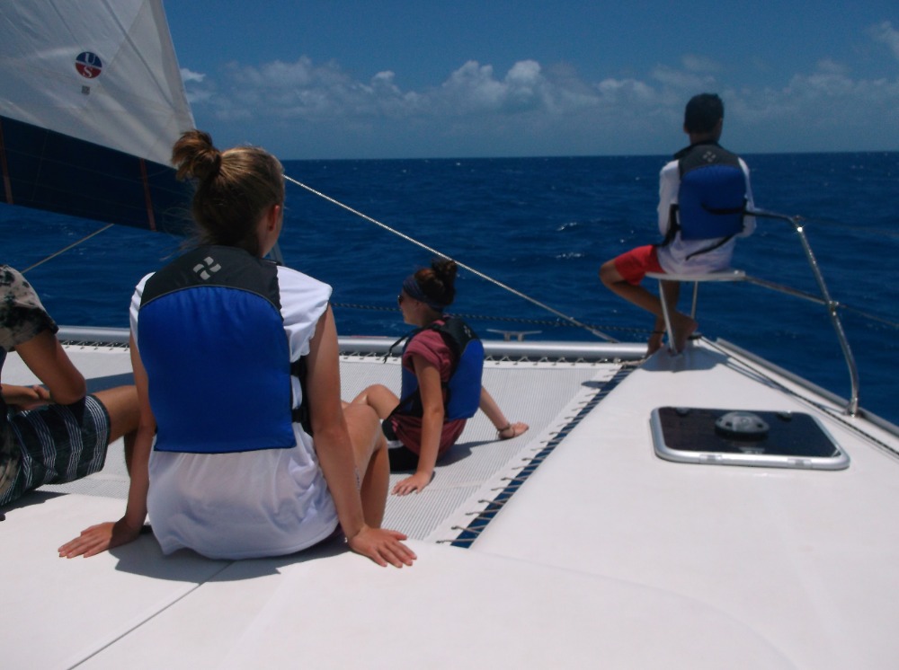Waking up early from a long night of dancing and singing, we all dragged ourselves out of bed and put on our life jackets for a sail to Anegada. The boat rocking side to side with water splashing everywhere was a great way to start our long and wonderful day. We are all starting to grow as a team and family and we got all the sails up while playing some competitive games. After chowing down our PB&J, we hopped in the dinghies and started heading to shore. Not wasting time, we split into 2 groups to start the trash scavenger hunt. After awhile the short game turns into a long 4-mile walk in the hot sand. Seeing the orange tape marking the end of our walk was a life saver, with ice cream as a reward. With our tummies rumbling, we raced home and cooked our food for Mexican night, sharing many smiles and laughter.