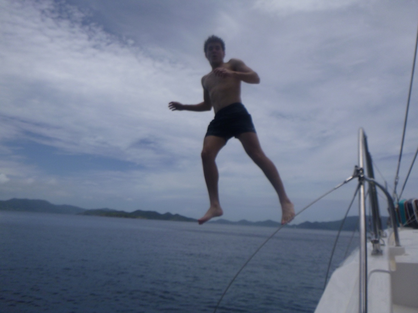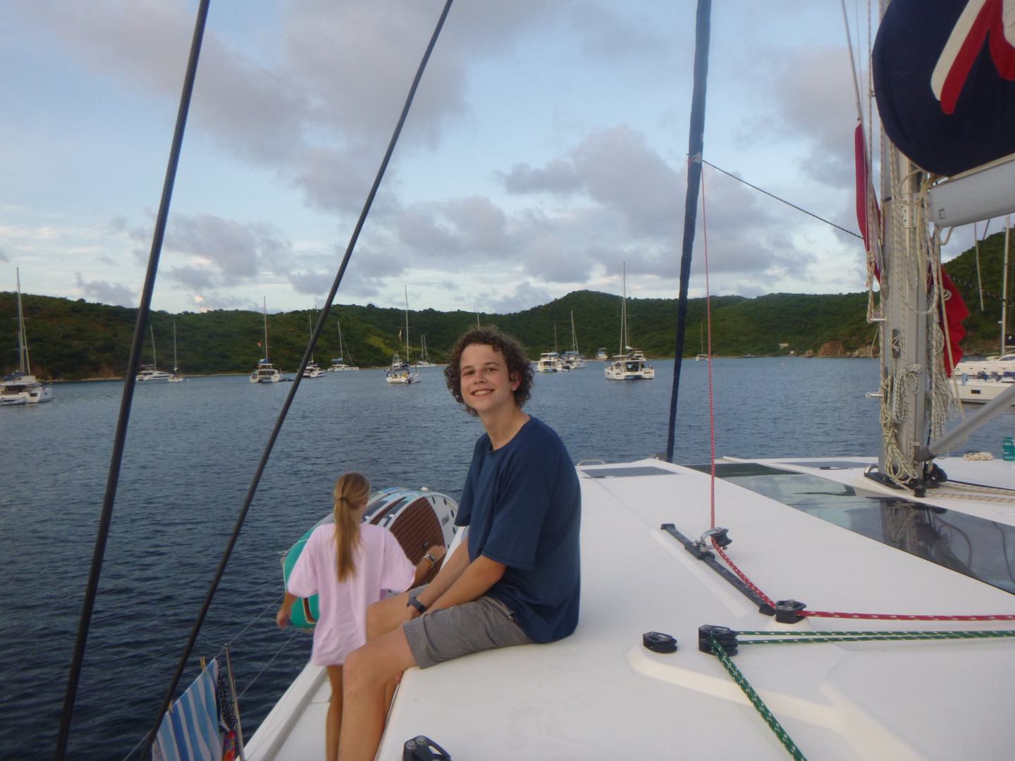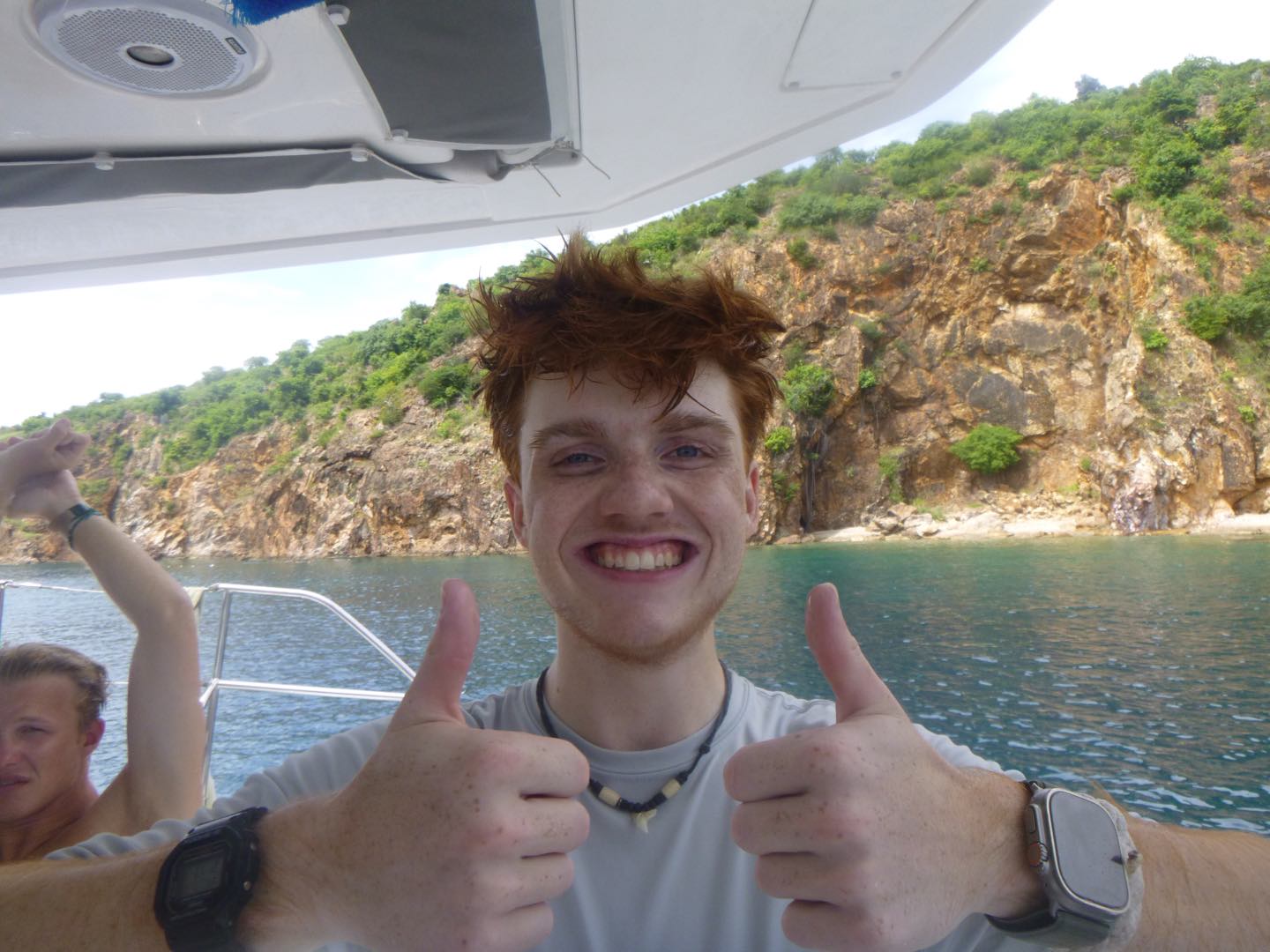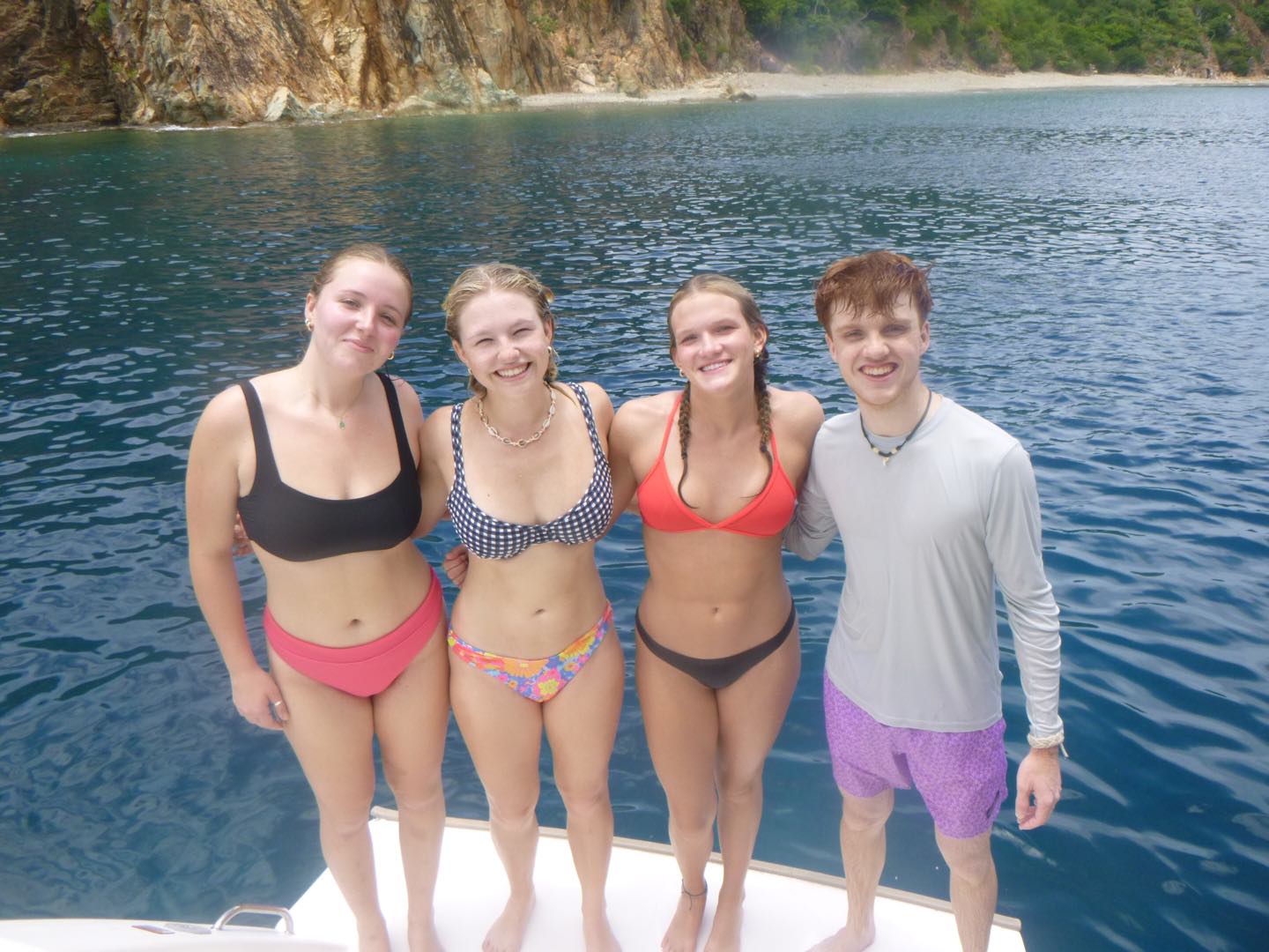 Everyone on Grayteful got woken up with some fun music this morning, thanks to our amazing staff member,r India. Our chefs for the day, Ty and Micah, got the cereal out so we could have a quick breakfast before we headed to Pusser’s for the fleet meeting. Mike talked us through the protocols and sent us on our way to our first sail of the trip! We got our PFDs assigned to all of us and then headed out. Macy, August, Madeline, and Annika got the chance to learn some helmsmen skills while the other Vega students helped with the sheets. We were able to reach full sail while underway!!! While they were having fun, the dive master candidates (Ty, Alexis, Scott, and I) got to watch a PADI video, “Yay.”