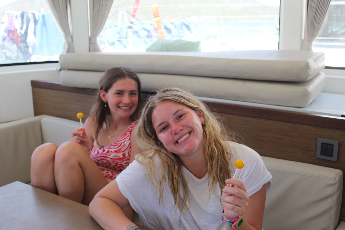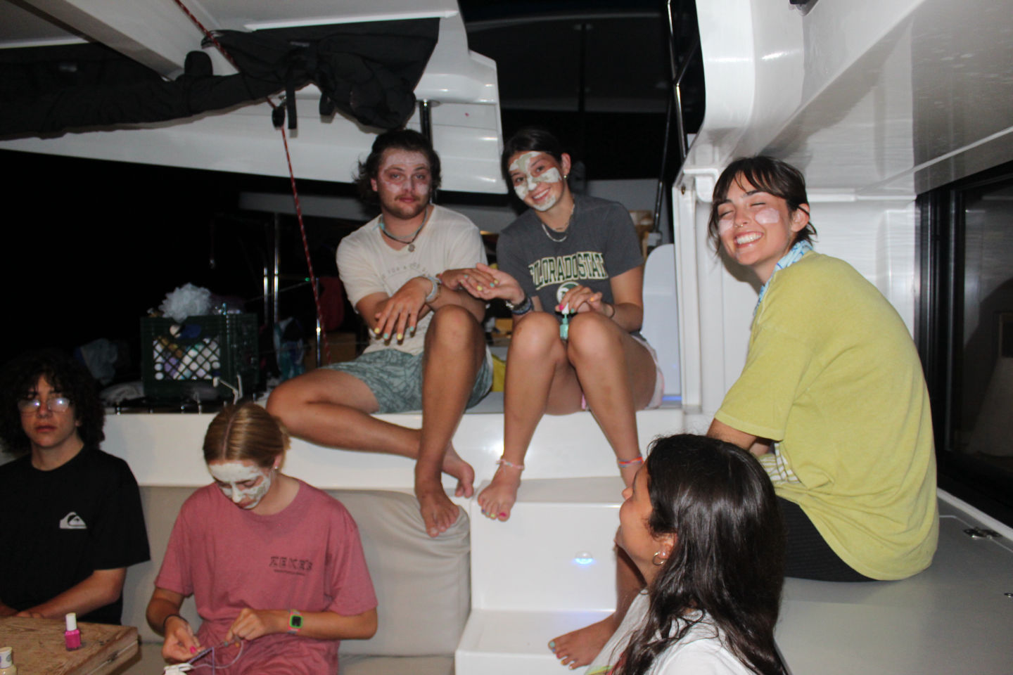 We started our morning with lovely bowls of cereal. We had rotations today, starting with Zesting and small boat sailing. This was many people’s first time sailing. At the start, Spencer fell off of his and Luke C’s boat, but after, they did great and had so much fun! Anna and I did super well sailing and had a super smooth jibe. Maya, Sofia, and Katie were so proud of themselves for not capsizing at all! Ellie and Paige capsized, and both ended up on the sail. Next, we spent time paddle boarding and getting some sun. Ellie really liked the sand and learned how to skip shells. Lunch was Mac and Cheese made by Anna. Our dive masters, Luke, Grace, and JT, practiced their navigation with the advanced open-water divers. After lunch, we had time to water ski, wakeboard, and kneeboard. Luke A had a blast while wakeboarding. The last rotation was snorkeling mangroves. We saw a large stingray, some nice-looking fish, upside-down jellyfish, feather dusters, baby barracuda, and a spider crab. After dinner, we had a dive chat with a quiz at the end that everyone passed.