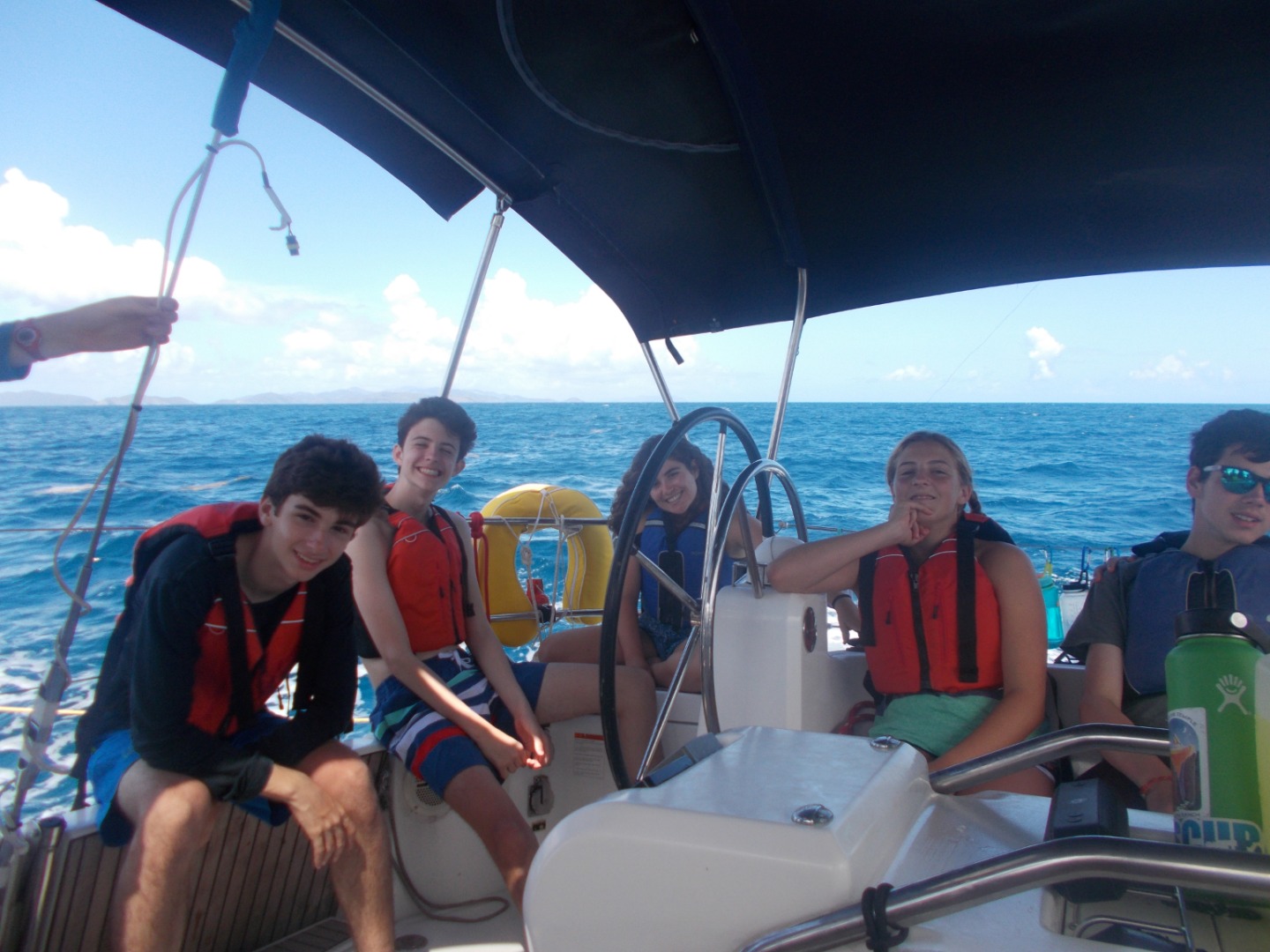 Today we woke up to french toast in Savanna Bay. After we pulled up anchor flawlessly and sailed out. We had a wonderful time sailing to Anegada Island on the way out we sang along to multiple great songs. On the beach, we had a picnic, swam, and sat on the beach. After the beach, we sailed over to Leverick Bay and headed over to the BBQ and had a great time.