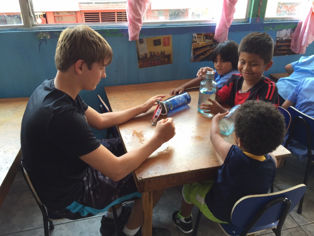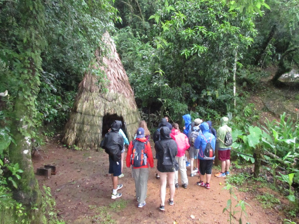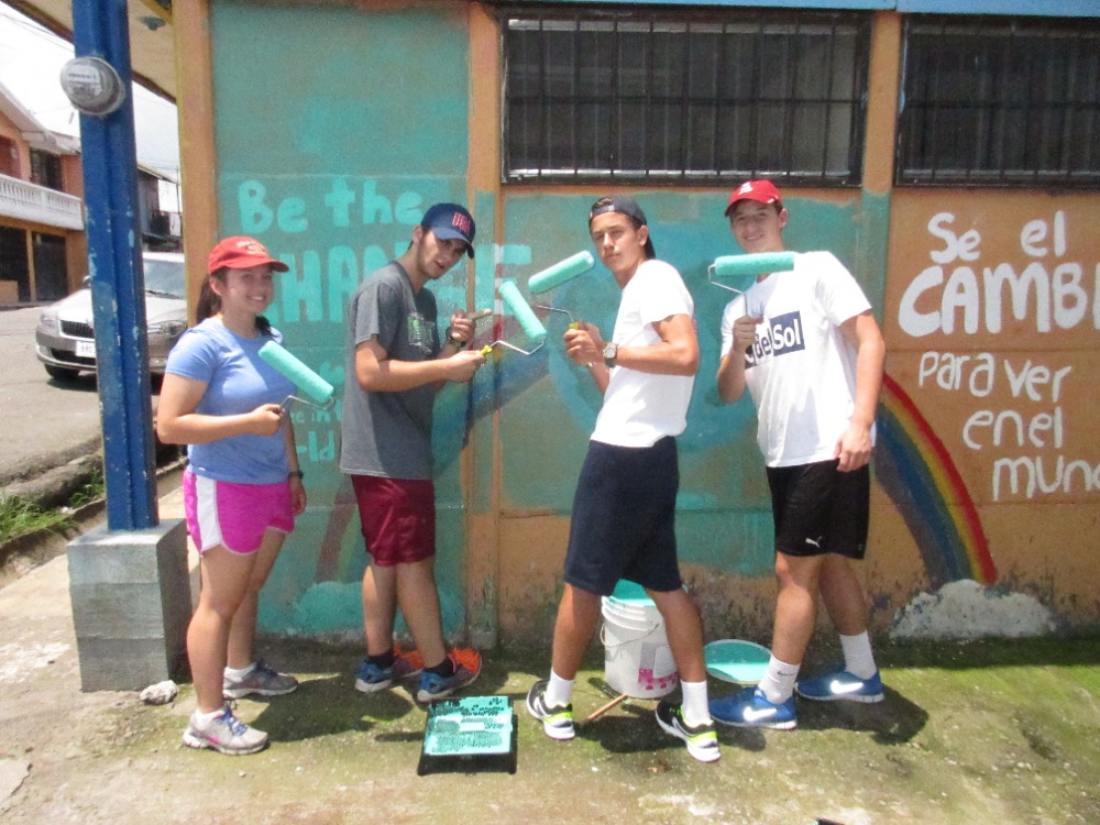 Day 1, the tension was apparent, but by the end of the day, we felt like we all have known each other for much more than 24 hours. With the typical breakfast of cereal and eggs, we were eager to explore and immerse ourselves in the impoverished community. La Carpio, the poor community dominated by Nicaraguans on the outskirts of Costa Rica’s capital, proved to be more than what it seemed when we saw it from a distance from our bus. The area is filled with joyous people that taught us a thing or two about how to enjoy the little things in life. By serving, playing, and attempting to communicate with the people, they taught us more then what we had expected. After painting and spending time with the kids in the daycare, we switched to the Costa Rican dietary meal of rice and black beans, basic but very filling and delicious. Once we were stuffed with Latin American cuisine, the one hour bus ride through the countryside and the Costa Rican mountains proved to be a sight that we would never forget. From the bus, we were able to see the gorgeous valley with San Jose at the very bottom. Once the overcast came in, we hiked a small distance to see Nelson, son of the Shaman of the Guenar tribe. His compelling story explained the history of his culture and provided a sentimental feeling to our hearts when he described the current suffering of his people. His story is similar to the other 7 remaining tribes who suffer from the lack of attention by the Costa Rican government. He then showed us some living conical homes made from tree leaves; That is the typical lifestyle of his people. He then performed a spirit-cleansing ritual which everyone participated in. Finally trekking back through heavy rain and thunderstorms, we reached our safe haven: the bus. The bus ride back to our hotel proved to be an important time where everyone familiarized themselves with each other. The final dinner proved once again how food was always something to look forward too. The first day was something to remember.