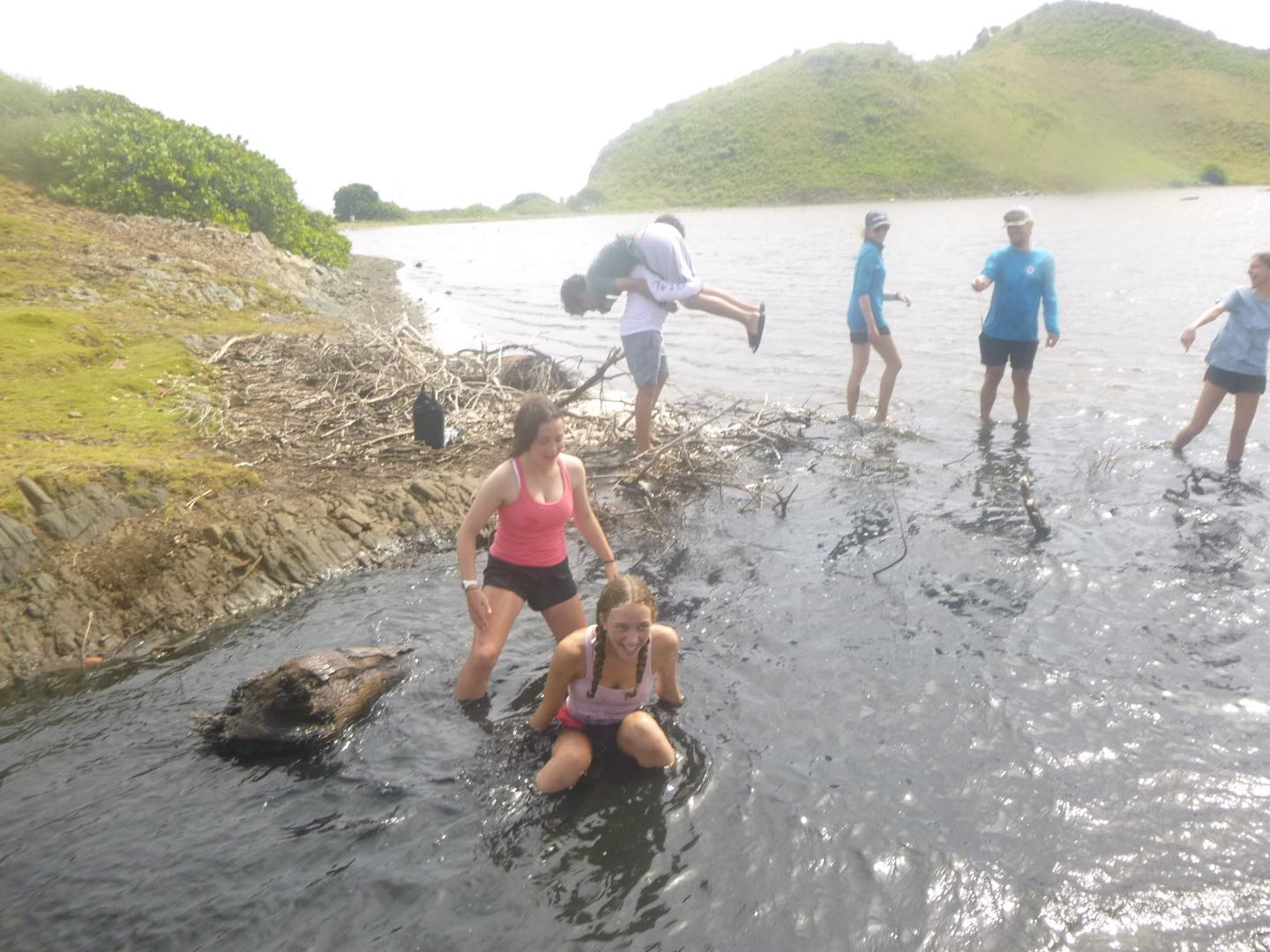 Waaa saaa duude, Welcome back to the midday chats (unfortunately not midnight). Today, we set sail to Salt Island around 7:00 am. Where we embarked on a very interesting journey across the great Pacific Ocean (we think?) Once we got to Salt Island, we had some breakie of oats with apples. Then, we set out on a hike to Isle de Sal. We were told ahead of time to avoid the tar like mud, However that did not go so well. When we got there, there was only one way, which was through the tar-like mud. It started by Anna trying to get a piggyback from Mia but that was bonkersssss. So Then Ruby and Anna embarked across the mud, which resulted in them both falling chest-deep in jet back tar( big UH-OH)😜. From here on, many tried to cross, though very few were successful. Except Axel who managed to get a piggy back from Lindsay, and Harrison also threw some people over his shoulder to get them across the tar damage free 💪. Then we walked the rest of the way up the mountain 🏔️.