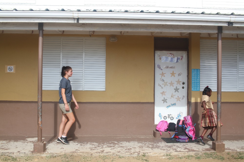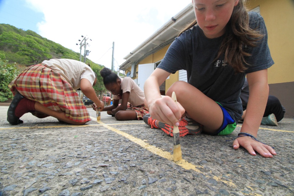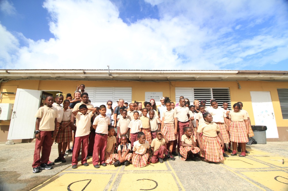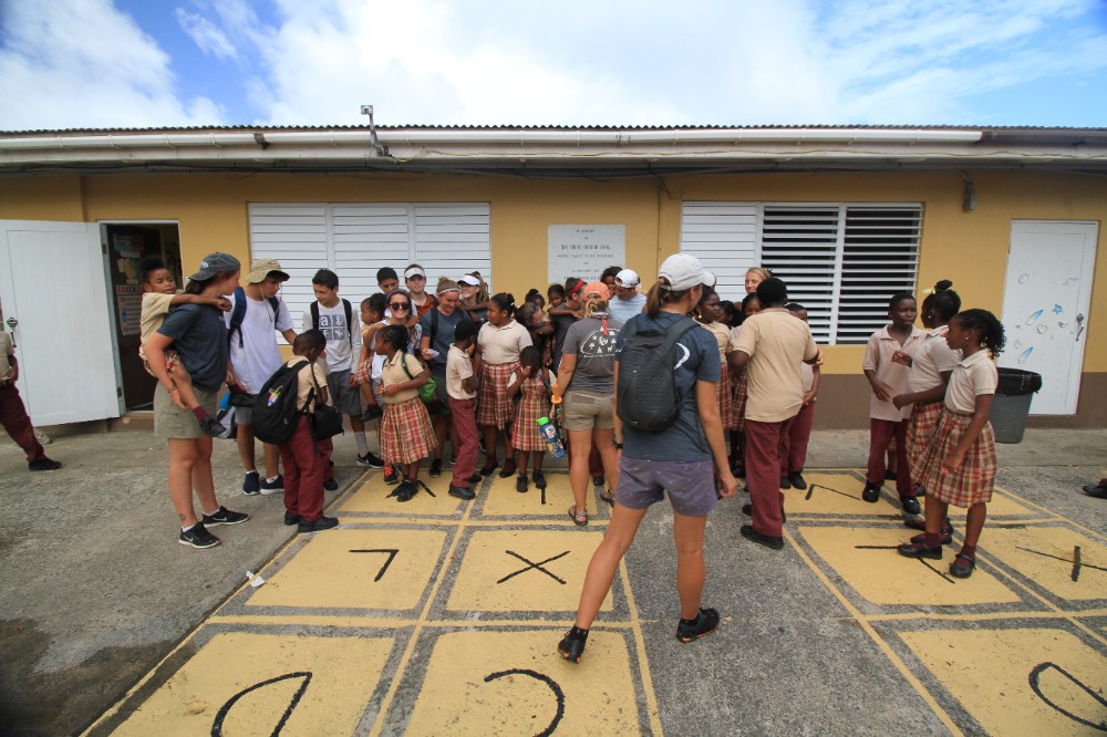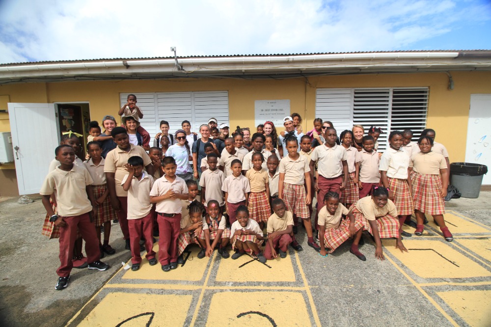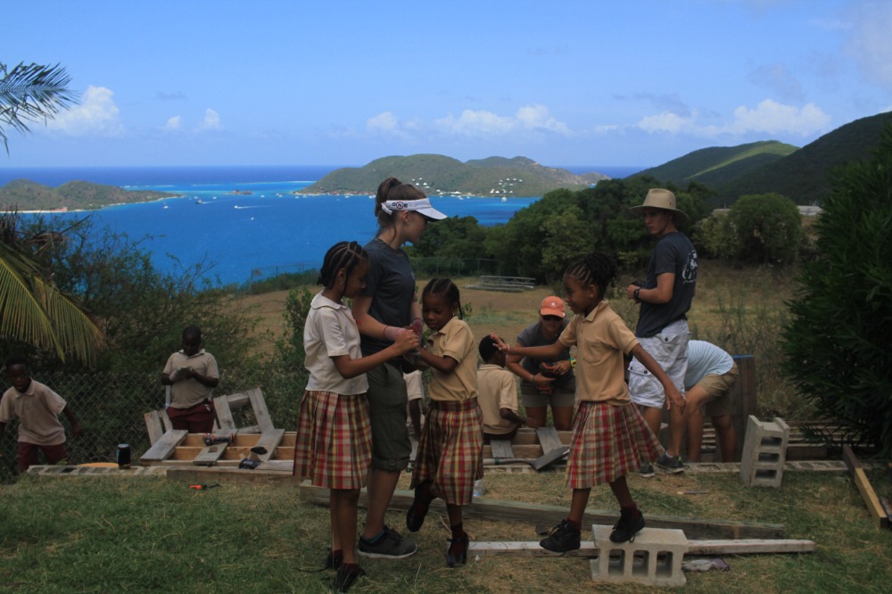 Today we woke up bright and early at Mountain Point, in Virgin Gorda. We all ate a quick breakfast while underway to Leverick Bay. Once we got to Leverick Bay, we all jumped into the dinghies and headed to shore. All day, we worked at a school called Robinson O’Neil and helped build gardens for them while also interacting with the kids of the school. We played fun games with them and then, they helped us build the garden beds. The engineering of the garden beds was very hard because we had to build them on a slanted hill and keep them flat so the plants can grow properly. After all was said and done, we headed back to the boat to get ready for our first Beach BBQ with the whole fleet. All in all, today was a good day.