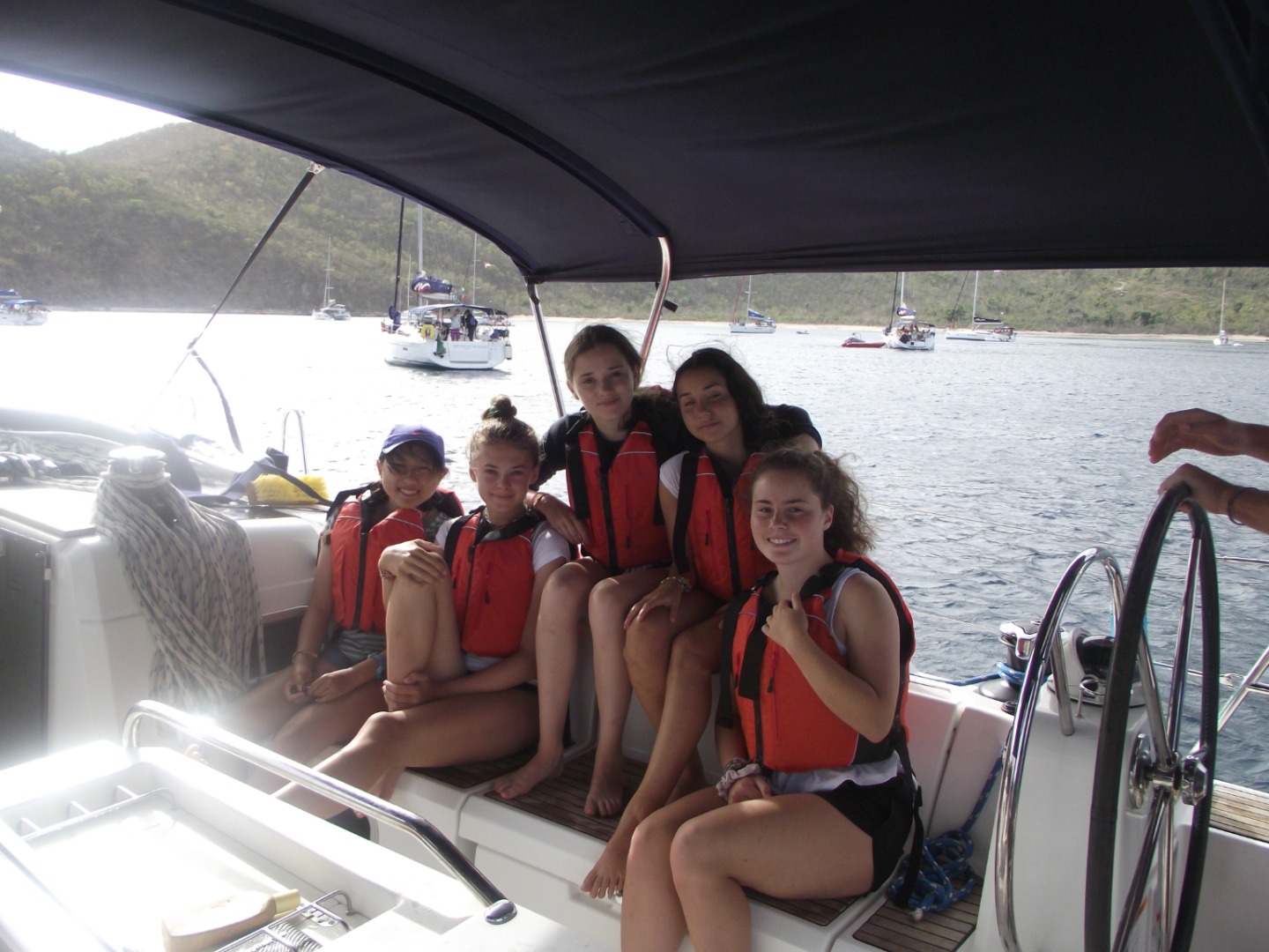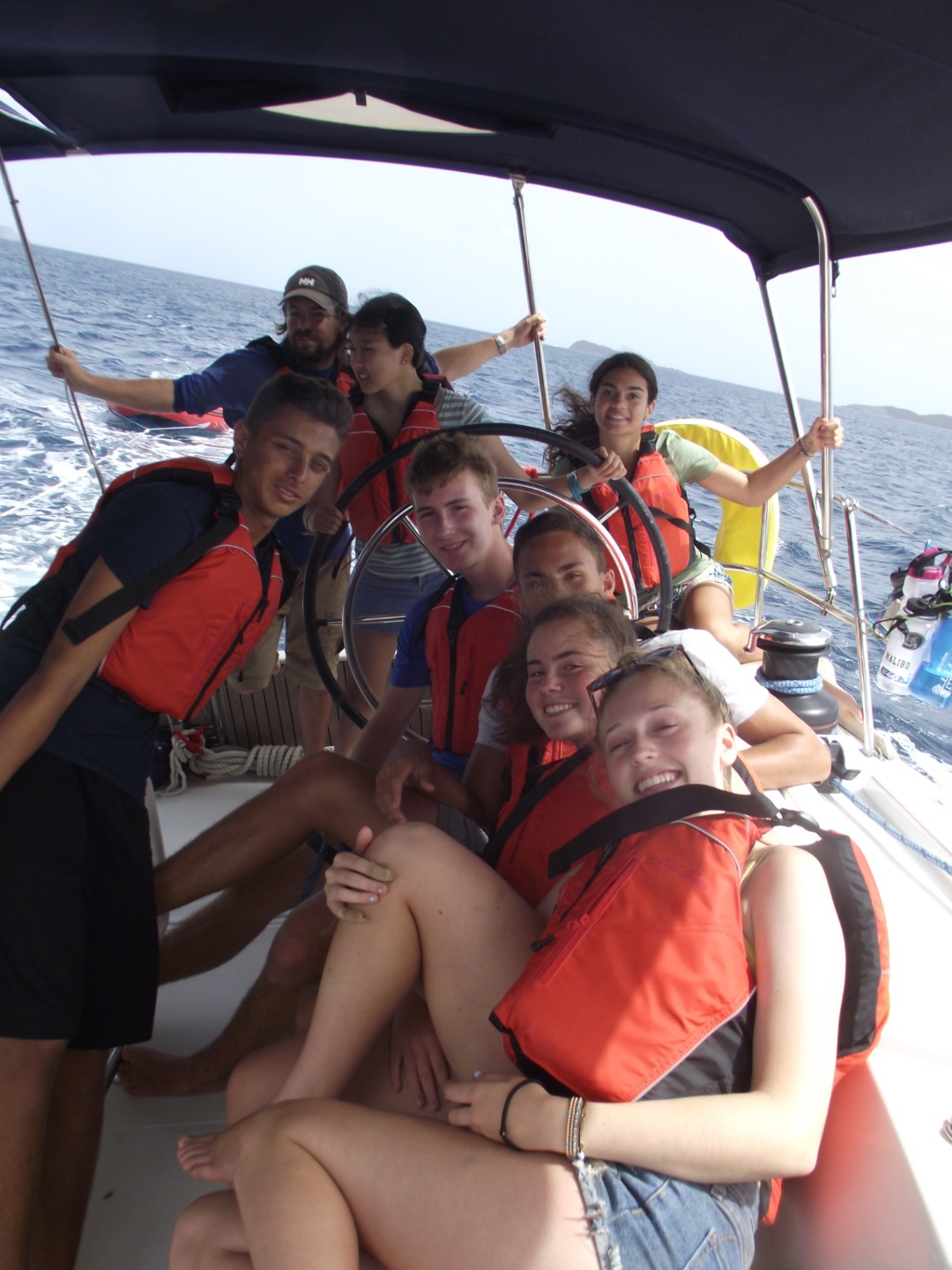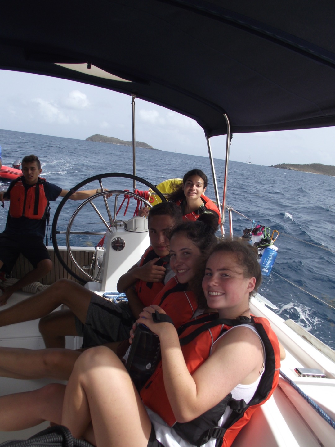 Today was not all about us. We began with sailing practice to work on sharpening our sailing skills. We had a nice start as I pulled out of the anchorage and cruised through the islands at 8 knots, which is a very fast sailboat speed! We stopped for fresh water, and after maneuvering through all the boats, we were on our way to a mooring on a different island. At this island, we met Tyrone. Tyrone lived on the island and helped out with the damage caused by the hurricane. He told us about the day of the hurricane and showed us our job. We were instructed to different areas of the island by boat group. We cleaned as much as we could in the amount of time given, and we did pretty well. The locals seemed happy and gave us some free soda. We finished the day with nice showers and a smile on our faces. Tomorrow should be great!
