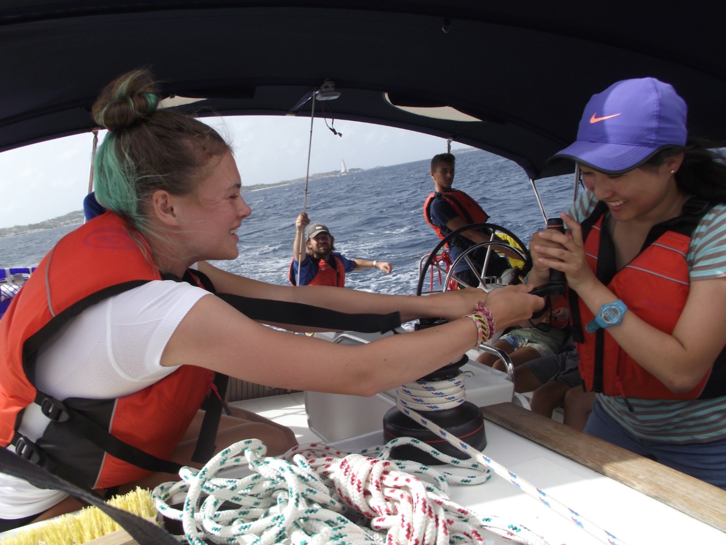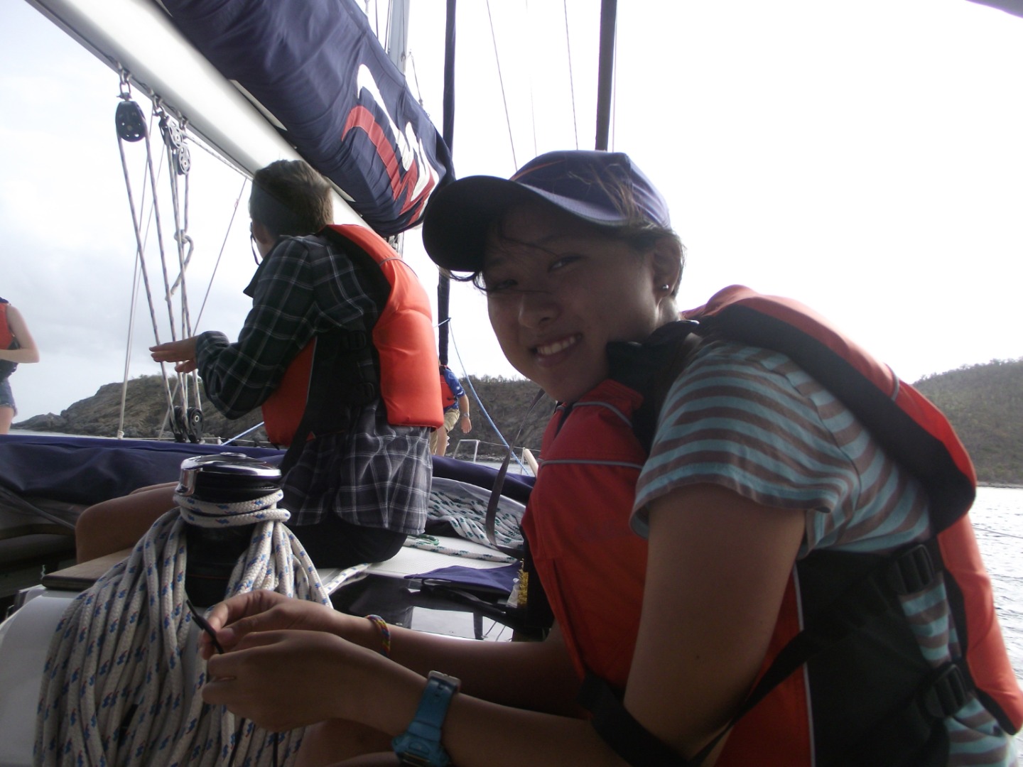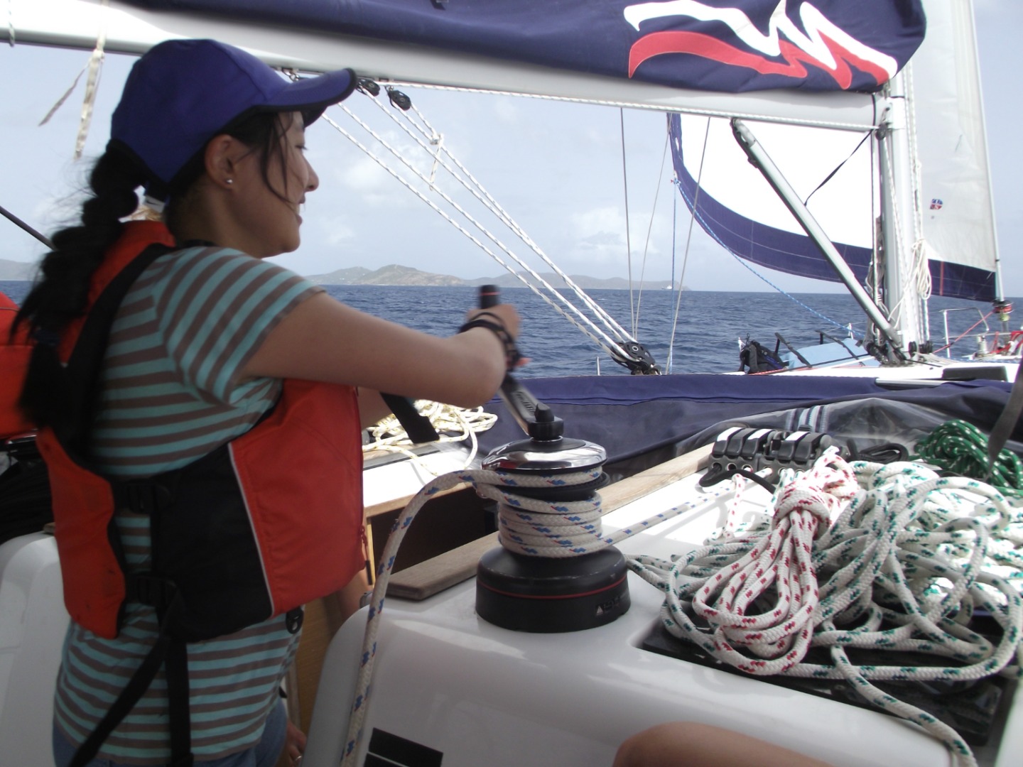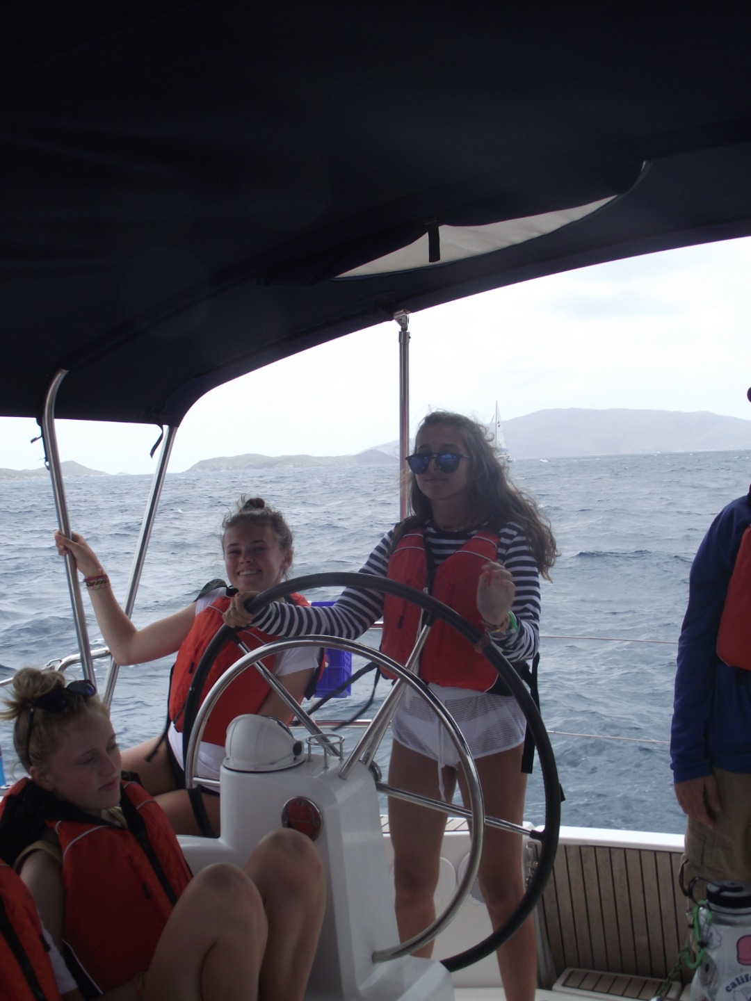 Today was not all about us. We began with sailing practice to work on sharpening our sailing skills. We had a nice start as I pulled out of the anchorage and cruised through the islands at 8 knots, which is a very fast sailboat speed! We stopped for fresh water, and after maneuvering through all the boats, we were on our way to a mooring on a different island. At this island, we met Tyrone. Tyrone lived on the island and helped out with the damage caused by the hurricane. He told us about the day of the hurricane and showed us our job. We were instructed to different areas of the island by boat group. We cleaned as much as we could in the amount of time given, and we did pretty well. The locals seemed happy and gave us some free soda. We finished the day with nice showers and a smile on our faces. Tomorrow should be great!