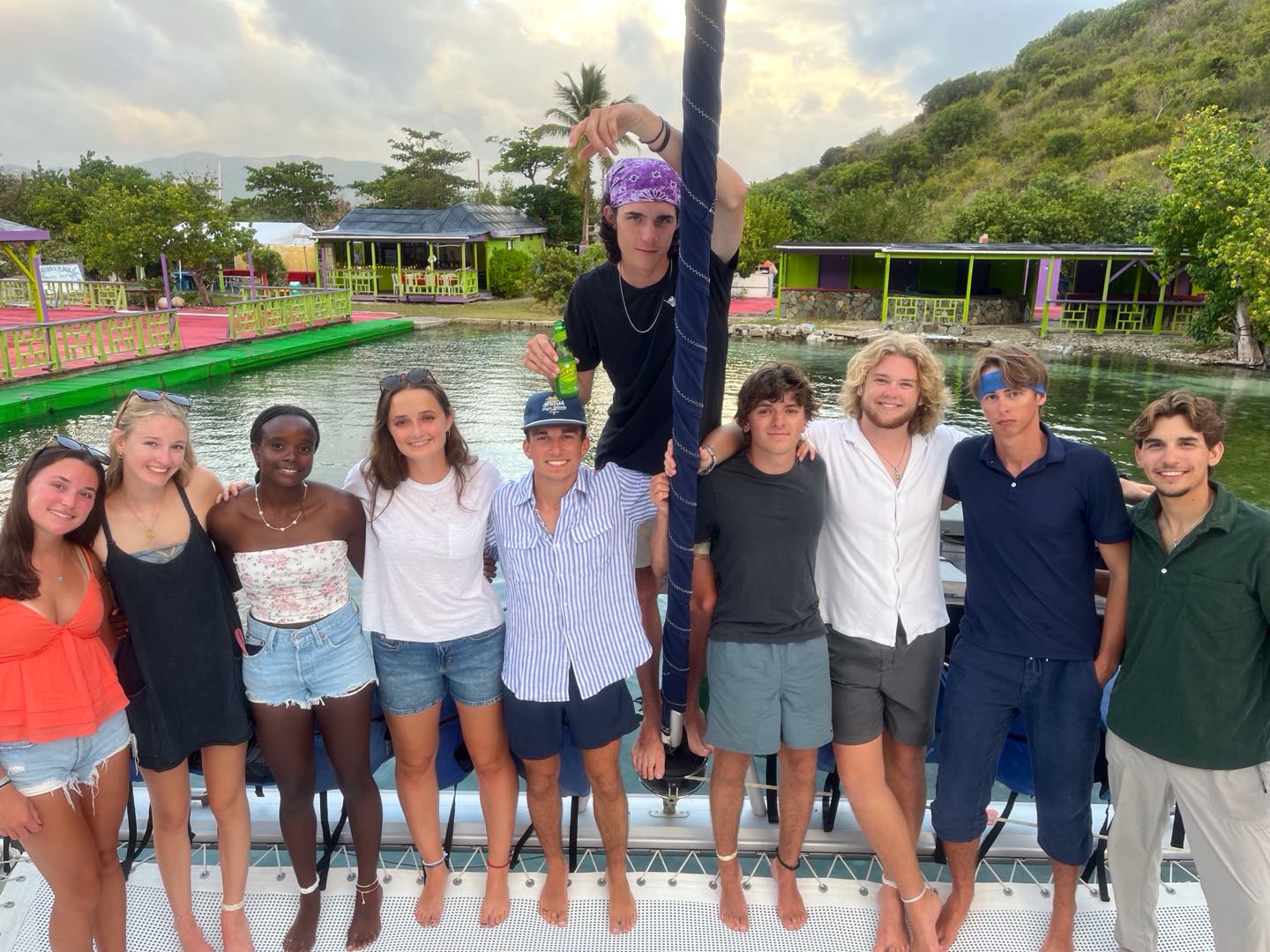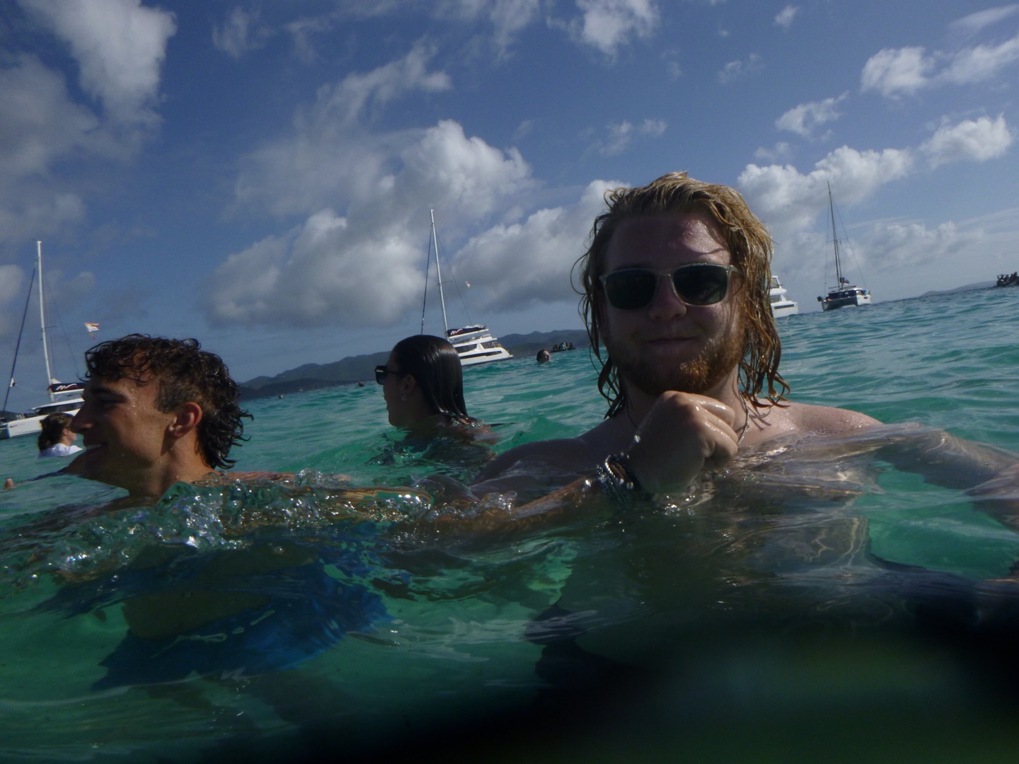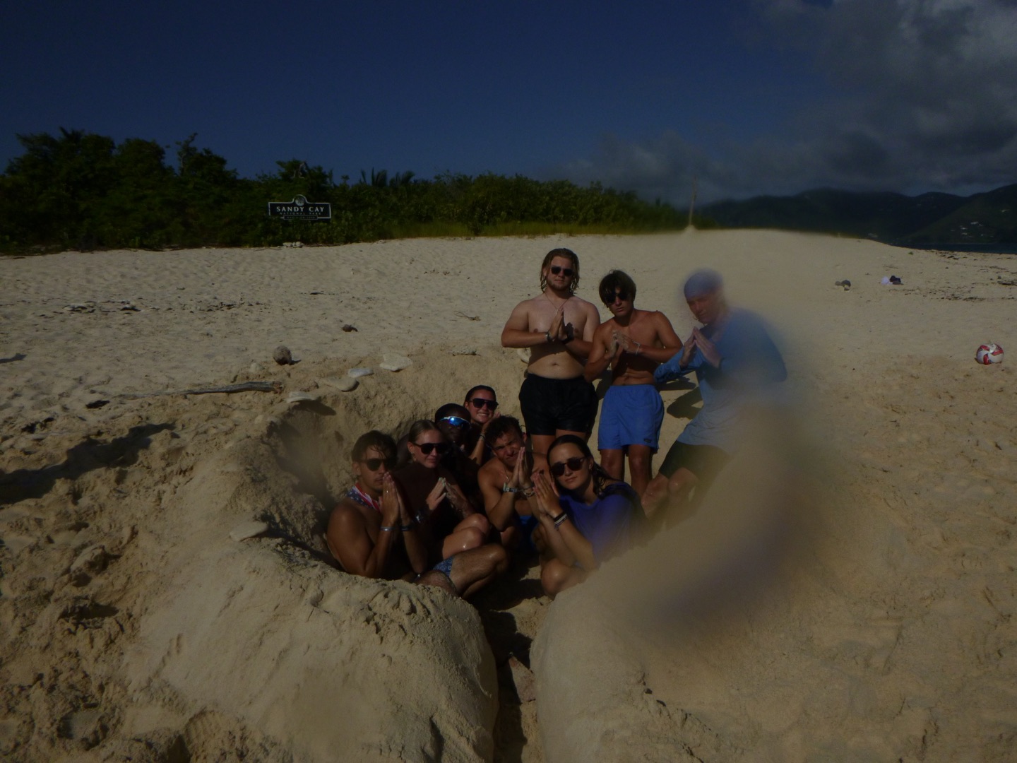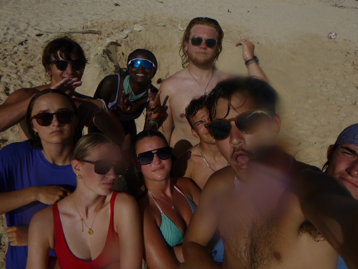 Today, Alex and the Vegas woke up at 6:00 am to get ready for the big hike. After a quick cereal breakfast, they were off to the docks. The divemasters got to have a later start to study for our big exam. We spent around 2 hours studying RDP tables and then headed to shore for an early lunch. Meanwhile, on the hike, Lily and Alli took lots of pictures of the scenery. They all enjoyed banana smoothies and fruit punch at the top of the hike and made their way back down. Back on the shore, the DMs finished up our meal and waited for the rest of our boat to return. When we all reunited, we scattered around the town to go grocery shopping, clothes shopping, and eat more food. Jaden and I enjoyed some coffee, a rare treat at AQ. In the early afternoon, we regrouped on the boat and made our way to Sandy Cay, where we would have our Sandcastles competition. We decided to make a big hole that represented queso dip. We all got in it, and we were the nachos. We didn’t end up winning, but I don’t think the judges saw the vision behind our work. Back to the boat➡️showers➡️back underway to Sydney’S to have a BBQ. Everyone bought great shirts and things, and we all enjoyed some great food. Supposedly, the DM test is tomorrow, so all the DMs are a bit stressed and are studying right now. I’m going to go study right no,w too.