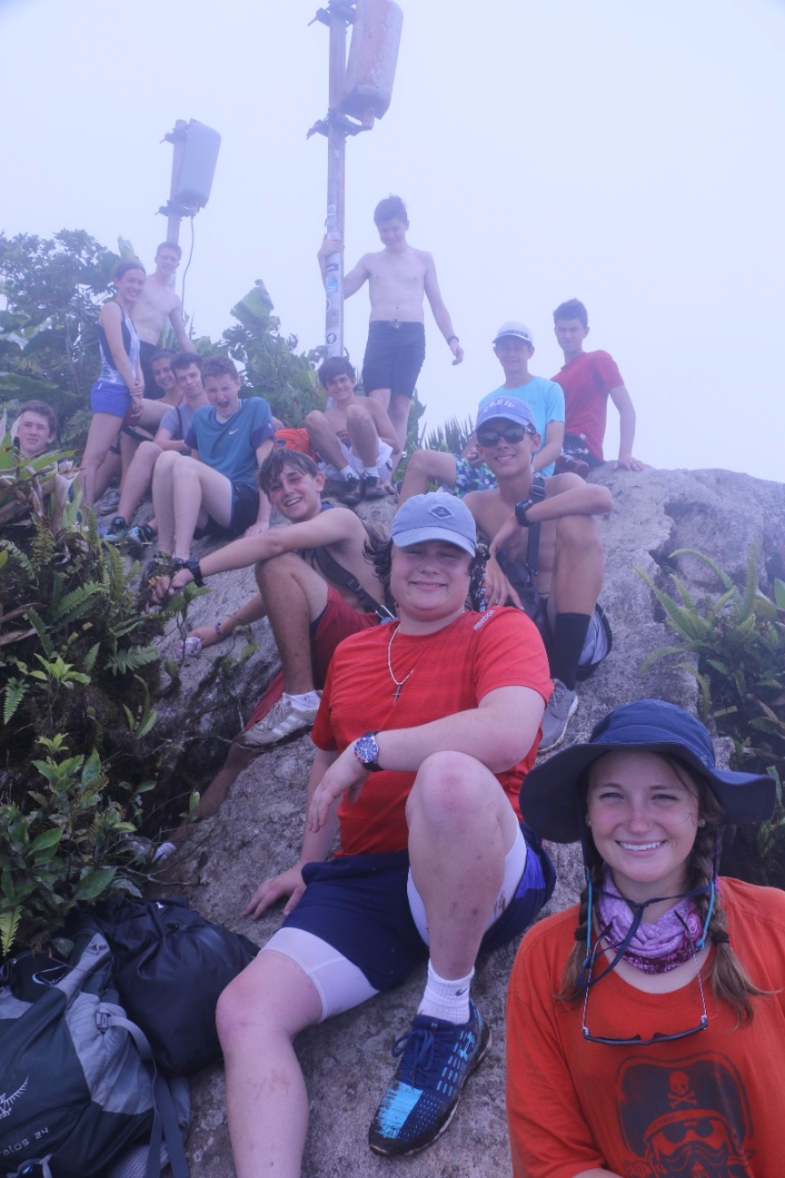 Today was an exciting day! We woke up to the magnificent view, with clouds hanging at the peak of the mountain. After a breakfast of fruit and cereal, we started to prepare for our hike of Mount Scenery, the highest point in the Netherlands. After an eventful wet-landing, with water up to our waists on Saba’s only beach, Wells Beach. We took a small hike to meet our taxi. After a short ride, we arrived at The Bottom, the capital of the island, where we continued to hike to the top of the mountain. After a short rest, we started hiking. At a split in the trail, some of the group decided to go straight to Windward town, while others, including me, decided to continue to the top. Once at the top, there wasn’t a very good view because we were in the clouds, but we could say that we were at the highest point in the Netherlands. On the way down we took a different path to Windward Town where we went shopping and glass making. At Joebean’s glass making shop we made beads and bought other cool glass items. After our decent back from Windward town and a quick dinghy ride back to the boat we had a delicious dinner of pasta and hotdogs followed by “brownookies” (brownies on top of chocolate chip cookies) for Elise’s birthday. Tonight we are having a movie night and watching Cool Runnings.