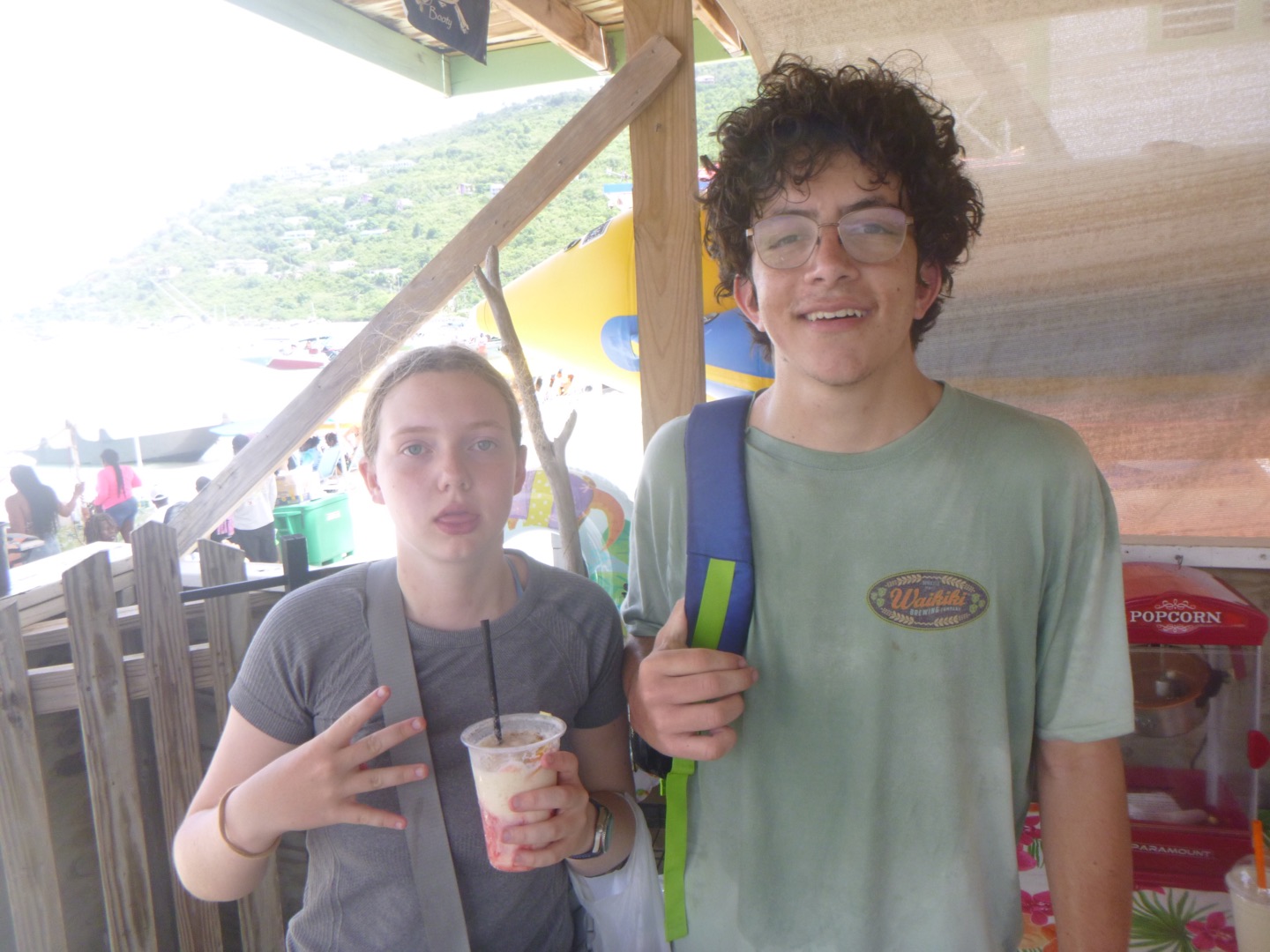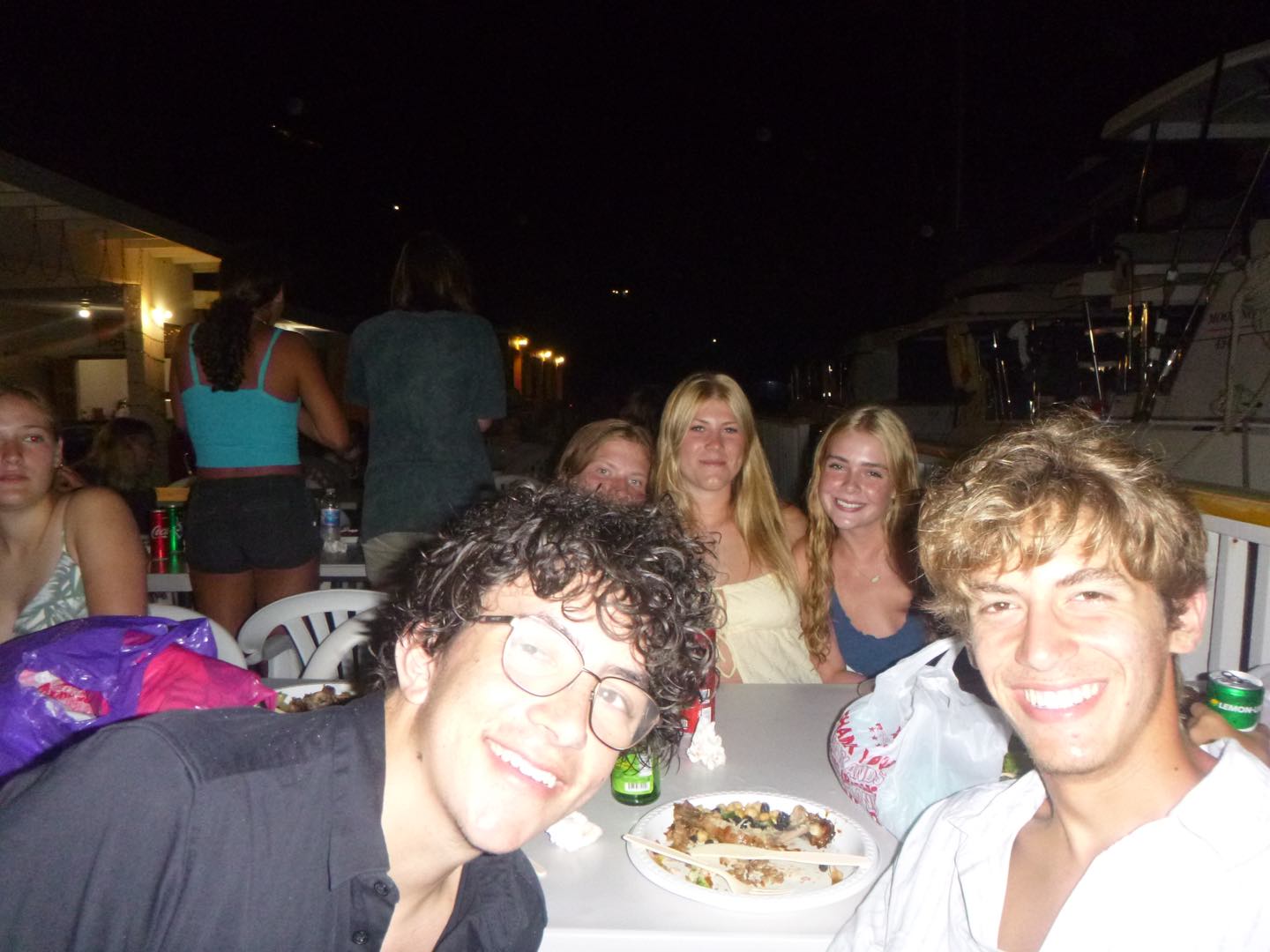 Today was tiring, but fun. We woke up far too early to loud music as per usual, and had a breakfast of cereal prepared by Breckyn and Arthur (the only meal they had to make the entire day) as we prepared to leave our mooring ball. We arrived at the island where we would be hiking at about 6 am. Maddie, Zoe, and Addy walked together, while Ellis walked with some friends from another boat. Some crazy people, including Arthur and Dillon, decided to run up the mountain we were hiking up; however, that sentiment didn’t survive long, because the first half mile of the hike was a brutal, almost 45-degree incline up a mountain. Once I got to the top, I took some photos and had two banana smoothies, and then I took a jungle hike to the very peak of the mountain, but I never made it up because I got lost halfway up and ended up in an area with a bunch of bats flying around, and turned back. After a lunch in town with Ellory and some people from other boats, we got back on the boat and sailed to a random desert island, where we had a sand castle competition. I also got a coconut from a tree and drank the water in it. After that, we went to the BBQ where we got some cool shirts. I met some new people, did some dancing, and I also saw Sloan, Kennedy, and Maya hanging out. The BBQ food was pretty good, and I enjoyed talking to the man himself, Big Mike, while I was eating. After the BBQ, we all went back to the boat to wind down.