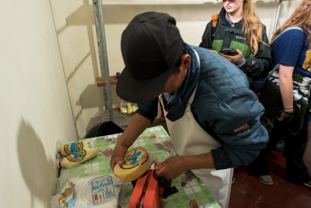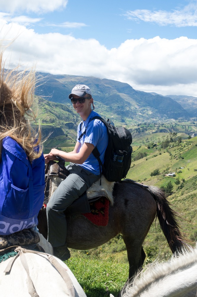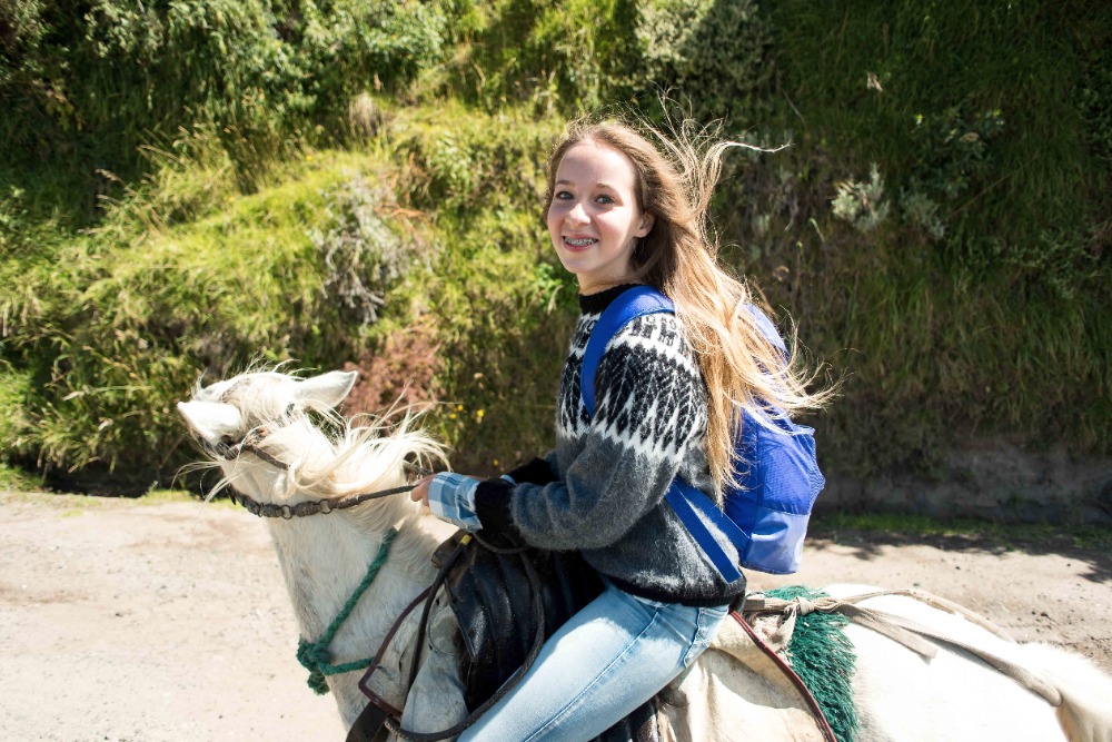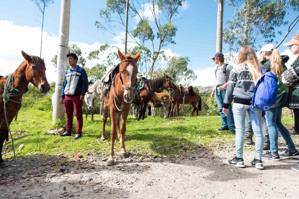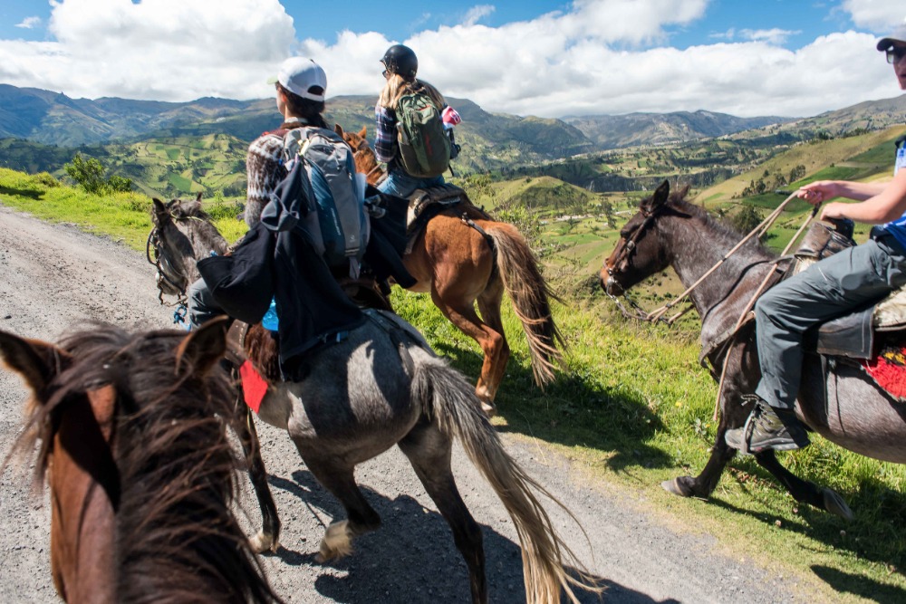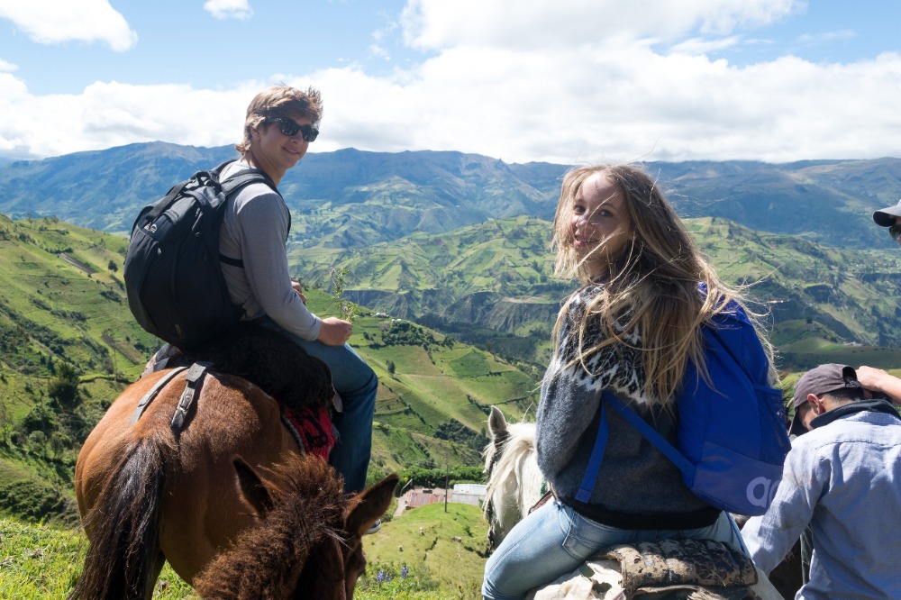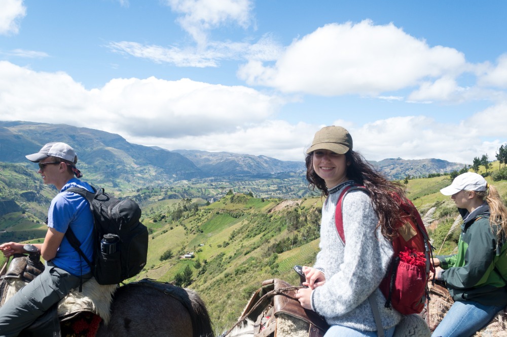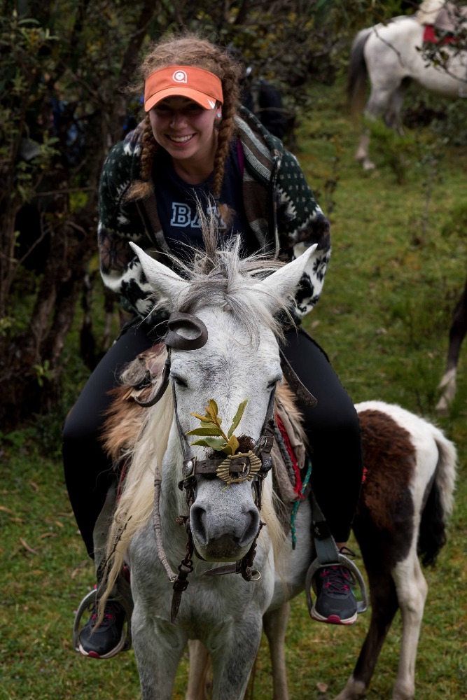 Being startled awake at 5:03AM by an unknown alarm clock can often ruin someone’s morning however, in our case, it was one of the highlights. Due to such an early rising some of us were able to see the clouds turn a beautiful shade of apricot orange. My bunk mates and I eventually went back to sleep, coddled in our alpaca blankets to try and shut out the frigid cold winds. We officially began getting ready at 7:15 and, as usual, I was hopelessly behind the rest of the group. However, these amazing kind people I am happy to call my friends decided to wait for me before bounding down to breakfast for a wonderfully prepared meal of pancakes and blackberry juice. Full of delicious food, we made our way down the insanely steep driveway to find our horses and guides, who were already waiting patiently for us. After hopping on our diversely colored horses we rode down the village road until we reached a rock strewn path that led us into the Andes. Once immersed into the mountains that were rich in lush farmland, we walked, trotted and cantered our way through twisting turns to finally reach a quaint cheese factory. The owner of the factory explained, through Devin’s translations, how he buys fresh milk from local farm owners, pasteurizes it, and then turns it into different types of mouthwatering cheeses. The leftover excretions that were squeezed out of the cheese by slabs of cement are given back to the farm owners and fed to the livestock due to the fact that it is not edible for human consumption. We were offered two different types of cheeses: fresh mozzarella and aged Andino, plus a creamy, pineapple flavored milky popsicle that would practically melt in your mouth if it were not for such cold, but refreshing, weather. Breezing through the mountains, it was a quick journey to the spot where we would enjoy our lunch of sandwiches, popcorn, apples and oatmeal cookies. Exhausted by our lively horseback ride, most of us took a group nap whilst a few others took a ten minute hike along a cloud forest path rich with outstanding views and a streaming waterfall. On our way back to The Black Sheep Inn, Skylar, Michael, and I stopped at the local library to help sort and box up the books that we had all recently organized. The library is closing but there is hope, however, that Andres, the founder of The Black Sheep Inn, will find a good home for these childhood books and young adult novels. Coming back from our spontaneous service project, Sky, Michael, Isabelle, and I leaped at the chance to go on the hotel’s zip line. We flew through the sky just as the jaw-dropping sunset was arriving and waved at the camera as Devin took fabulous videos and Sky took mesmerizing photos. Ending the day with home cooked curry and vegetable soup along with an ember spitting bonfire, was a great way to say, “Welcome to your home away from home.”