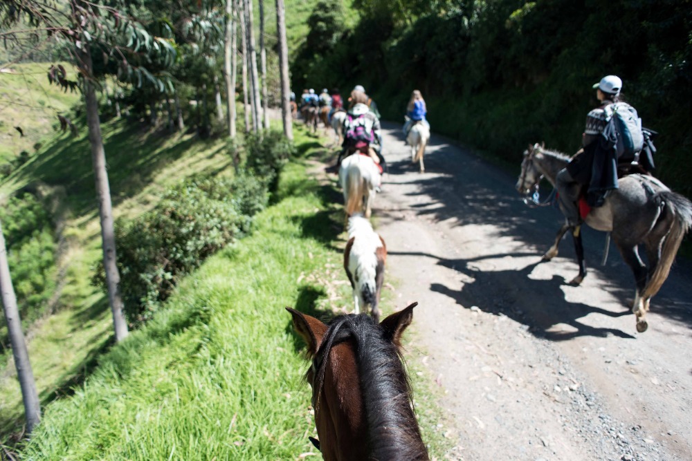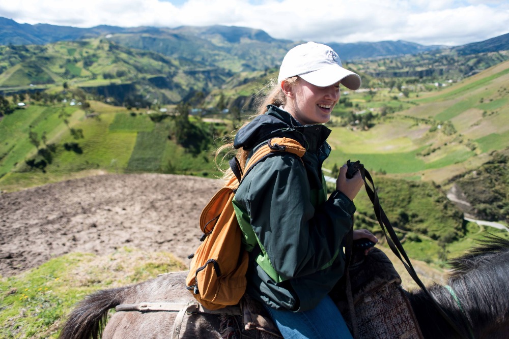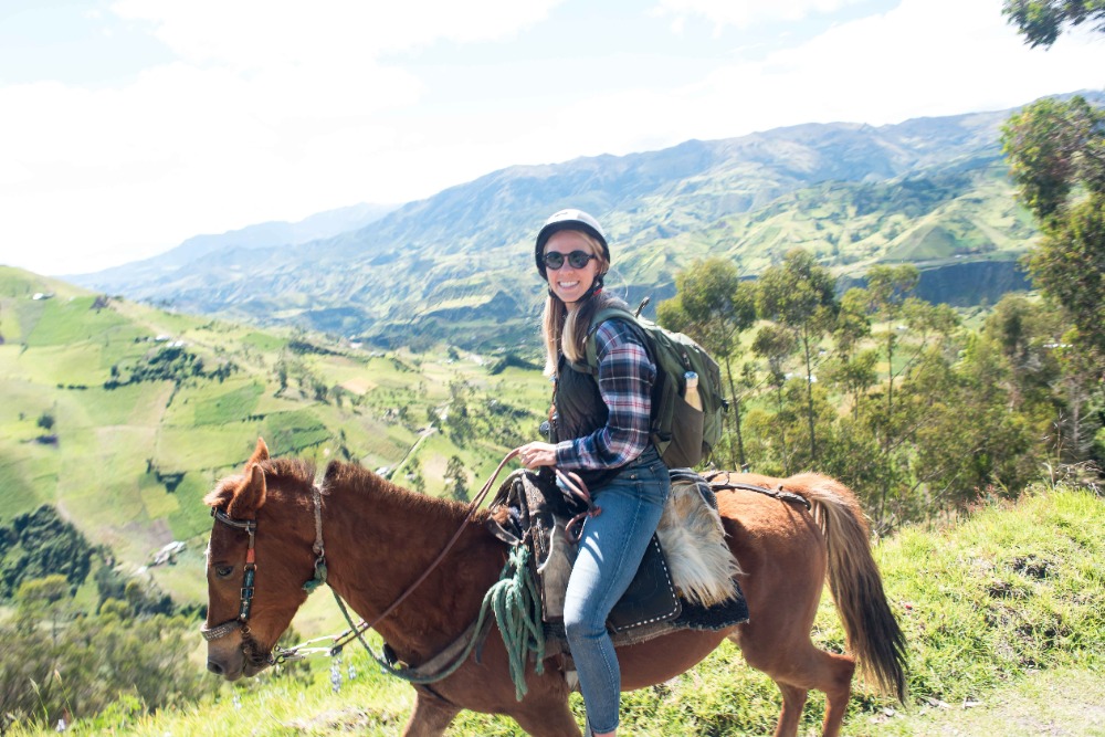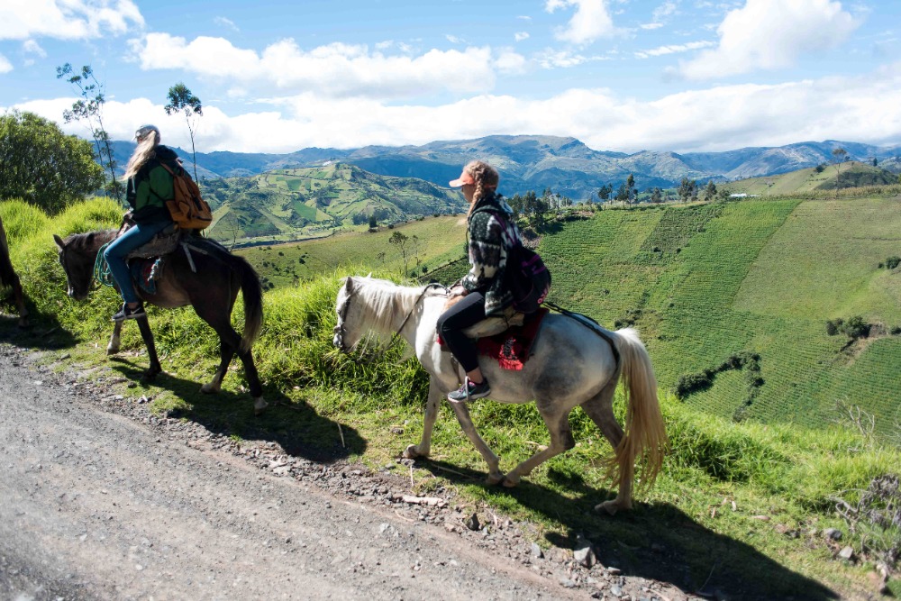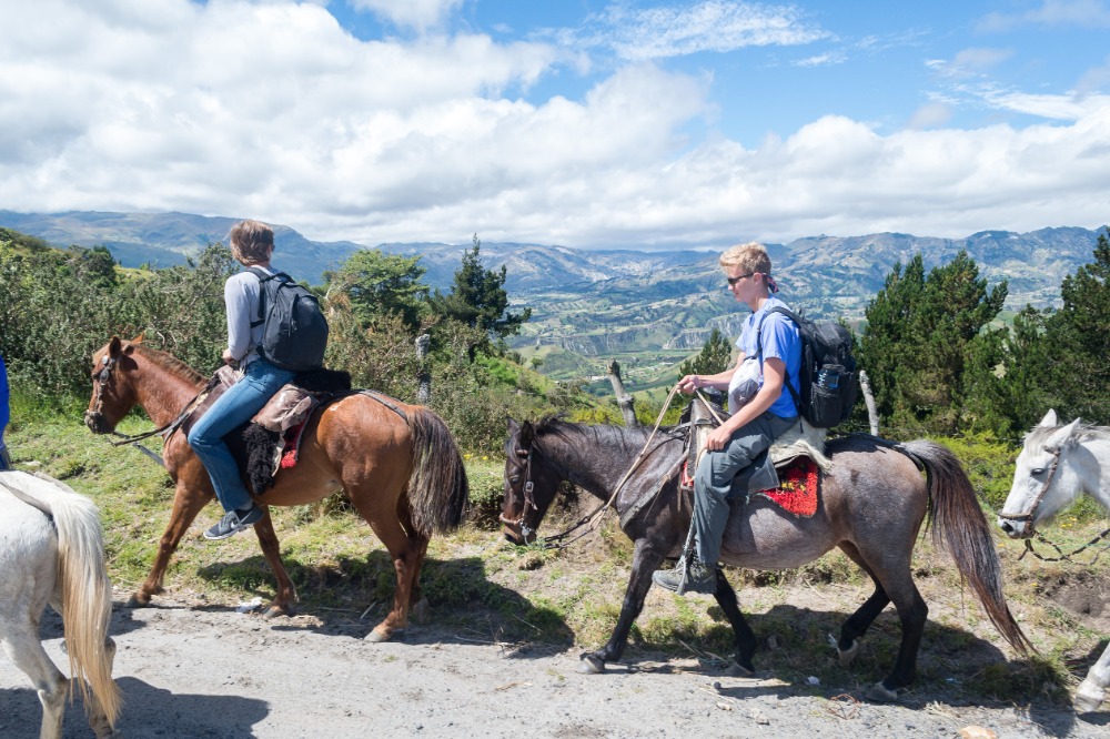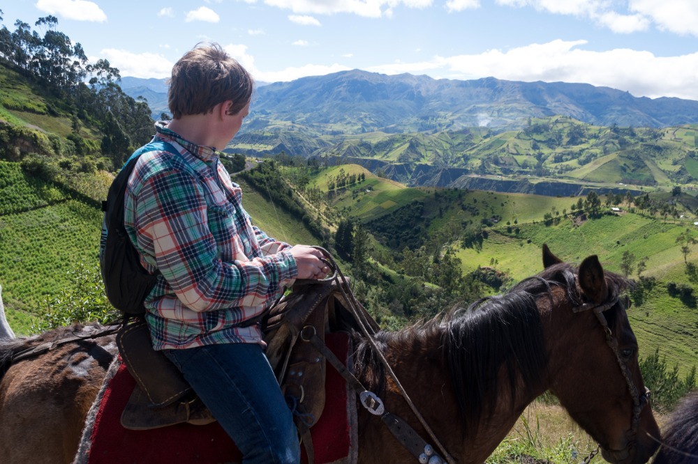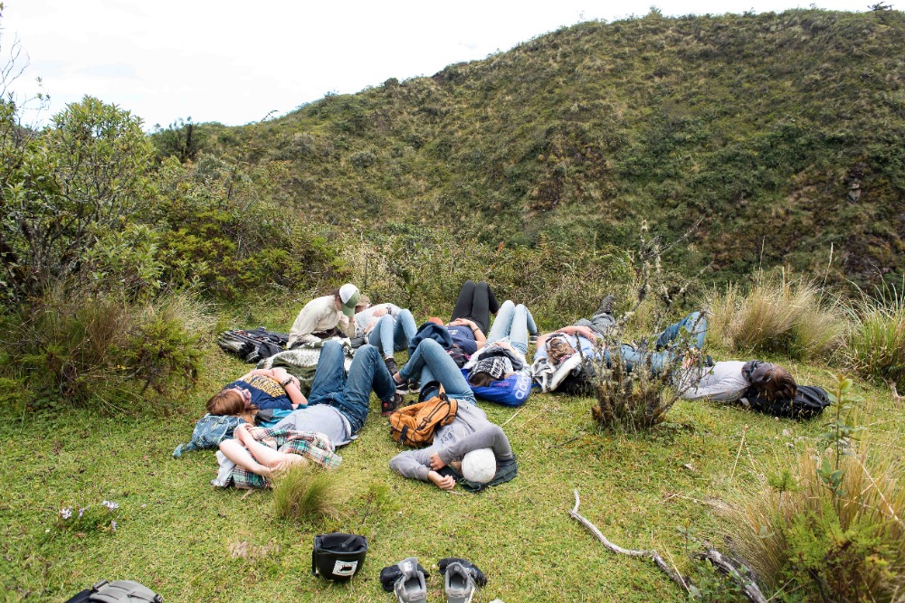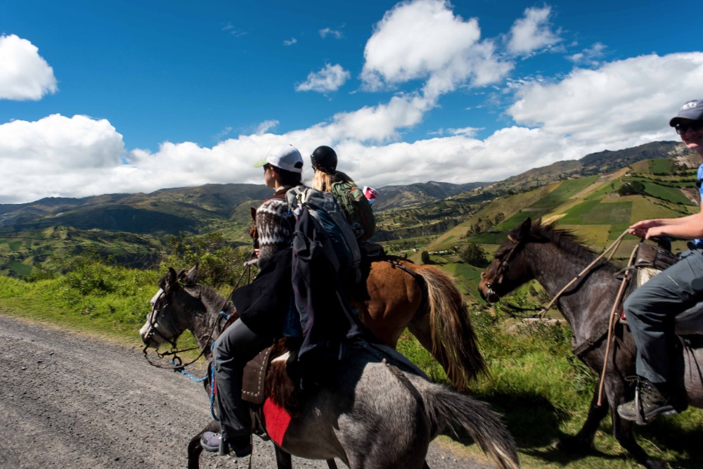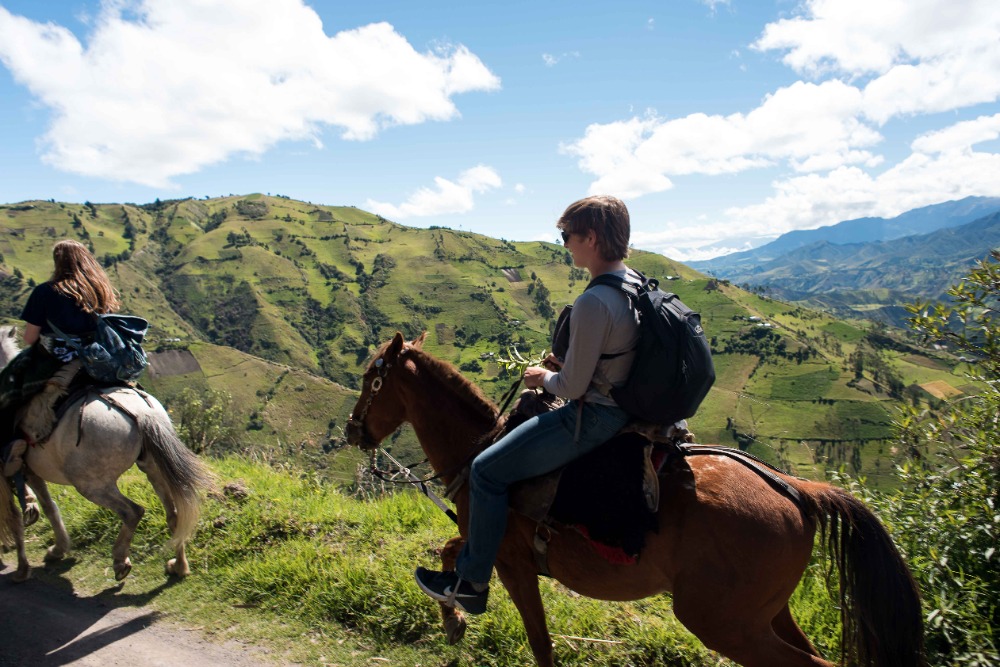 Being startled awake at 5:03AM by an unknown alarm clock can often ruin someone’s morning however, in our case, it was one of the highlights. Due to such an early rising some of us were able to see the clouds turn a beautiful shade of apricot orange. My bunk mates and I eventually went back to sleep, coddled in our alpaca blankets to try and shut out the frigid cold winds. We officially began getting ready at 7:15 and, as usual, I was hopelessly behind the rest of the group. However, these amazing kind people I am happy to call my friends decided to wait for me before bounding down to breakfast for a wonderfully prepared meal of pancakes and blackberry juice. Full of delicious food, we made our way down the insanely steep driveway to find our horses and guides, who were already waiting patiently for us. After hopping on our diversely colored horses we rode down the village road until we reached a rock strewn path that led us into the Andes. Once immersed into the mountains that were rich in lush farmland, we walked, trotted and cantered our way through twisting turns to finally reach a quaint cheese factory. The owner of the factory explained, through Devin’s translations, how he buys fresh milk from local farm owners, pasteurizes it, and then turns it into different types of mouthwatering cheeses. The leftover excretions that were squeezed out of the cheese by slabs of cement are given back to the farm owners and fed to the livestock due to the fact that it is not edible for human consumption. We were offered two different types of cheeses: fresh mozzarella and aged Andino, plus a creamy, pineapple flavored milky popsicle that would practically melt in your mouth if it were not for such cold, but refreshing, weather. Breezing through the mountains, it was a quick journey to the spot where we would enjoy our lunch of sandwiches, popcorn, apples and oatmeal cookies. Exhausted by our lively horseback ride, most of us took a group nap whilst a few others took a ten minute hike along a cloud forest path rich with outstanding views and a streaming waterfall. On our way back to The Black Sheep Inn, Skylar, Michael, and I stopped at the local library to help sort and box up the books that we had all recently organized. The library is closing but there is hope, however, that Andres, the founder of The Black Sheep Inn, will find a good home for these childhood books and young adult novels. Coming back from our spontaneous service project, Sky, Michael, Isabelle, and I leaped at the chance to go on the hotel’s zip line. We flew through the sky just as the jaw-dropping sunset was arriving and waved at the camera as Devin took fabulous videos and Sky took mesmerizing photos. Ending the day with home cooked curry and vegetable soup along with an ember spitting bonfire, was a great way to say, “Welcome to your home away from home.”
