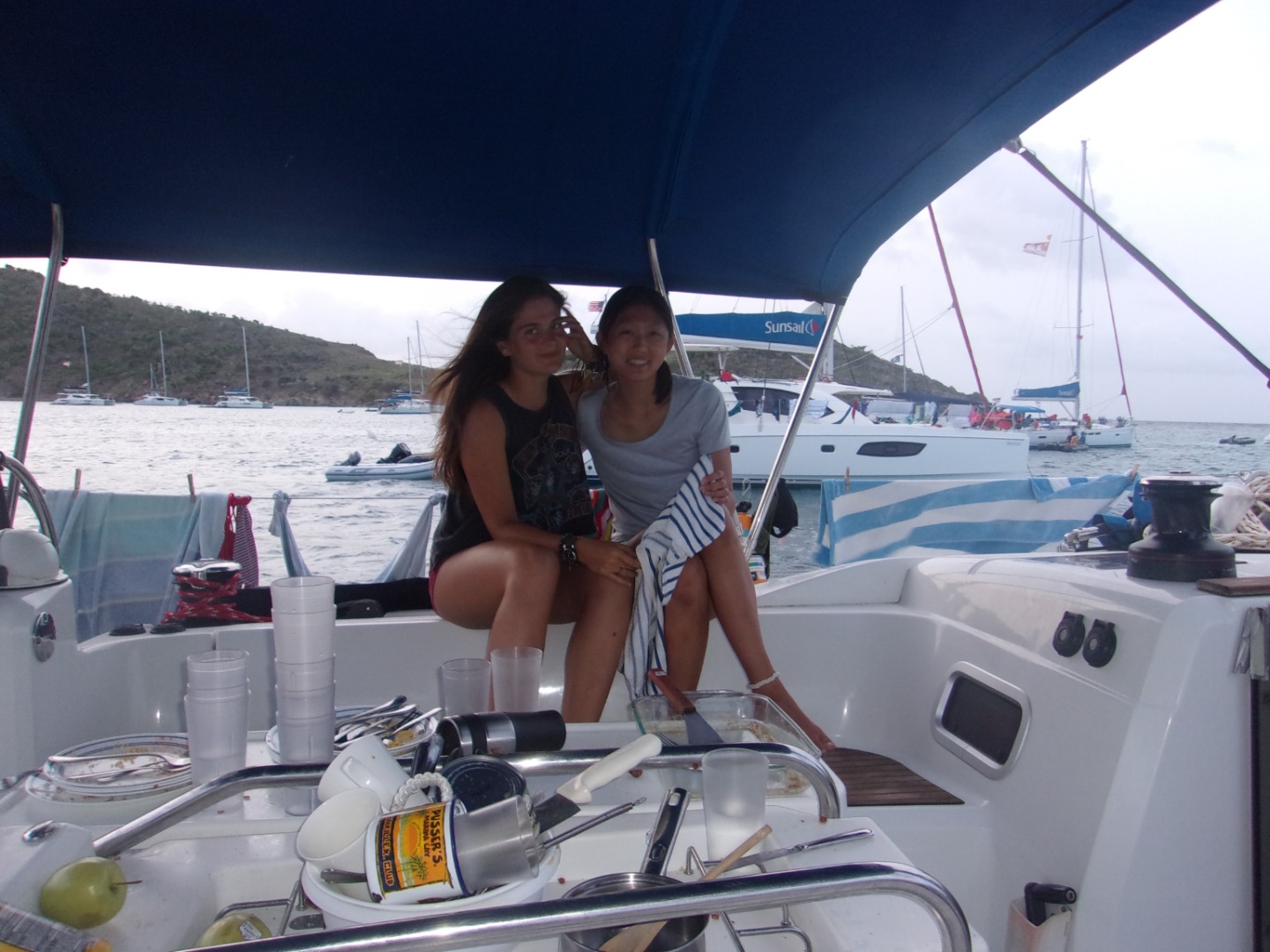 Today was a very eventful and exciting day for everyone. We started the day off with some French toast for breakfast and began sailing at 9. The advanced sailors spent their day sailing on Ocean Star with some sailors from other boats as well and had an amazing time on a new boat. The beginner sailors stayed on their boat and did their sail practicals and sailing circles, getting lots of practice in and learning more. Some of us got to spend some time exploring the beach of Sandy Spit, where we’re anchored for the night. We set up a boom swing and swam for a while before washing up and enjoying our meal of rice and beans and cornbread. Now we are cleaning up, jamming to music before we head to a Lifeworks Forum.
