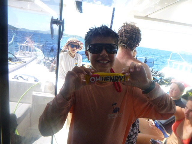 The drive itself consisted of lots of fishy crackers and crumbs ( Sorry for the mess!) We quickly arrived and put the anchor down. While leaning against the life line I gracefully fell into the direction of the water, as was headed straight for the water I used my very impressive strength to hold onto the line and successfully saved myself!! Moving on, the second dive was as beautiful as it can get! Large boulders overtook the sea with gorgeousness. The marine life was stunning and oh-so vibrant. We once again hopped onto the boat. With our excitement high, Ayden decided to surprise us with his bracelet-making skills (NOT). It took us half an hour to learn how to cross a string over our legs. That isn’t the worst part, though.