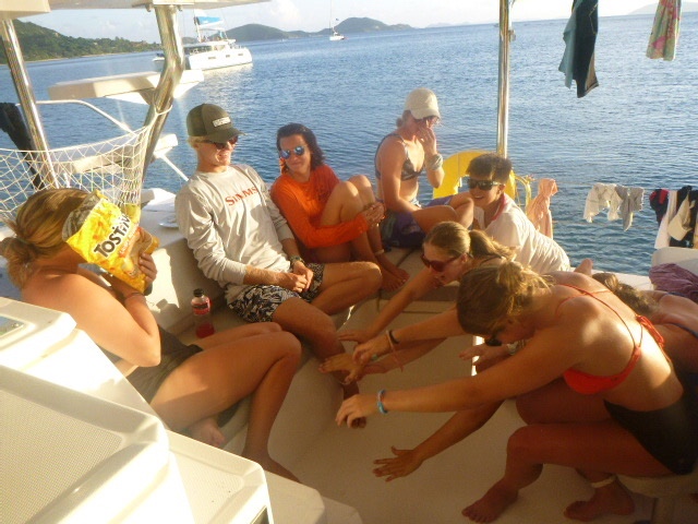 That’s right! It took us two whole hours to learn how to make a not-so-simple bracelet. We had given up when, all of a sudden, Skylar walked out of the dinghy with such confidence that not even a buffalo could mimic. She starts off by insulting Ayden and Henry and calling him an incompetent proctor. She then taught us how to PROPERLY make a Turque’s Head Bracelet. This isn’t just any bracelet. All of the ActionQuest staff has one, and once you have one, you are officially welcomed into the Action Quest Team! Youppie! Luckily for us, we quickly caught on to Skylar’s fast-paced bracelet technique.