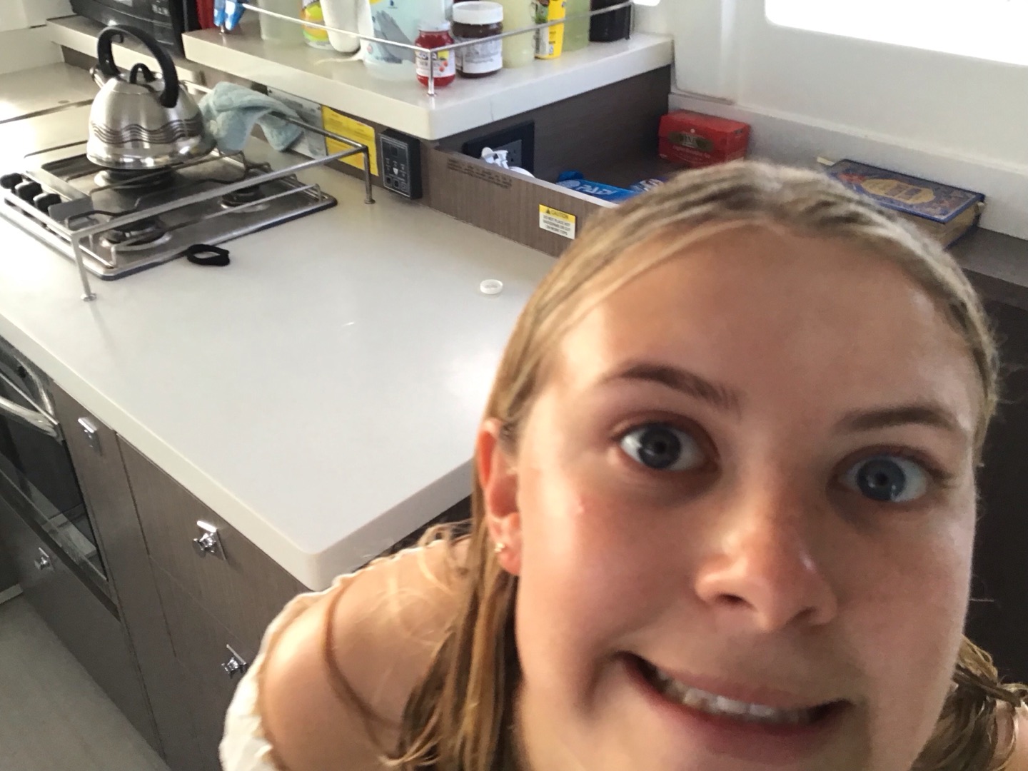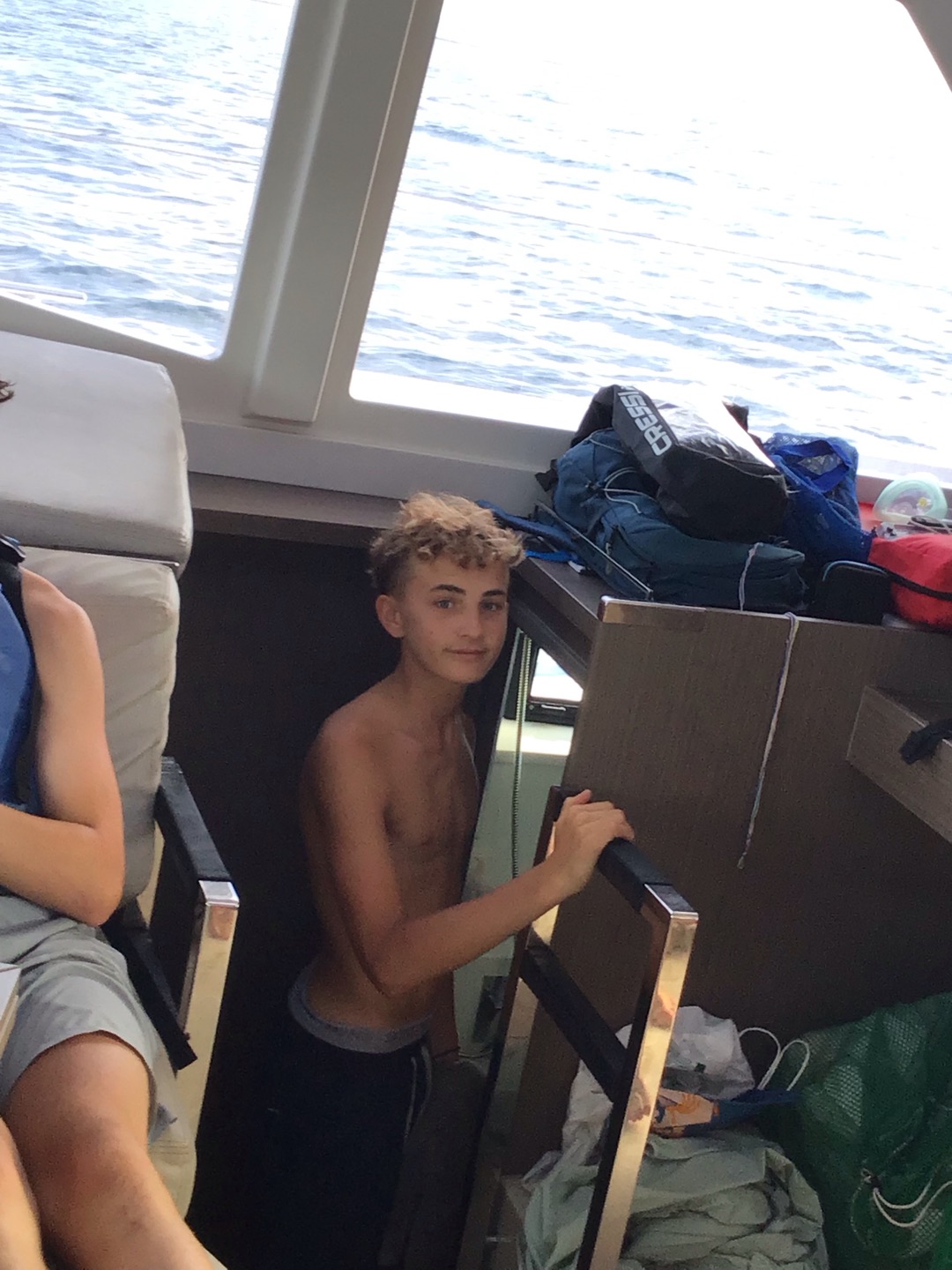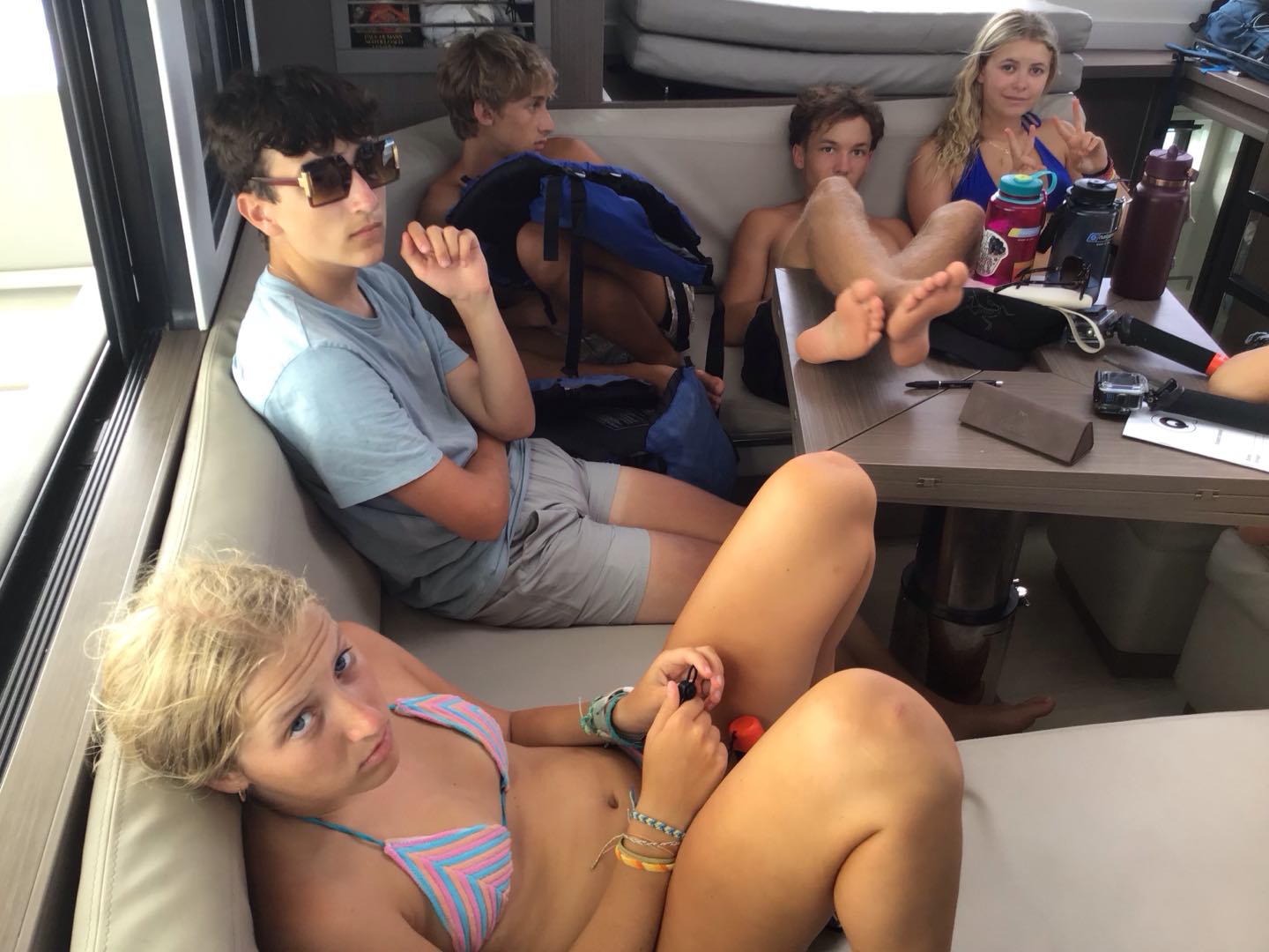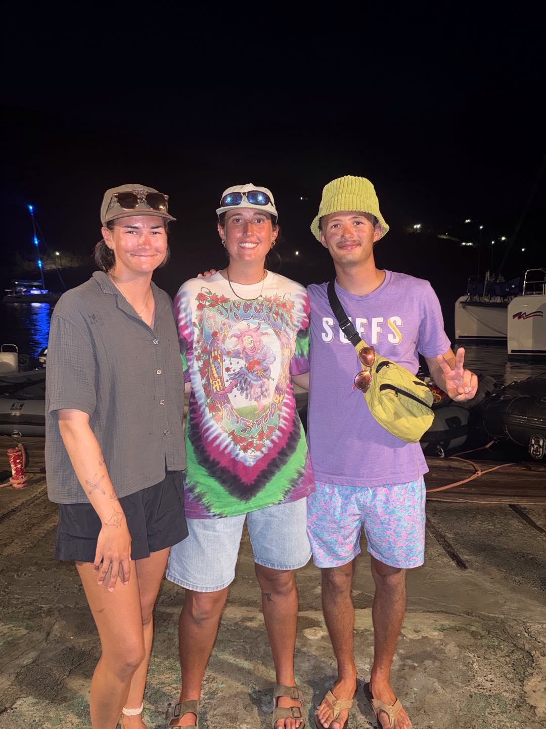This morning, we woke up bright and early at 6 to begin our hike to the top of Sage Mountain. We fueled up with the best pre-hike food cereal – not. We headed over to the dock for our informative pre-hike talk from Mike before we set off. The hike starts off with an incredibly steep uphill hike that had our calves burning, which Declan did amazingly, powering through. We reached the top, which sadly didn’t have a view, but we rewarded ourselves with some delicious banana smoothies before hiking right back down for lunch while talking with our families for the first time in a while, which was really nice. Matthew, Dawson, and some friends from Oryx decided to run down the hills for maximum efficiency while I tried a new technique of walking backwards. After devouring our luxurious non-boat food and restocking on some snacks and souvenirs, we returned to Why Knot. We moved the boat over to Sandy Cay for our sand castle competition. Madi and I, as the resident artists on the boat, planned our design, which consisted of a massive octopus in a life ring, which was a team effort. Dawson added some unique eyes, Ruby added rocks to add some design to the life ring, Roman wrote Why Knot in seaweed, everyone else helped create the octopus, and Scarlett gave the judges a very convincing spiel, but apparently not convincing enough because we took 2nd to Hope’s turtles. Then we got ready for the barbecue at Sydney’s, and our staff performed a swap where London was dressed as Player, Player was Rachel, Rachel was dressed as London—I even drew London’s tattoos on her. At the barbecue, most of us, including Lucy and Evan, bought really cool t-shirts. Humphrey even got his hair braided. After socializing for a while, we went back to our boat, and now we are currently sitting outside, and Redden is telling us some stories before we head off to bed.