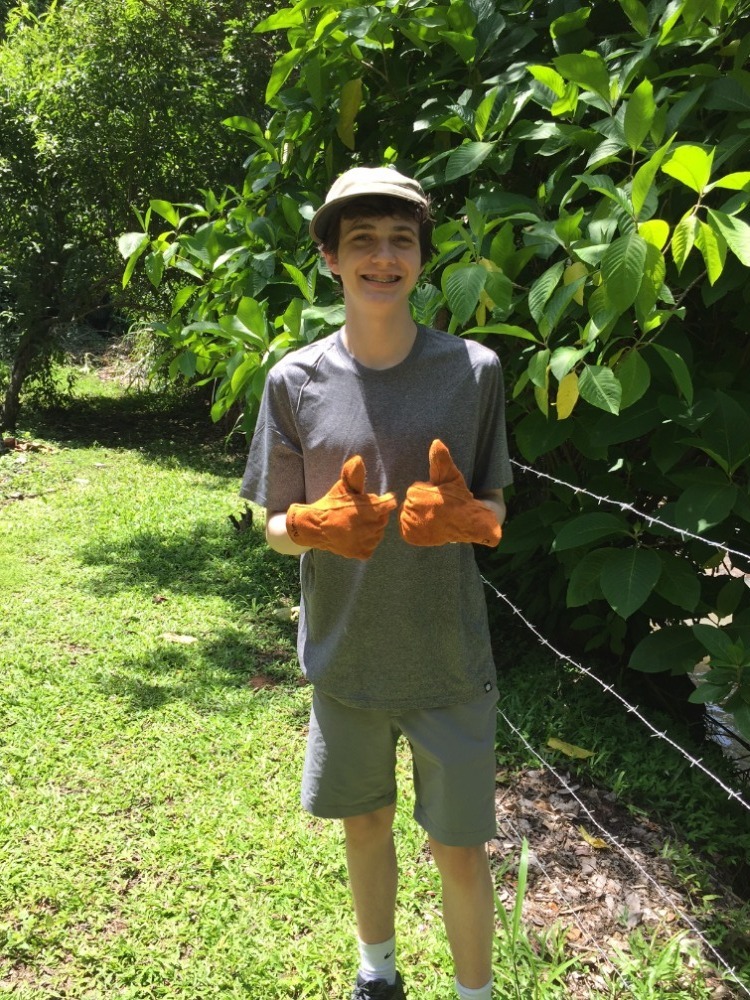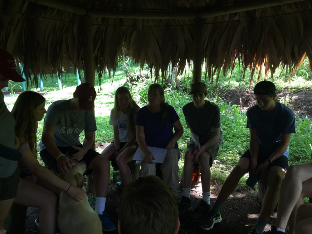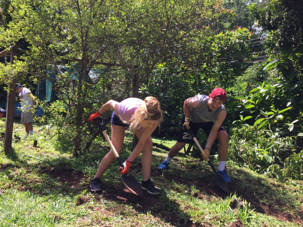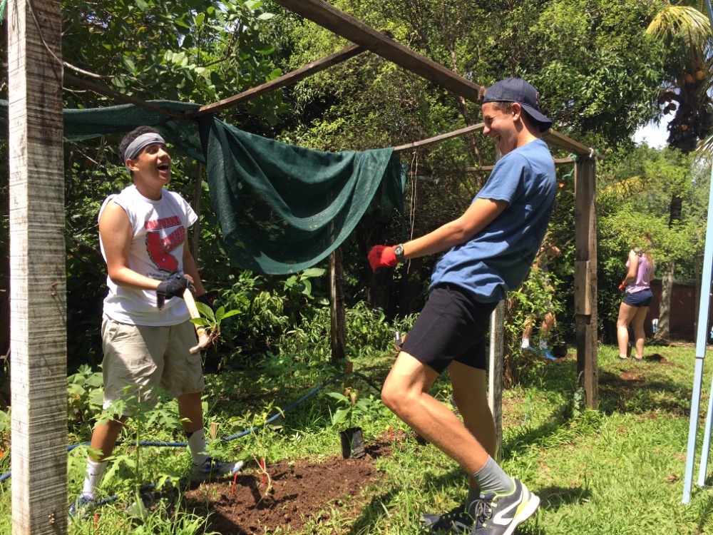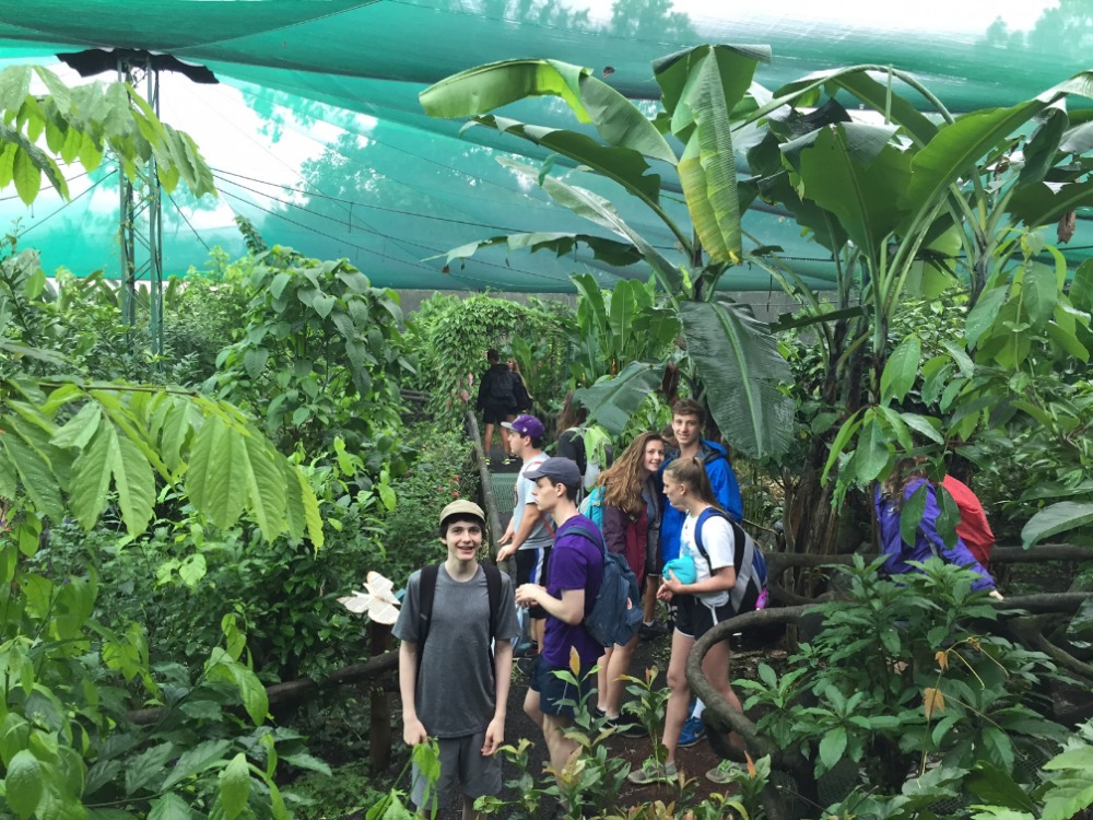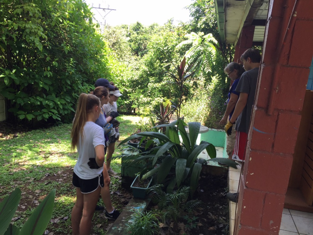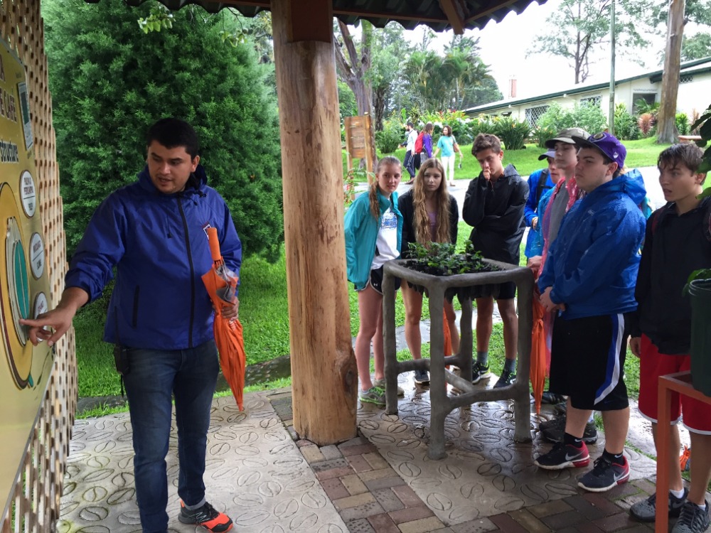 Today we did not go to La Carpio, we went to Gail’s house instead. Her home is owned by the foundation, it is called La Finca which means The Ranch, intended to be a get away for the people of La Carpio to come and enjoy the open space, nature, and pool. We helped her out in the garden by weeding, mixing compost in the soil, and planting vegetables. The garden is utilized by the people of La Carpio, giving them a source for agricultural education and fresh produce. In her backyard there is a river that is full of water and when you look in the trees you can see Jesus lizards and watch them run across the water. Also when you look on the ground there are so many life forms around ranging in size and color. After a while of working we took a break and were able to try some of the freshly beaked bread from the local bakeries. The bread was amazing, some with strawberry and pineapple filling. We went back to work after our break and worked up until it was time for lunch. After lunch we left and drove to go on a coffee plantation tour. The drive was so beautiful, the trees and mountains were so green and lush. On the drive up it started raining hard, followed by lightning and thunder. On the coffee tour we learned how the get the coffee beans out of the fruit and how to tell if it is a high or low quality coffee bean. When the tour was done we went to the butterfly garden and the butterflys were all different colors. The butterfly’s varied in size and color. Some of us were able to get the butterflys to land on our hands and it was amazing to see. When we were done at the garden we got back on the bus and headed back home. We were able to have our phones for a little and then it was dinner time and off to bed. That was all for today, we will give you another update tomorrow!