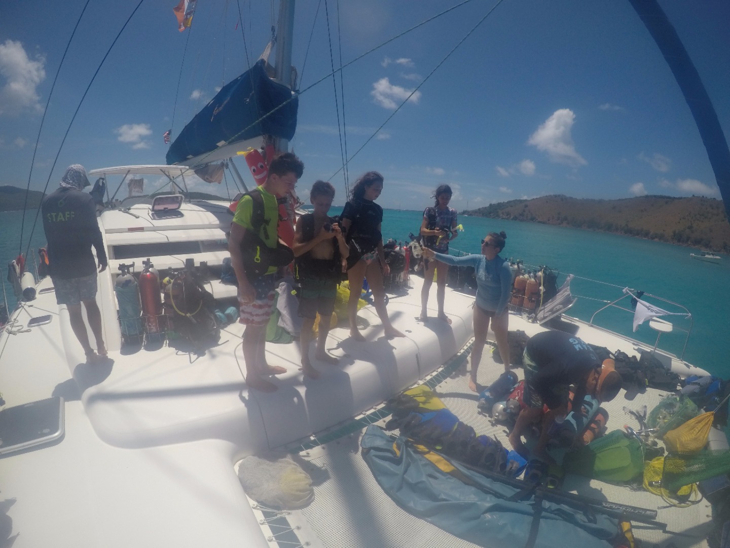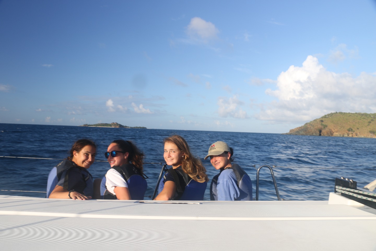 We woke up to the start of a jam-packed day. Bright and early we woke, ate breakfast and went snorkeling/scuba diving. The snorkeling was breathtaking, seeing many fish, such as over 10 barracudas. Scuba divers dove around cannon indents while seeing many fish. After some exciting dives, Bella Vita went to sail Pico boats. With just 2 people per boat, everyone paired up and had quite an adventure. Many capsized. Later, everyone was hungry and ready for lunch. After a quick bite, it was time to sail on the Rhodes. Two hours of exciting sailing later, we all prepared for the short but sweet sail ahead. Once arriving on shore we refilled the water and had 45 minutes to call home and run to the grocery store. We then hopped back on the boat and had a fantastic sail to Mountain Point. Dancing, sailing and laughing pretty much sums up our ride. We had a little trouble anchoring, but we were able to watch the beautiful sunset. After 4 unsuccessful attempts, we finally got anchored. The long awaited Mexican dinner was beyond tasty, finishing nearly all of it. Finished off the day with a scuba chat
