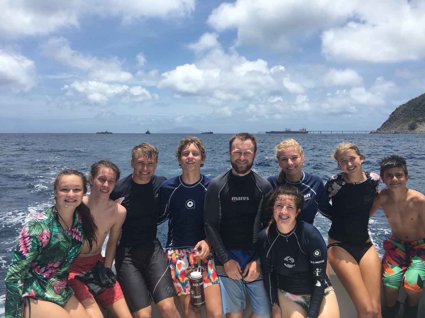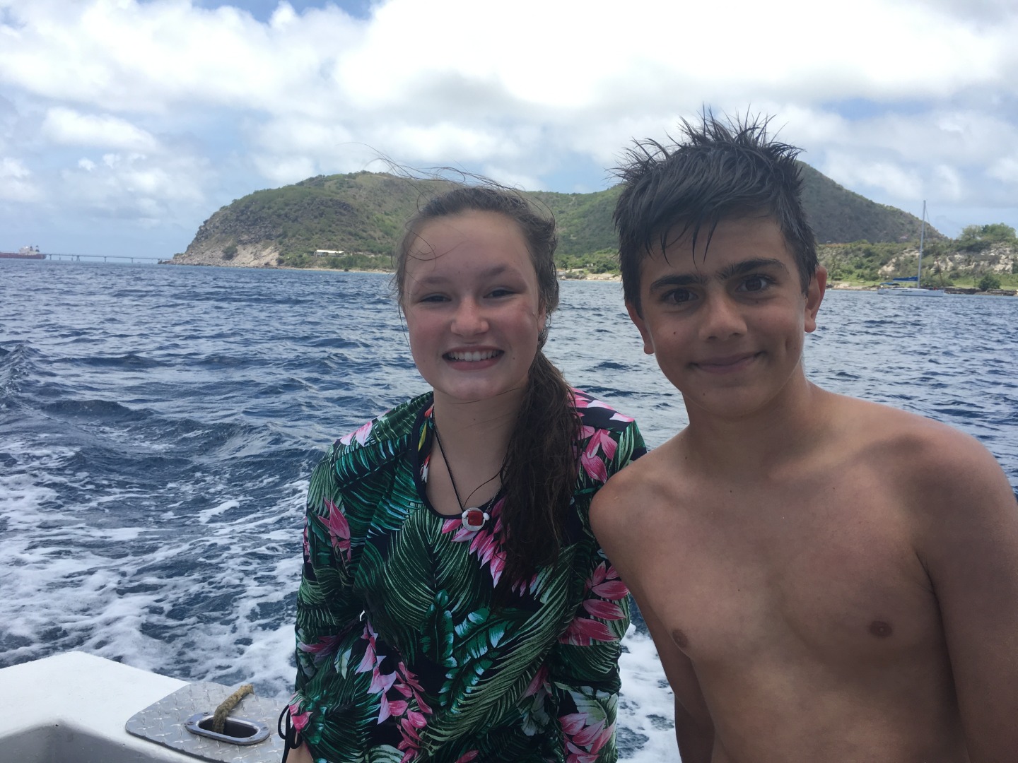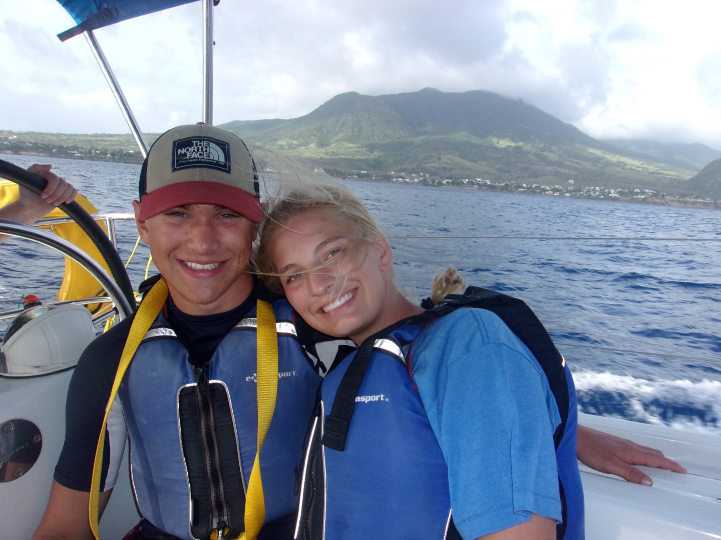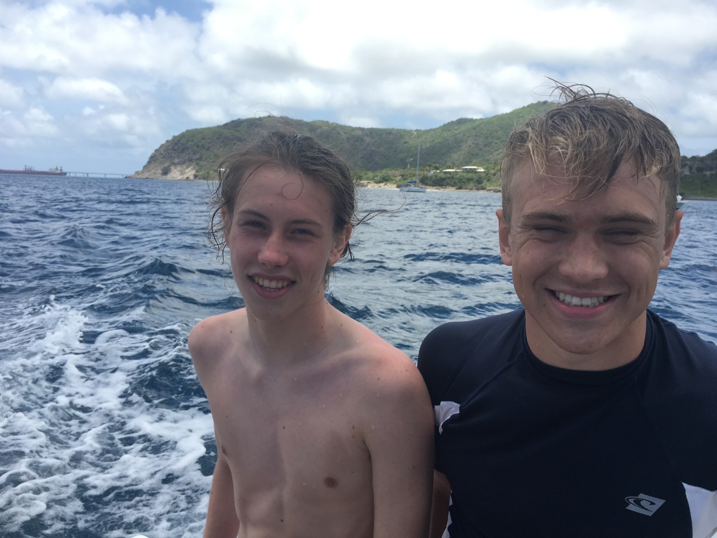 Today was a great day. The Wind Shadow crew started the day off with an excellent breakfast consisting of scrambled eggs, bagels, and yogurt. As we finished our meal everyone rushed to clean the dishes and the cockpit, so we could all quickly get to shore to have time to be on our long lost phones. After venturing on shore for an hour and a half, those who had decided to go diving proceeded to the nearby dive shop where we picked up gear for our dive. We then got on board Stumpy, the boat we would dive off of. To start the fantastic dive, we performed a seated back roll entry into the water and descended to a maximum depth of 60 feet. Throughout the dive, we saw lots of wrecks, barracudas, stingrays, coral species and varieties of marine life. One person (Nathan) even saw a turtle!! Following the dive, we headed back to our boat and prepared to go underway and head to the island of Nevis. We ate lunch and dinner while underway and performed our watch team rotations, in which 3 to 4 people are on watch for 3 hours and then have 6 hours off. In conclusion, the day was great, and the crew got even closer. We are now taking the sails down as we are almost to our next destination (except for me apparently because I’m writing the blog). Land Ho!!!