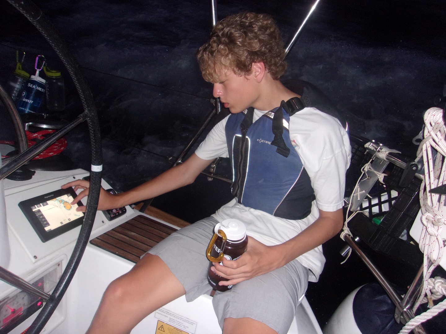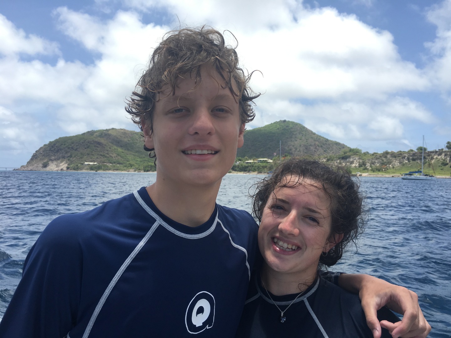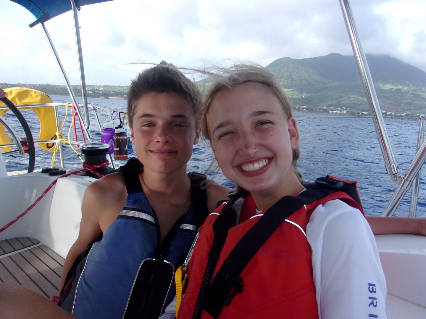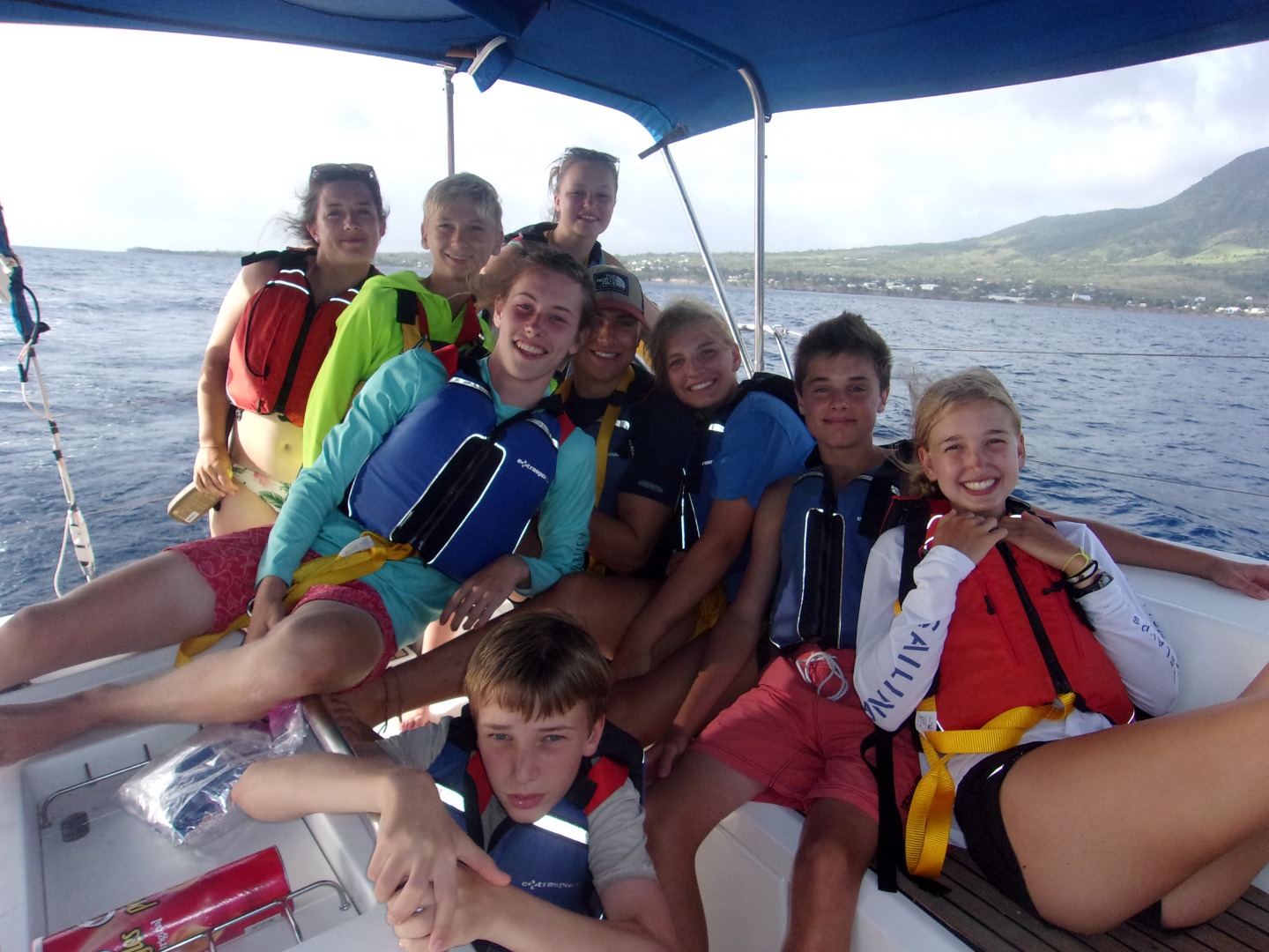 Today was a great day. The Wind Shadow crew started the day off with an excellent breakfast consisting of scrambled eggs, bagels, and yogurt. As we finished our meal everyone rushed to clean the dishes and the cockpit, so we could all quickly get to shore to have time to be on our long lost phones. After venturing on shore for an hour and a half, those who had decided to go diving proceeded to the nearby dive shop where we picked up gear for our dive. We then got on board Stumpy, the boat we would dive off of. To start the fantastic dive, we performed a seated back roll entry into the water and descended to a maximum depth of 60 feet. Throughout the dive, we saw lots of wrecks, barracudas, stingrays, coral species and varieties of marine life. One person (Nathan) even saw a turtle!! Following the dive, we headed back to our boat and prepared to go underway and head to the island of Nevis. We ate lunch and dinner while underway and performed our watch team rotations, in which 3 to 4 people are on watch for 3 hours and then have 6 hours off. In conclusion, the day was great, and the crew got even closer. We are now taking the sails down as we are almost to our next destination (except for me apparently because I’m writing the blog). Land Ho!!!