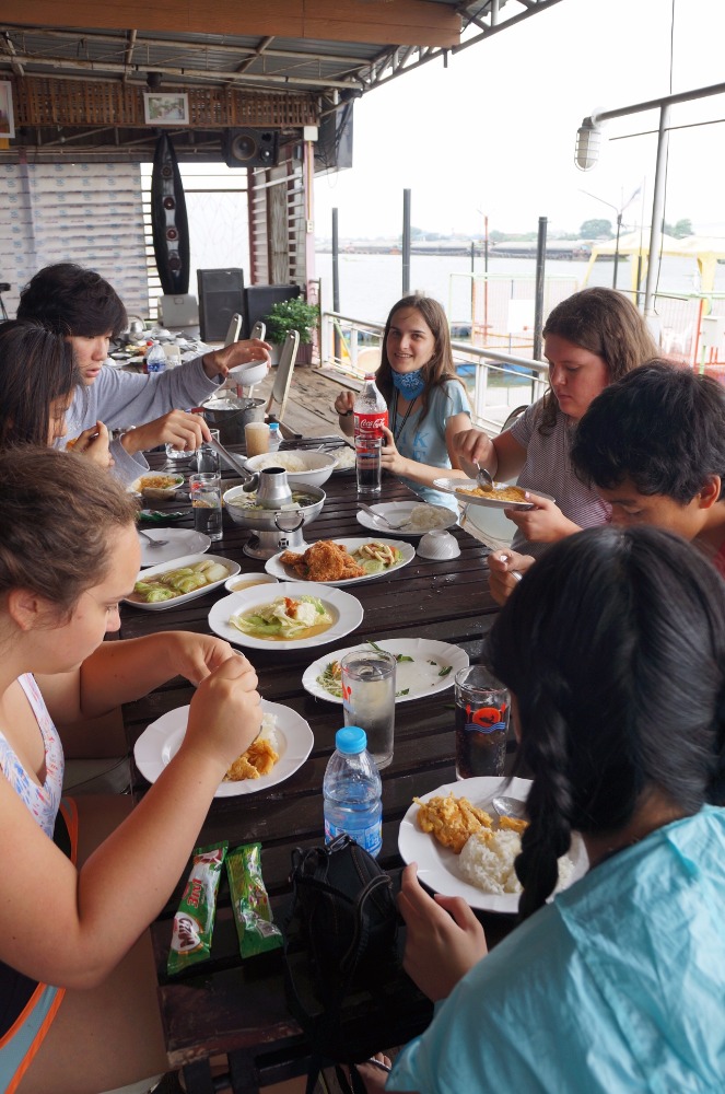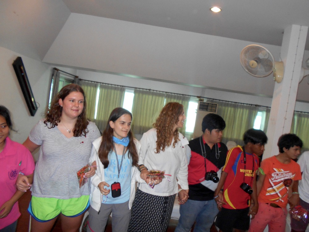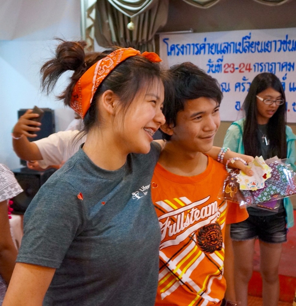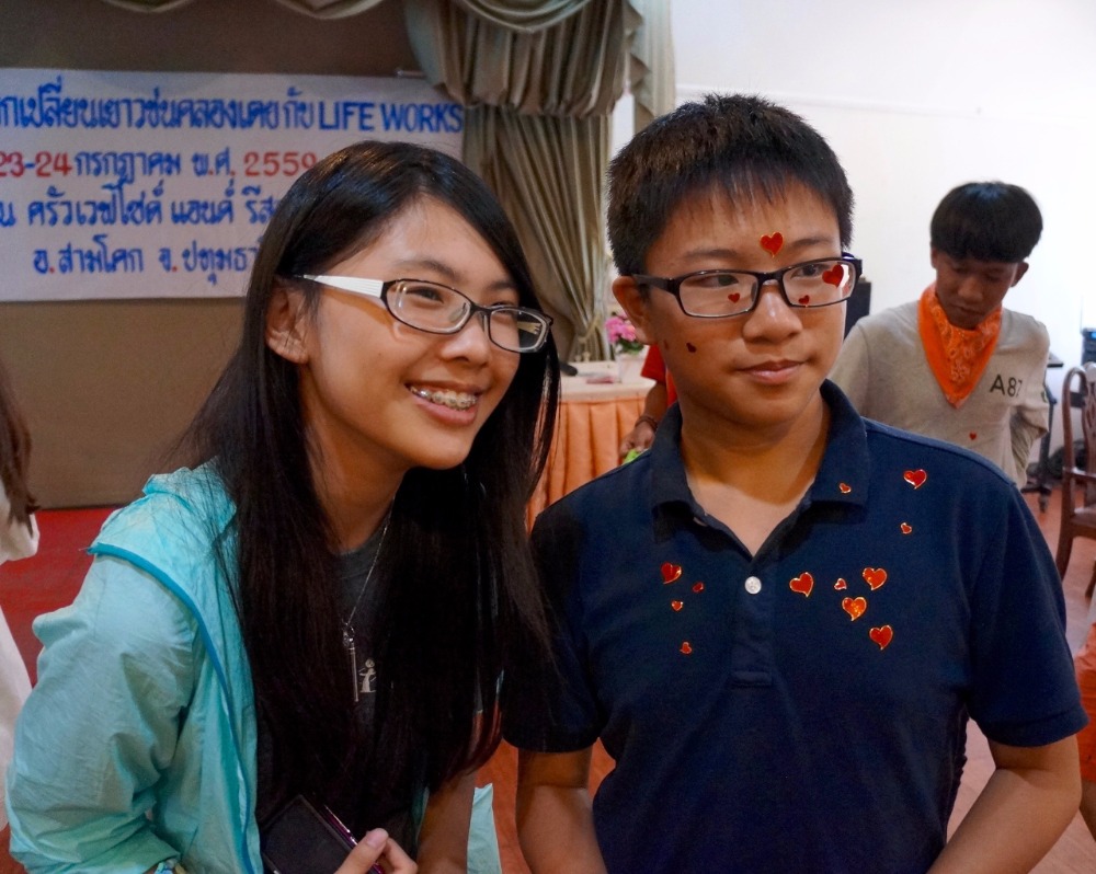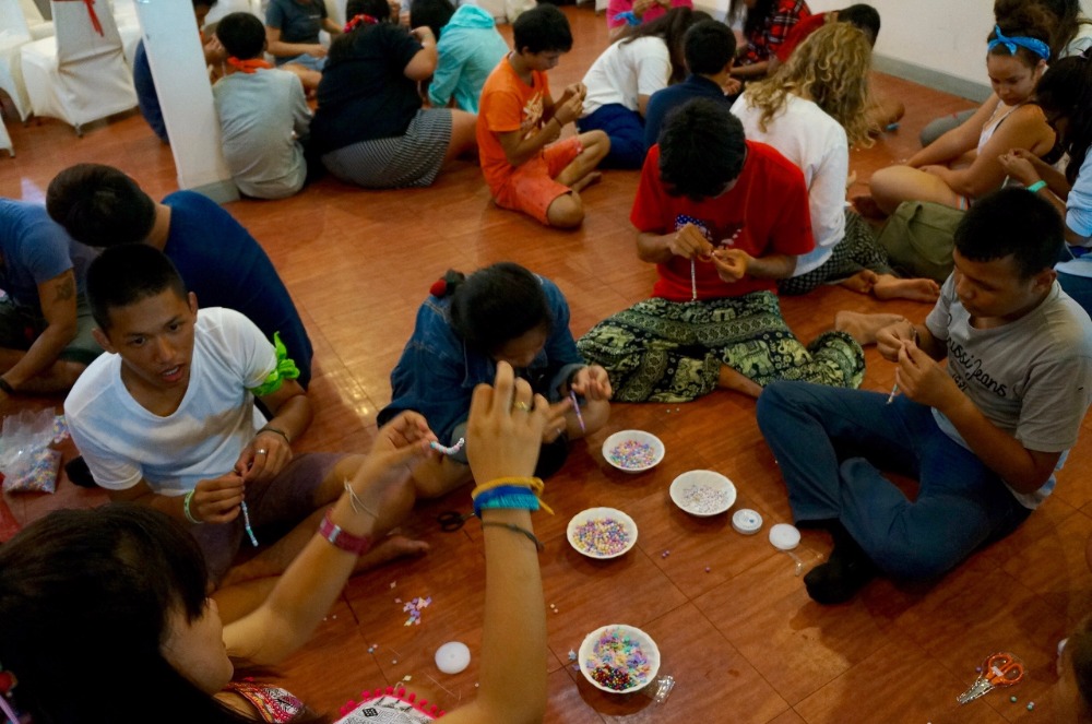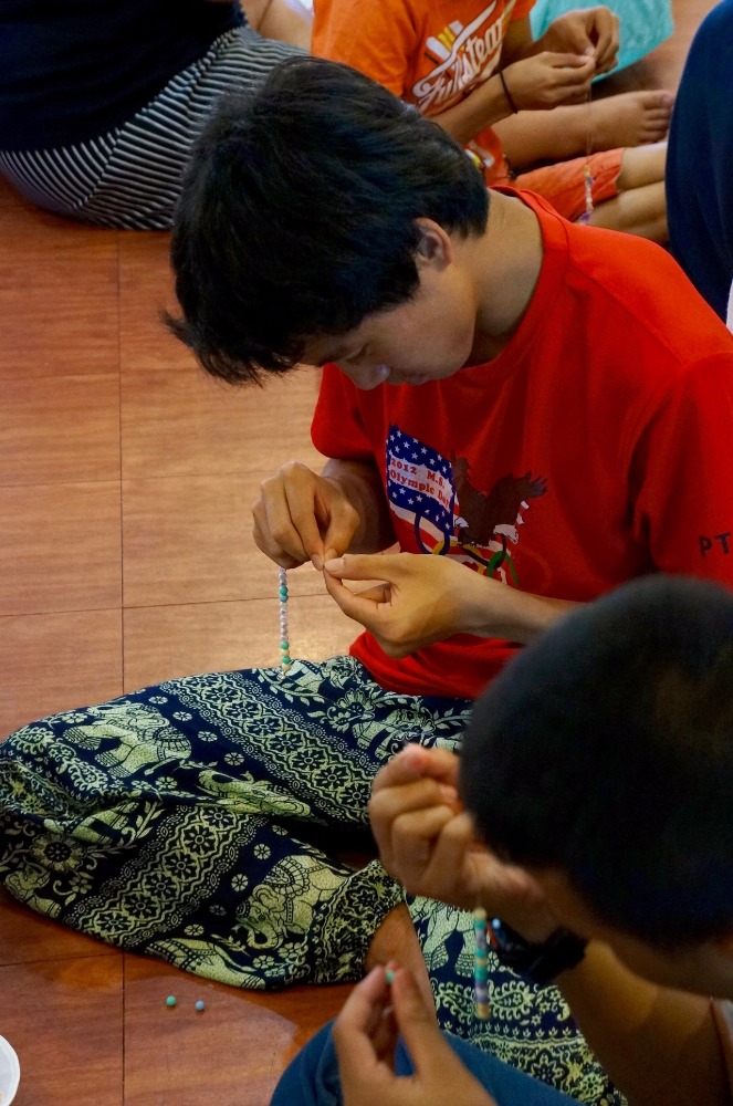 Today we started off the day doing a group activity with the Klong Toey youth group. We had the opportunity to learn about the harsh reality that they face everyday in the slums. Getting to hear about their lives firsthand was a chance for the Lifeworks group to not only learn more about the youth groups lives, but also reflect on each of our own lives. We also shared our dreams and learned that although these teens are faced with many challenges at an early age, they are deeply caring about their community. After a quick lunch, we gathered again one last time as a group and made friendship bracelets for each other to remember the relationships we have built over the past two days. We also wrote short letters on memo papers to share with one another as a parting gift. Spending time with the Klong Toey teens was definitely a different experience compared to the Kanchanaburi kids in terms of age difference, but the relationships and lessons we have learned from this trip are certainly ones we will cherish for a long time. We have also learned that the difference in language does not impose any restrictions on our ability to communicate or share our experiences/culture. On our way back to Bangkok, we all had a fun time singing and dancing together on the bus. When we got back to our hotel we all went to the pool and had some downtime before dinner, card games, and squeeze.