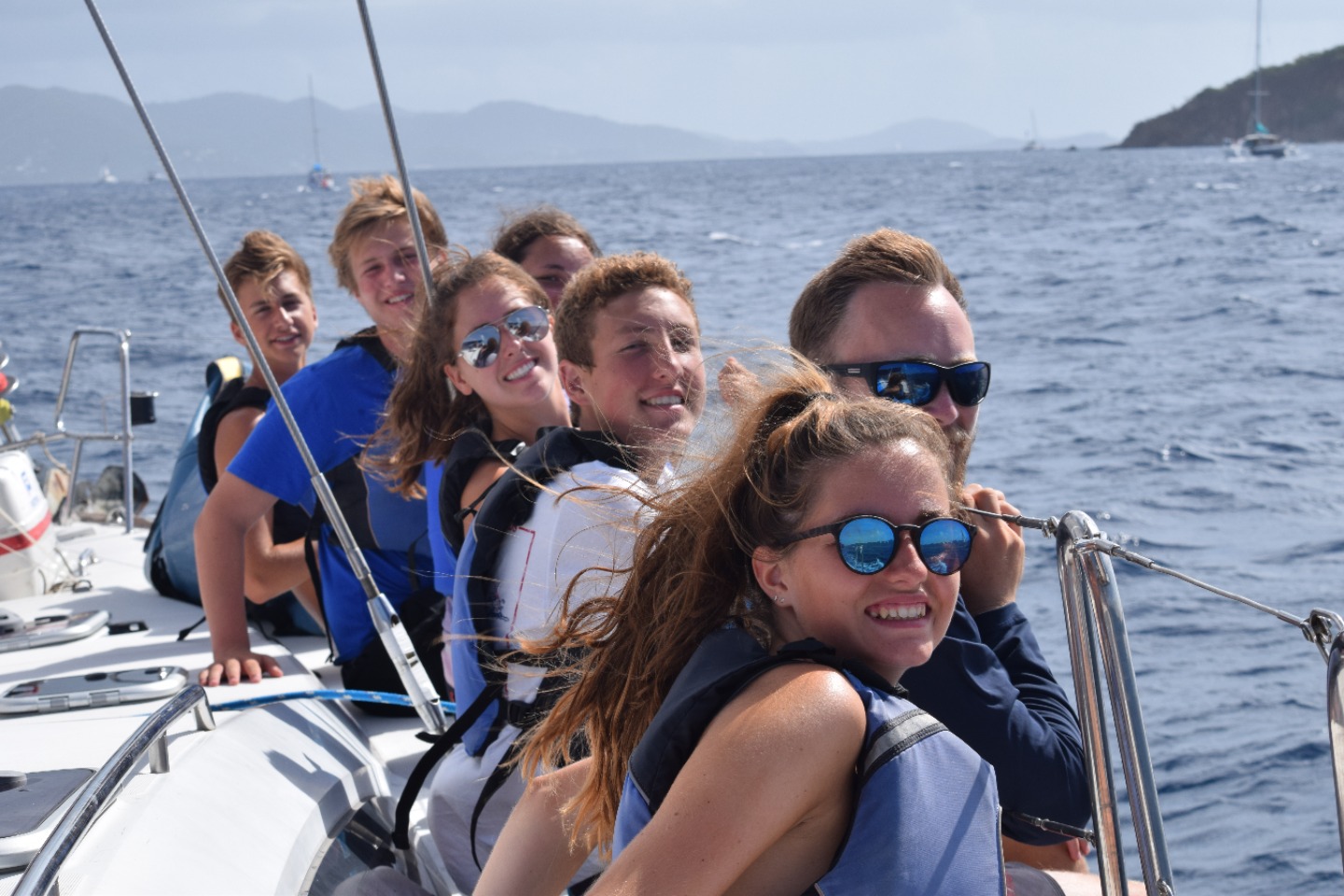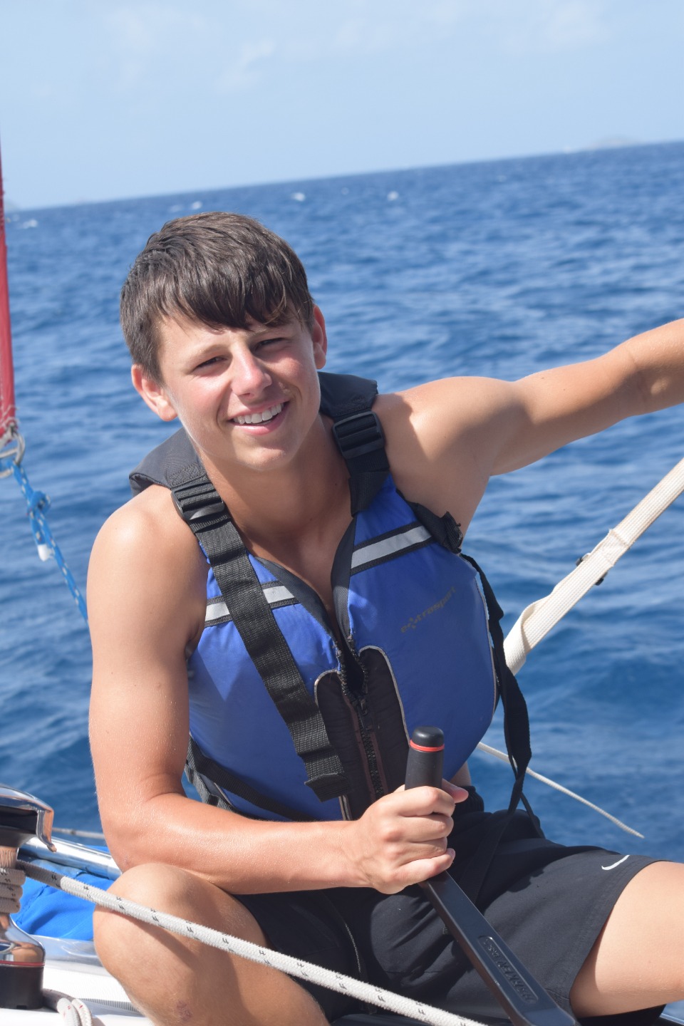 This morning we woke up to Graduation which was a sad way to start the morning. This was followed by our everyday playlist, which was followed by our everyday playlist, which we heard for the last time. After a quick breakfast of cereal/oatmeal, Ian and I went to a skipper’s meeting to start off race day! We reviewed a chart of where we would race to, the starting and finishing lines, etc. We went back to Aeolus and quickly prepared for the start of the race. If you didnt know this yet, our boat engine has been broken for a few days now, so we immediately had to raise the sail to sail off of the mooring lines. Once we were off of the mooring line, we had to raise the jib, sail around and, somehow, time it perfectly with lining up the boats and starting on time. We managed to do that perfectly, and we were off! With a hard working crew, our boat immediately took the lead. The waves were choppy, making it difficult to helm, but after about 1 hours of racing, and a close finish, I am proud to say we won! It was a victorious morning for us so far. Shortly after, we found out something was wrong with the propeller. It was temporarily fixed after Ian jumped into the water. Once docked we then cleaned the boat, went on shore, ate lunch, and did our last squeeze. We then went to our last BBQ and spent the night hanging out with our amazing shipmates. I cannot begin to express the amount of fun Ive had on this trip and am beyond grateful for the opportunities weve had and the amazing friends I have made. Thank you ActionQuest for everything! Always remember to send it and stay up and stay humble. Last Skipper Blog ” Out