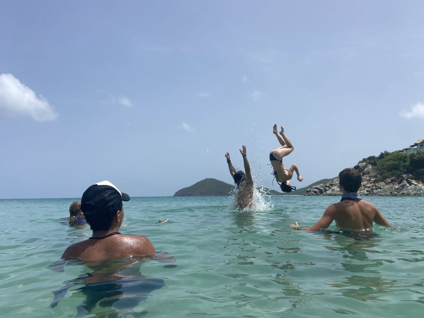 Hey, it’s Sam again! Around 7:30, we woke up and put on our bathing suits. We went on deck for a breakfast of oatmeal and fruit made by Tait. After breakfast, we filled up our water bottles and headed off to the beach. Once we got to the beach, we started picking up all the trash we found in between the rocks. While picking up trash, Grayson found a blowup orca, and we named her Athena. After picking up trash, we played football while Mina, Riley, Amelia, and Tait were in the water. Once we all got tired of running around, we all went into the water and started a chicken fight tournament. Peyton and I were undefeated and were crowned with the victory. Hayley stood on Riley’s shoulders and did the coolest backflip I’ve ever seen.