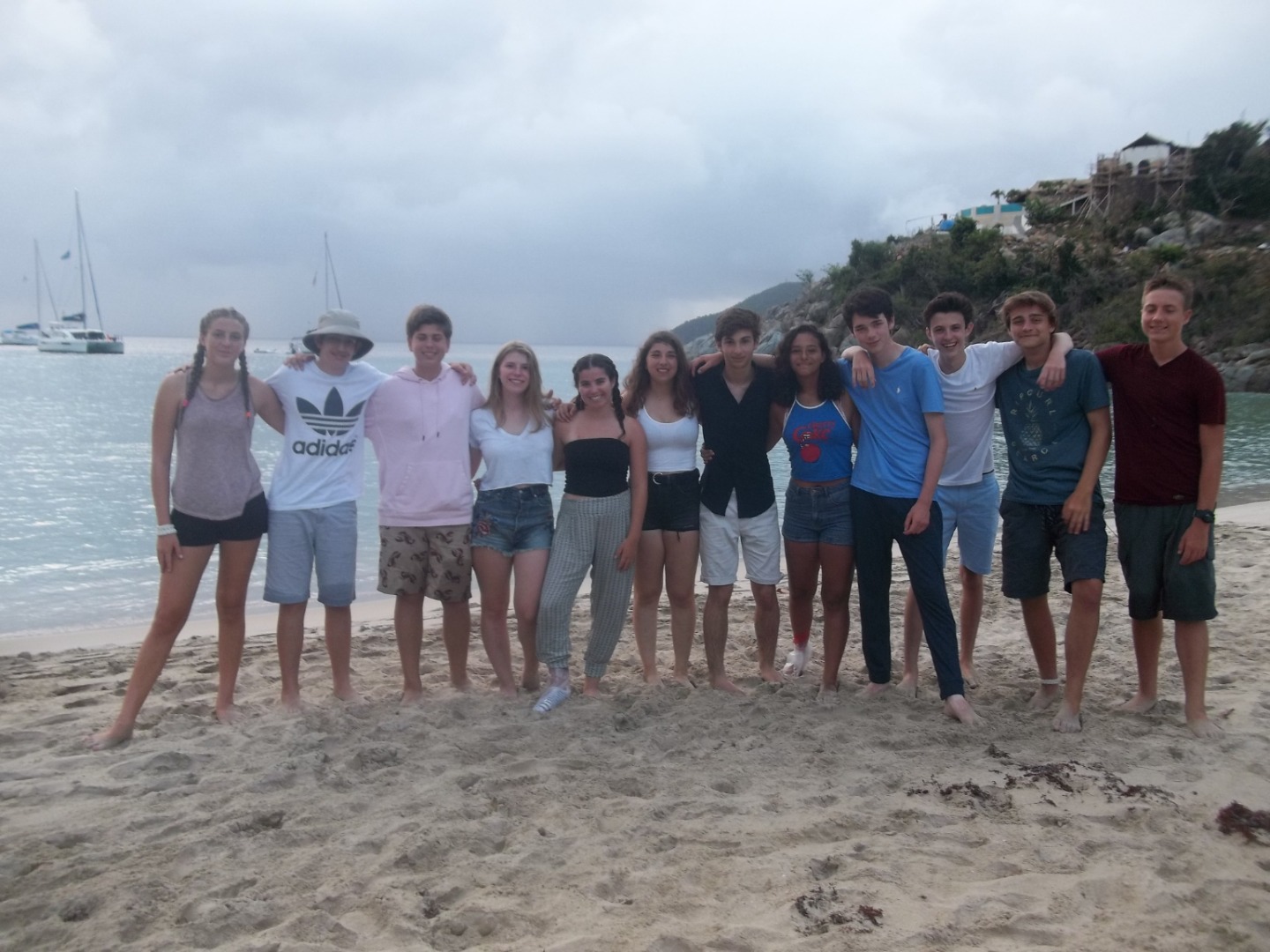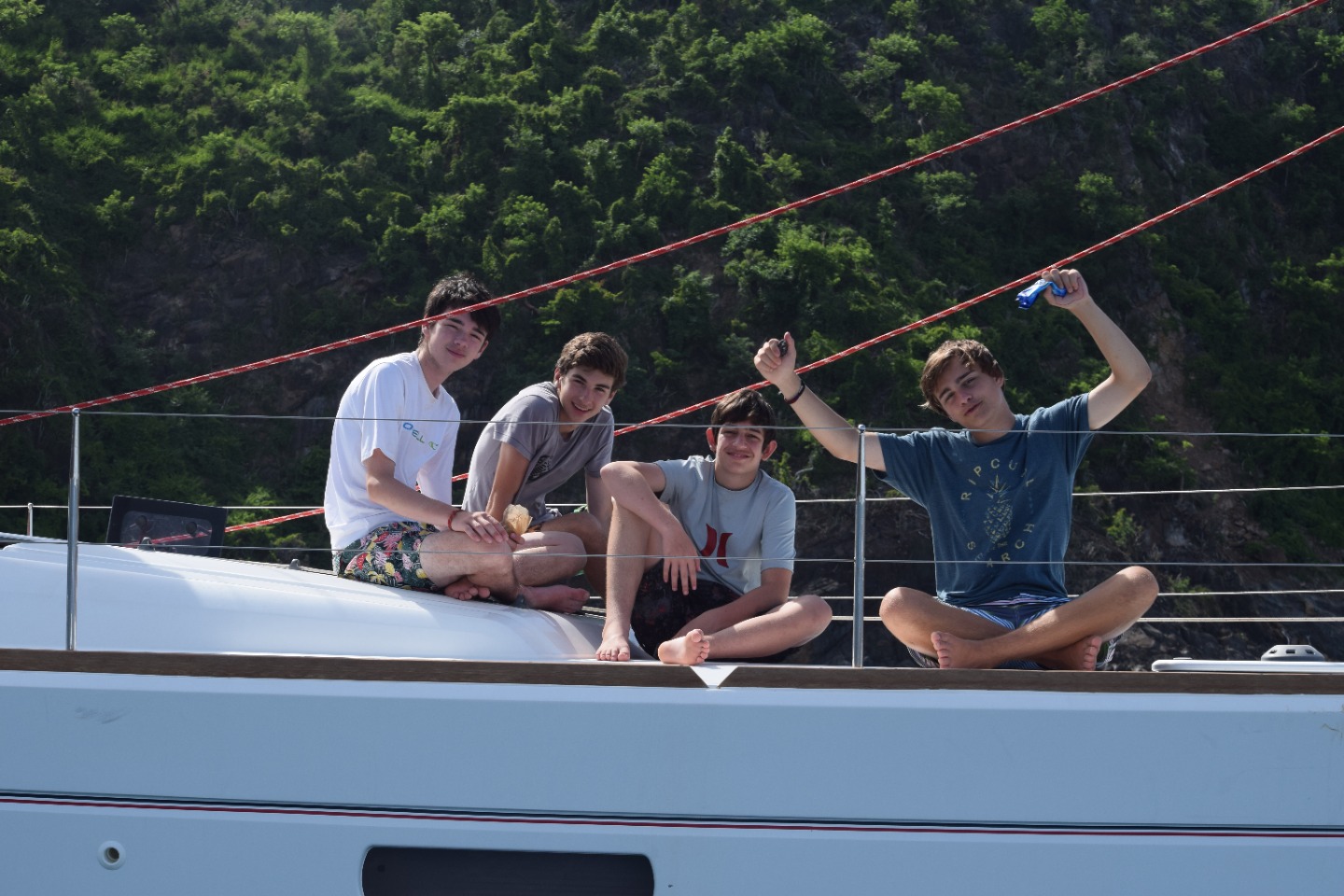 Today on the vessel Sans Souci we practiced man overboard drills and had our final diving exam in the morning and a lovely BBQ on the beach with all the boats. We started off the day with an early awakening and eggs for breakfast, and right after we took our diving final exam which most of us passed. After the exam, we practiced tying knots and we all made Turk’s Head anklets and bracelets. Afterward, we sailed out to sea and practiced man overboard drills where we threw a fender which we then had to retrieve in a man overboard drill. We all passed even though we had to do some victory laps. Later that day we went to a beach BBQ with all of the other boats. While we were anchoring there was a lot of purple jellyfish that looked really cool. While we were at the beach BBQ it started to rain and it was fun watching the people run and try to protect their food. After that everyone left the beach and our group was the last boat to return to our home and when we did we celebrated Alina’s birthday with a yummy cake. Our day will end with a squeeze circle.