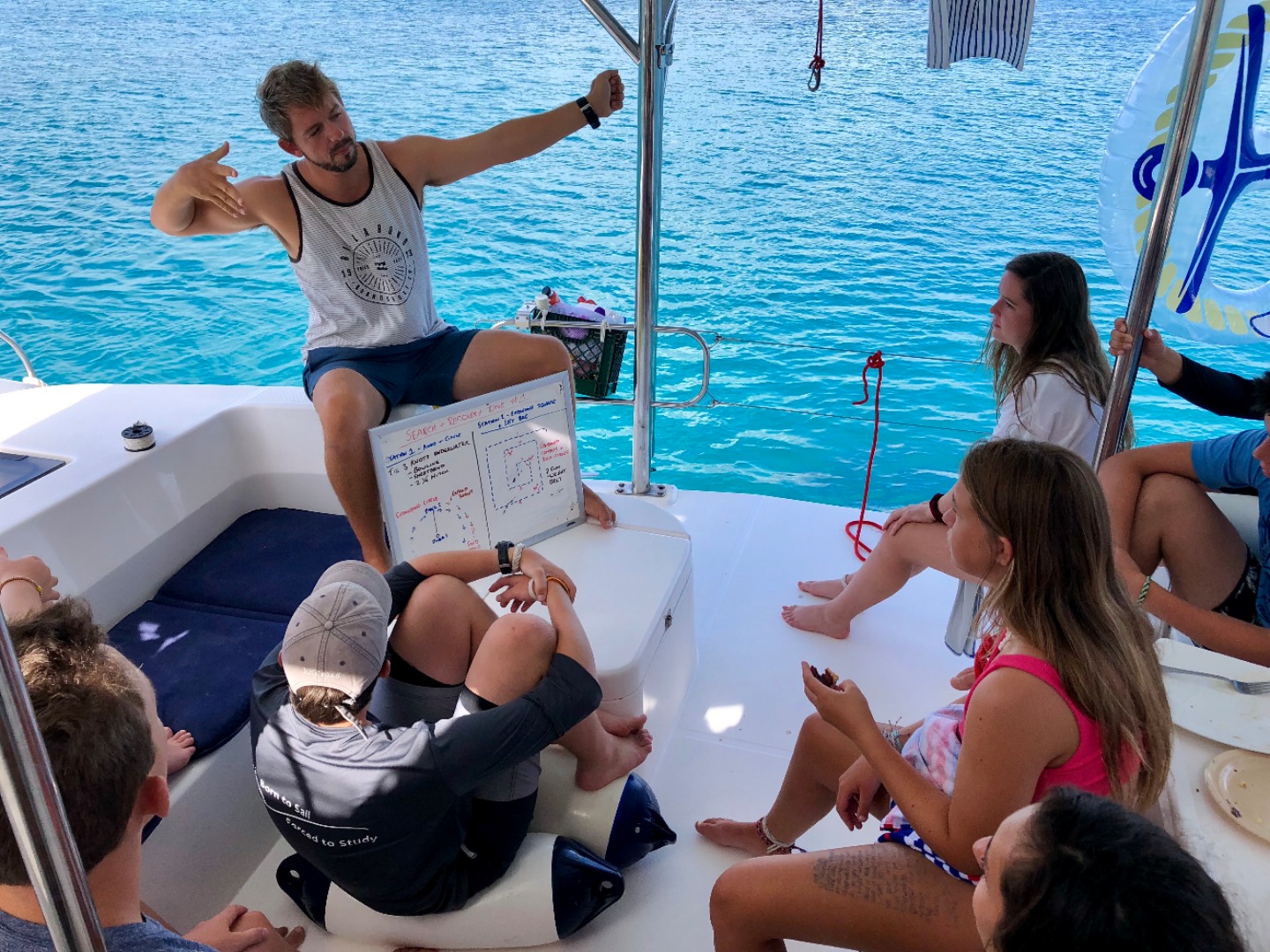 Today we started off with a big and delicious breakfast of french toast and eggs. We all enjoyed it thoroughly! We then did out first search and recovery dive. We tied knots underwater and searched for weights using search patterns. We then motored to Leverick Bay, where we ate and got bonding breads. We then did Emergency First Response scenarios. We are going to the BBQ now!