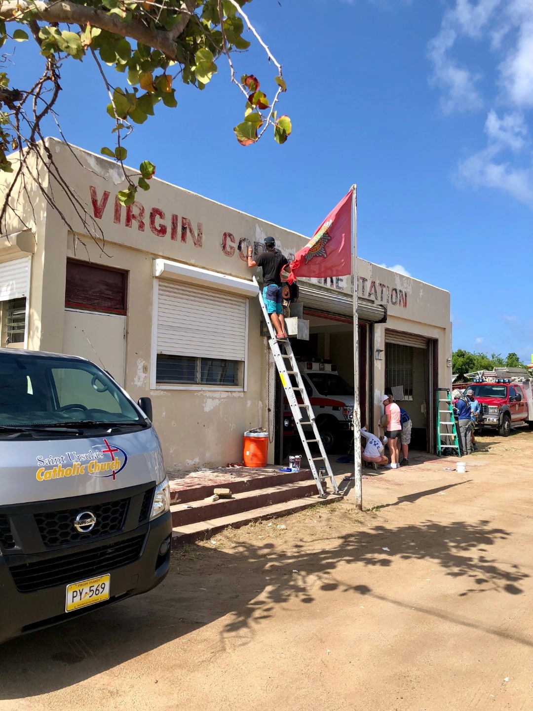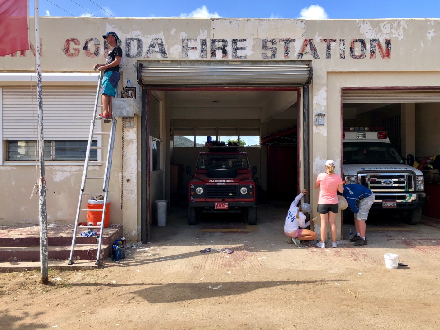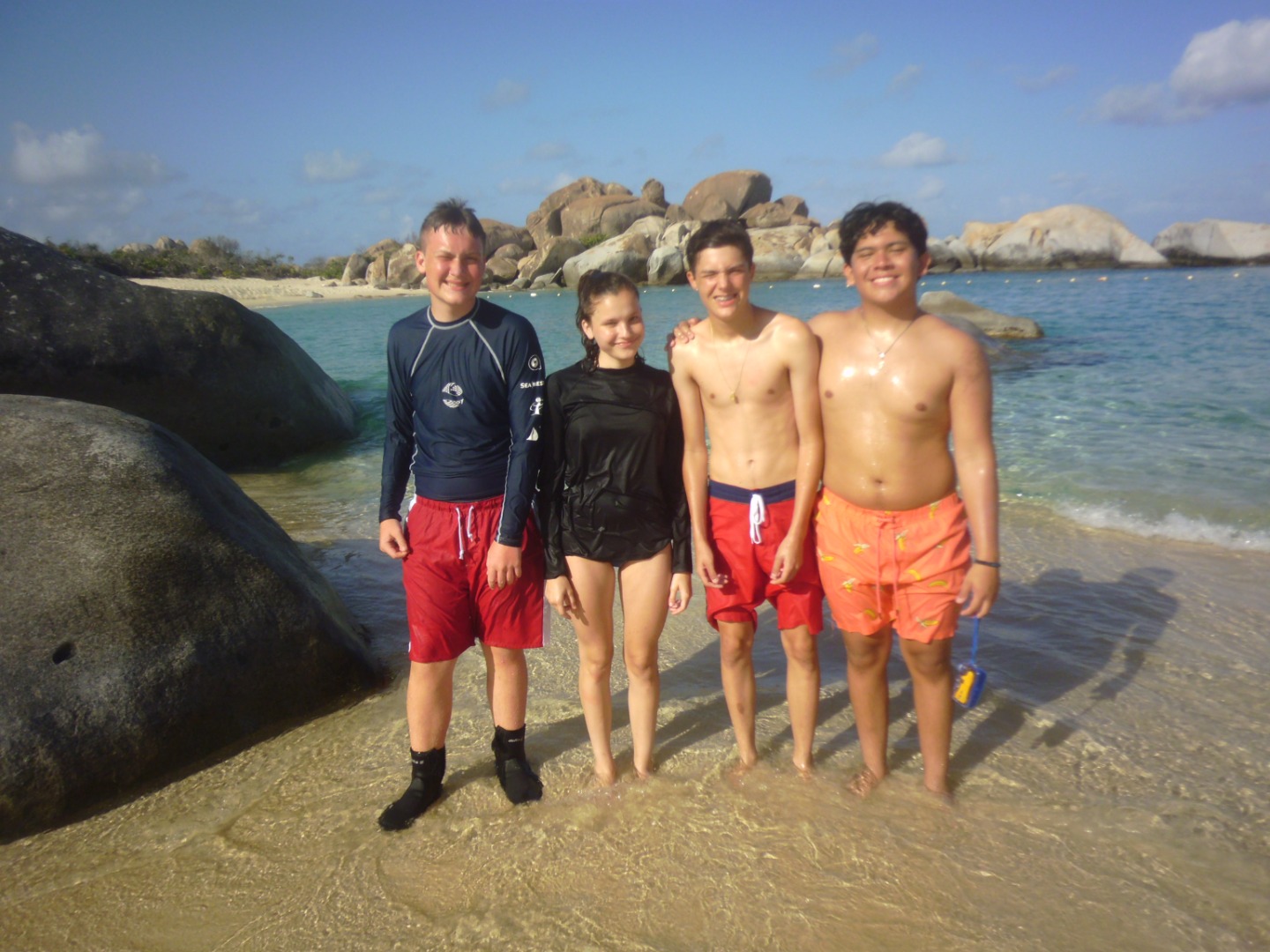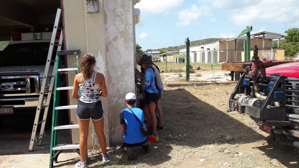 We did many things today, but a highlight was helping the local fire station recover from damage caused by Hurricane Irma. We scraped the paint on the outside of the building off so they could repaint it. It was very rewarding giving back to the community. Before this, we visited The Baths for a couple of hours. We got to jump off a rock into the water and saw a stingray! The Baths are rock formations and caves that create pools of water.