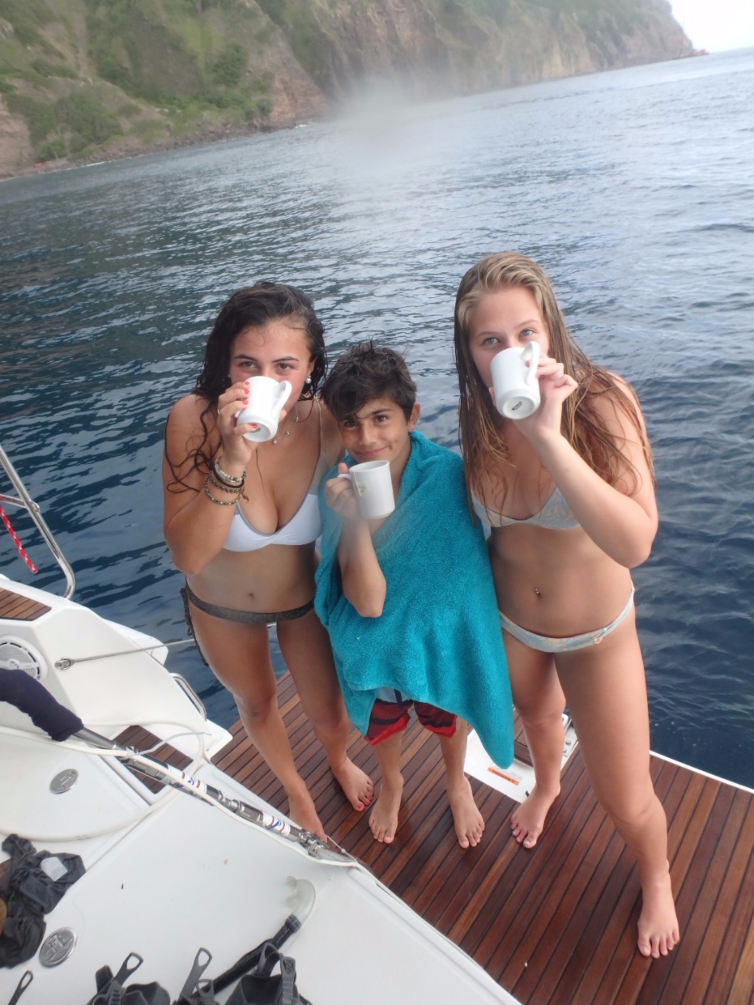 fter a nighttime passage of colossal proportions, we arrived at the mountainous island of Saba. With sleepy heads and high spirits, our group took a short early morning sleep. Our spritely gang was then peacefully awoken to a beuatiful view of the lush island. We soon sprung into action: making an abundant mass of cinnamon french toast. After this delectable breakfast feast, plans were set into action for the shipmates to go on a refreshing snorkel and scuba-dive. While this diving was underway, some members of the crew caught up on sleep that was lost during the passage. The day then ended with a filling meal of tender, perfectly seasoned beef and tomato stroganoff. Although we were exhausted, we were brought through the day by our anticipation of climbing Saba peak and many other adventures to come.