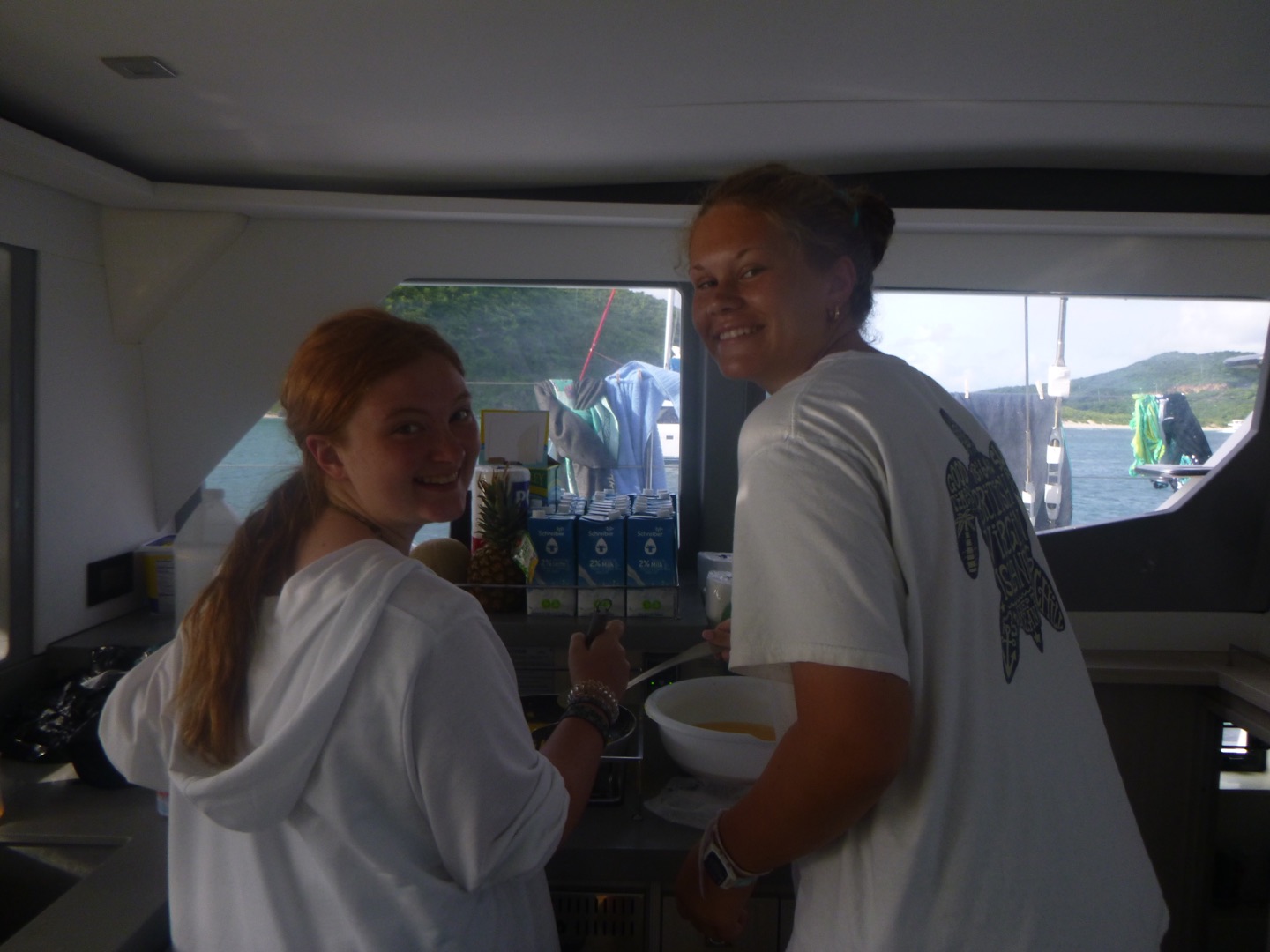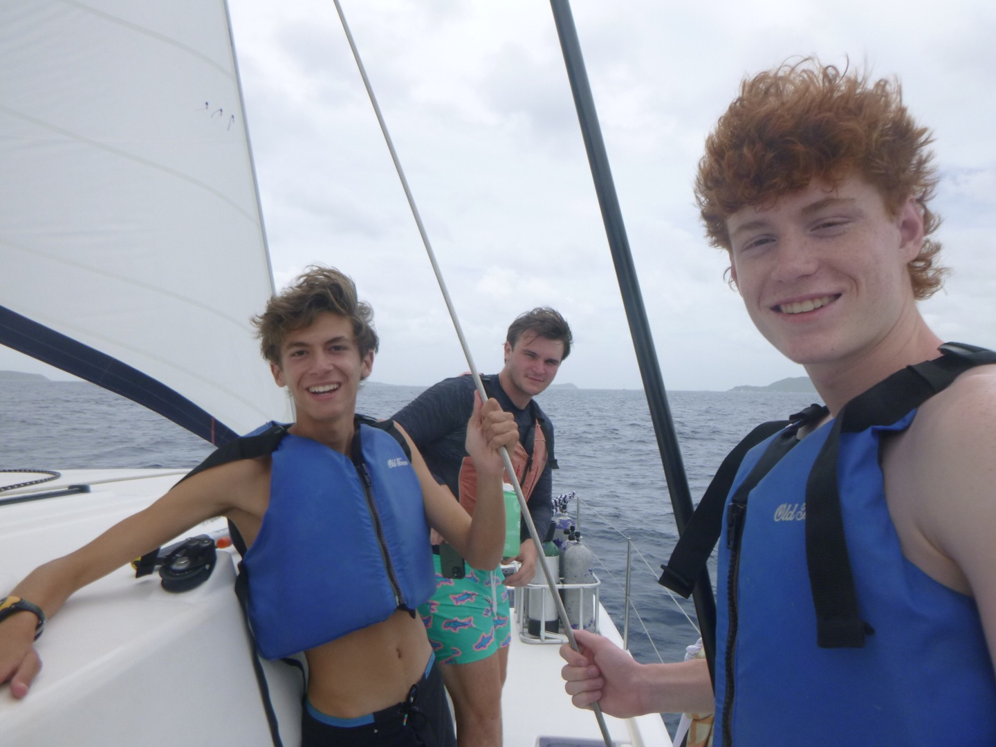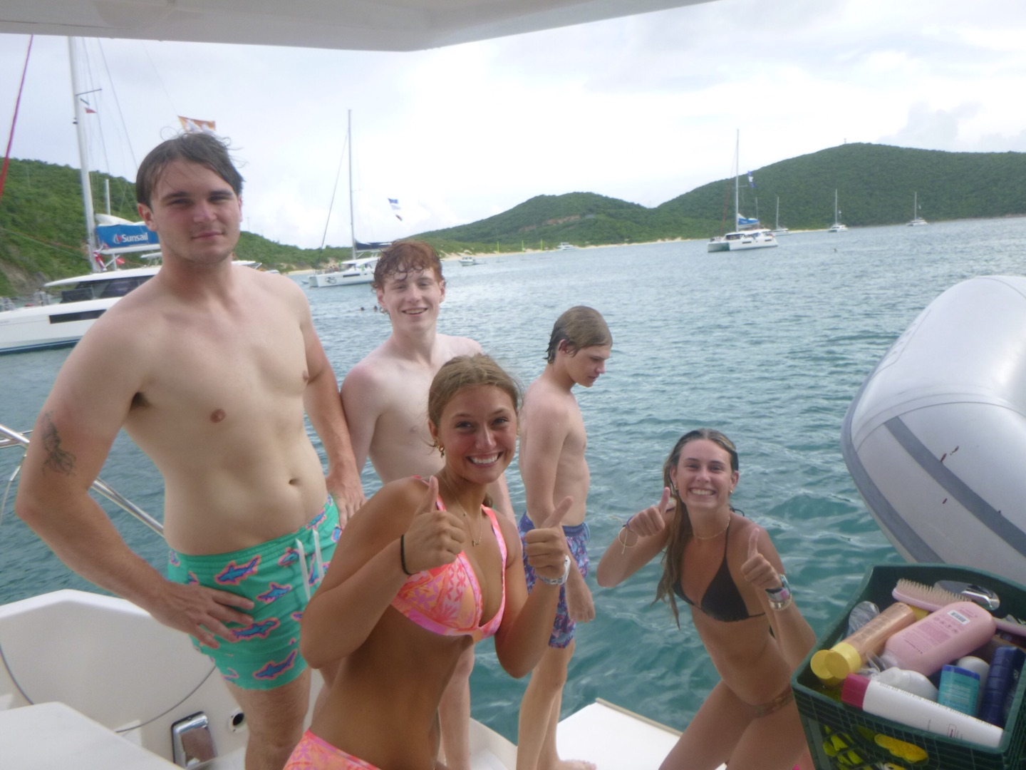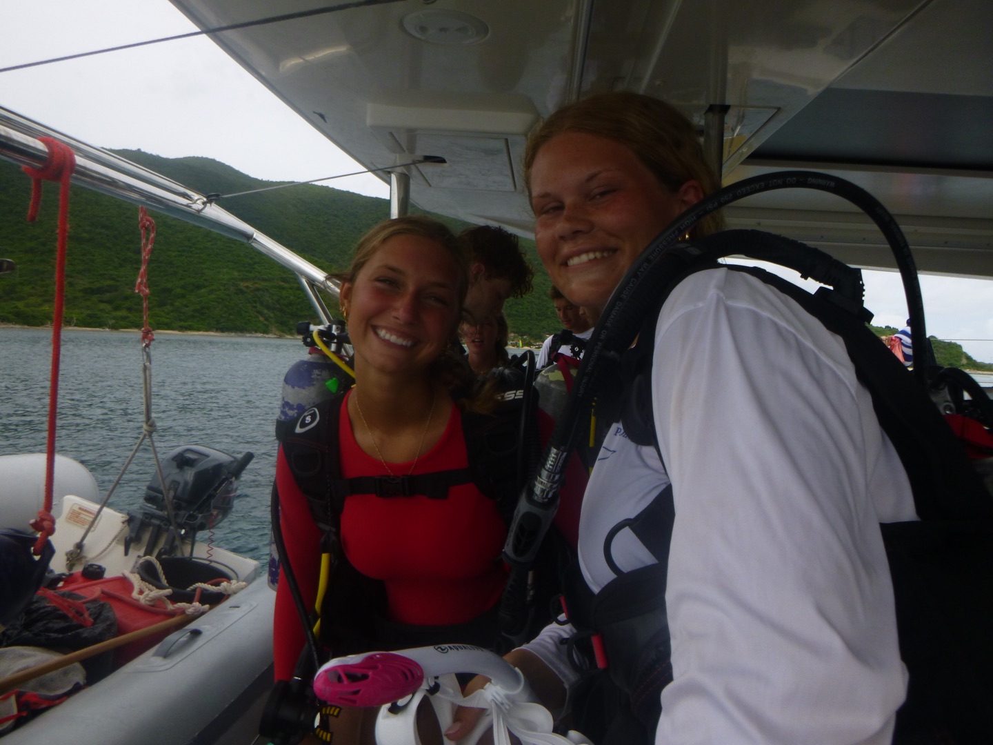 Hey, y’all, it’s Meg! Today was very adventurous. We woke up around seven and ate cinnamon muffins, which sadly had tree nuts in them. Then, we headed over to Savannah Bay Beach, learned how to use our compasses with our dive buddies, and made some new friends as well. Then, we followed the dolphin program on the “”easy flip-flop hike”” which wasn’t easy at all. Scottie’s flip-flop broke, and we went barefoot for a second, but the view was really pretty. After that, we came back, and Sienna and Sam made us some delicious chicken salad sandwiches, and then we got ready to do our first navigation dive! While we went on our dive, Matthew got his open water certification and saw a lobster. We practiced our new skills with navigation and took turns counting our kicks, going in a straight line, and making it back to where we started. After our dive, everyone took showers, and Sienna, Reese, Hays, Sam, and Kate did some cool tricks into the water, and Lyla and Ari attempted to. Then Evan, me, and I were all air-dried while dinner was cooking. Tonight was a chilly night! And we had a very special guest, MIKE! We had some very funny convos and then squeezed and cleaned up and are getting ready for a night diver lecture and are making some yummy chocolate milk and time for bed for our very big day tomorrow at the baths bright and early! πΈπΈπΈπππ