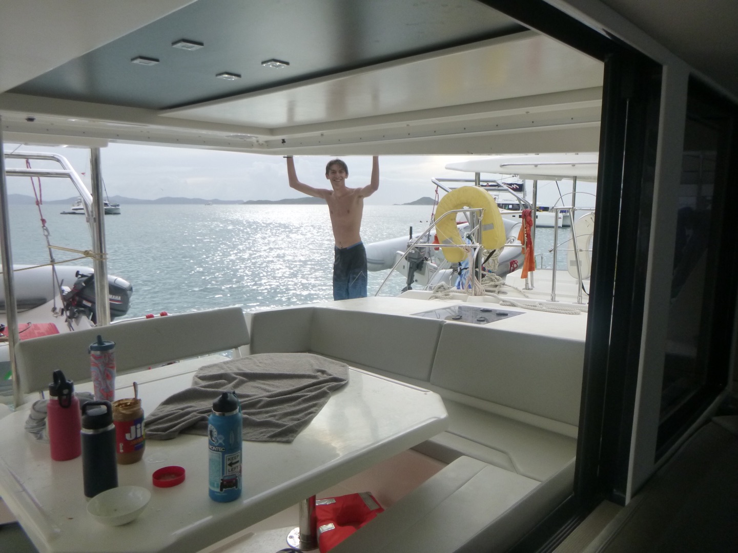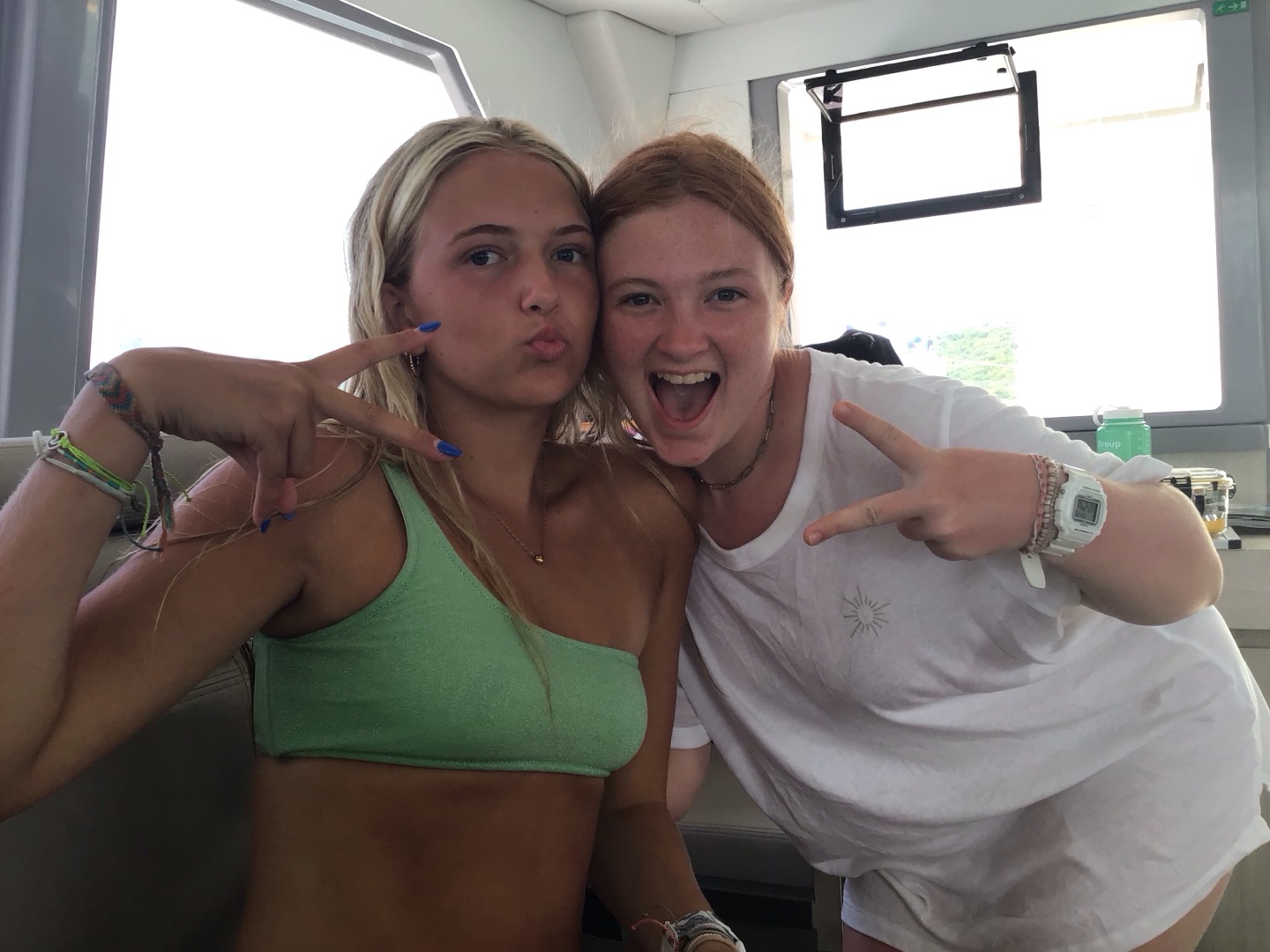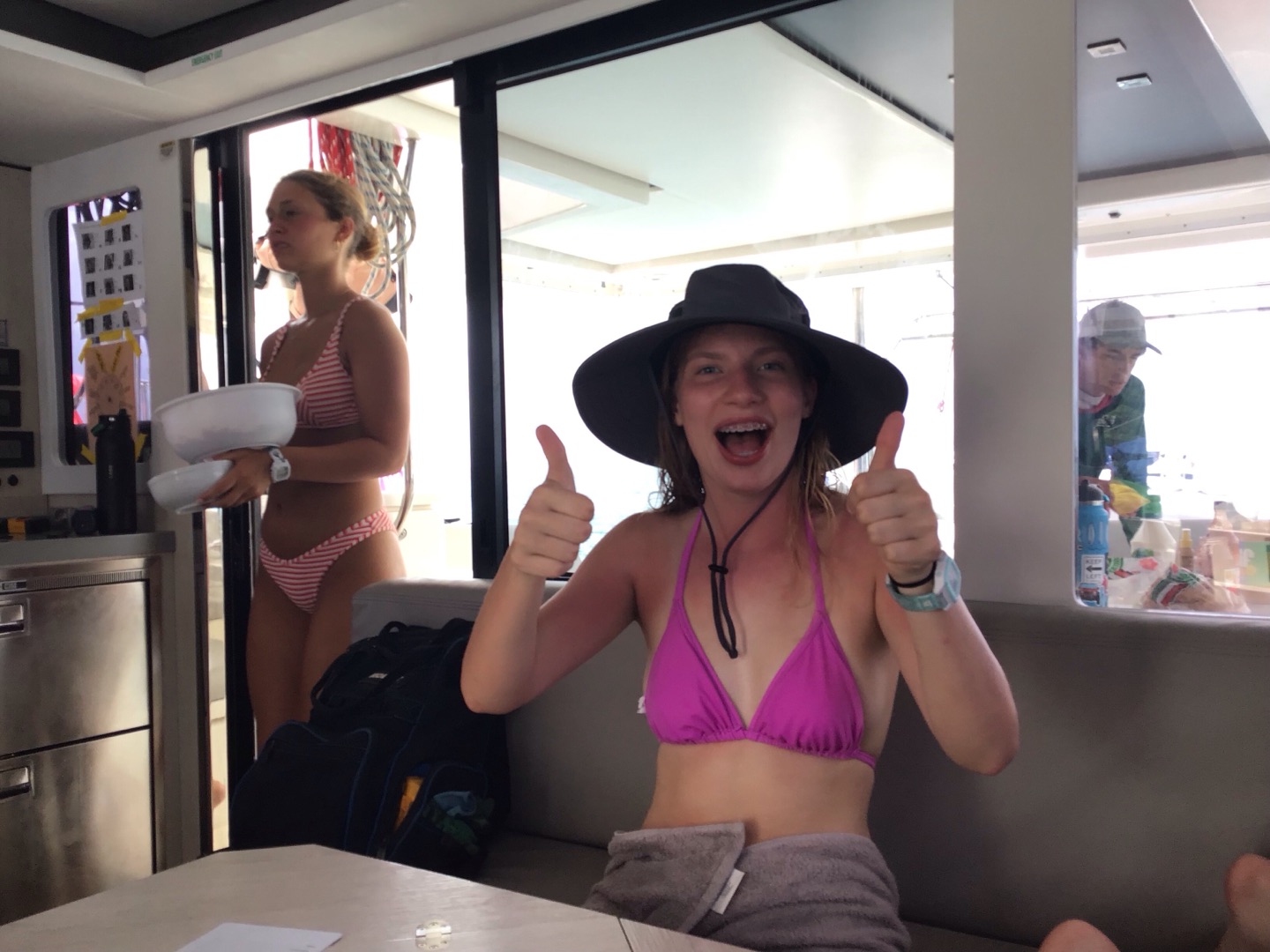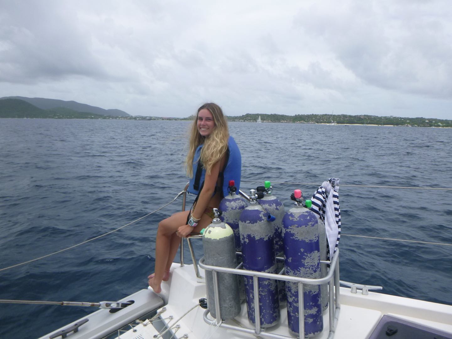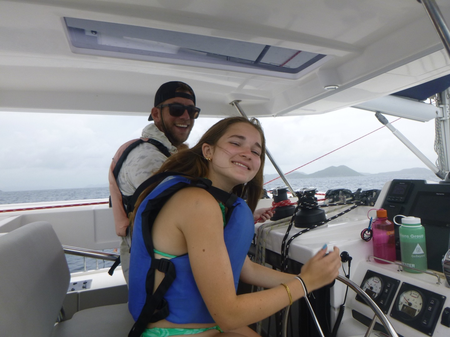 Hey, y’all, it’s Meg! Today was very adventurous. We woke up around seven and ate cinnamon muffins, which sadly had tree nuts in them. Then, we headed over to Savannah Bay Beach, learned how to use our compasses with our dive buddies, and made some new friends as well. Then, we followed the dolphin program on the “”easy flip-flop hike”” which wasn’t easy at all. Scottie’s flip-flop broke, and we went barefoot for a second, but the view was really pretty. After that, we came back, and Sienna and Sam made us some delicious chicken salad sandwiches, and then we got ready to do our first navigation dive! While we went on our dive, Matthew got his open water certification and saw a lobster. We practiced our new skills with navigation and took turns counting our kicks, going in a straight line, and making it back to where we started. After our dive, everyone took showers, and Sienna, Reese, Hays, Sam, and Kate did some cool tricks into the water, and Lyla and Ari attempted to. Then Evan, me, and I were all air-dried while dinner was cooking. Tonight was a chilly night! And we had a very special guest, MIKE! We had some very funny convos and then squeezed and cleaned up and are getting ready for a night diver lecture and are making some yummy chocolate milk and time for bed for our very big day tomorrow at the baths bright and early! πΈπΈπΈπππ